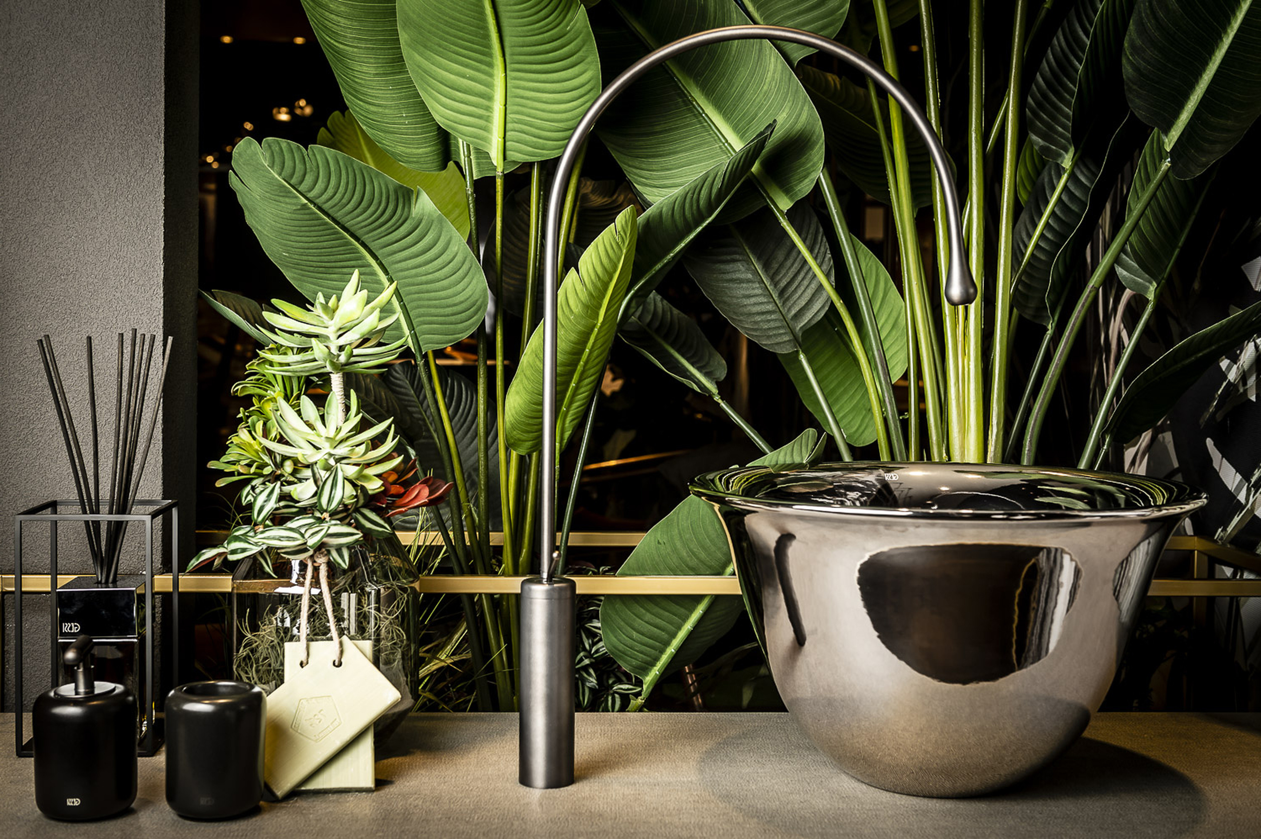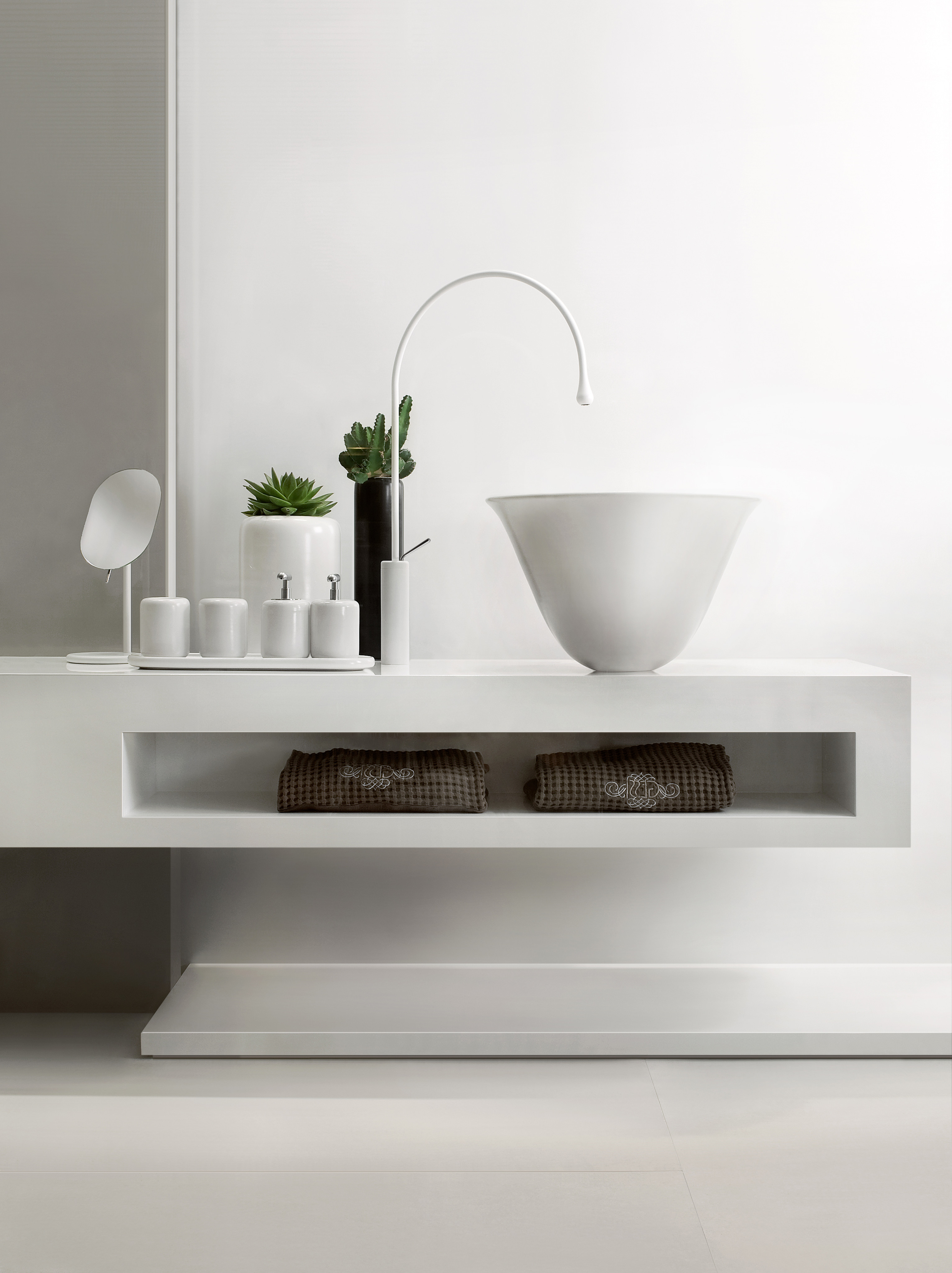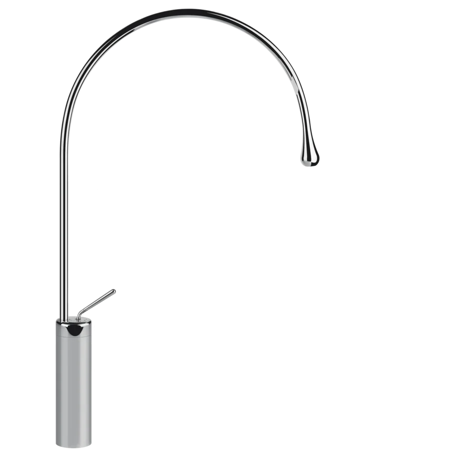 Смеситель для раковины высокой версии, длинный излив, гибкие соединения, без сливного отверстия. Поворотный излив.