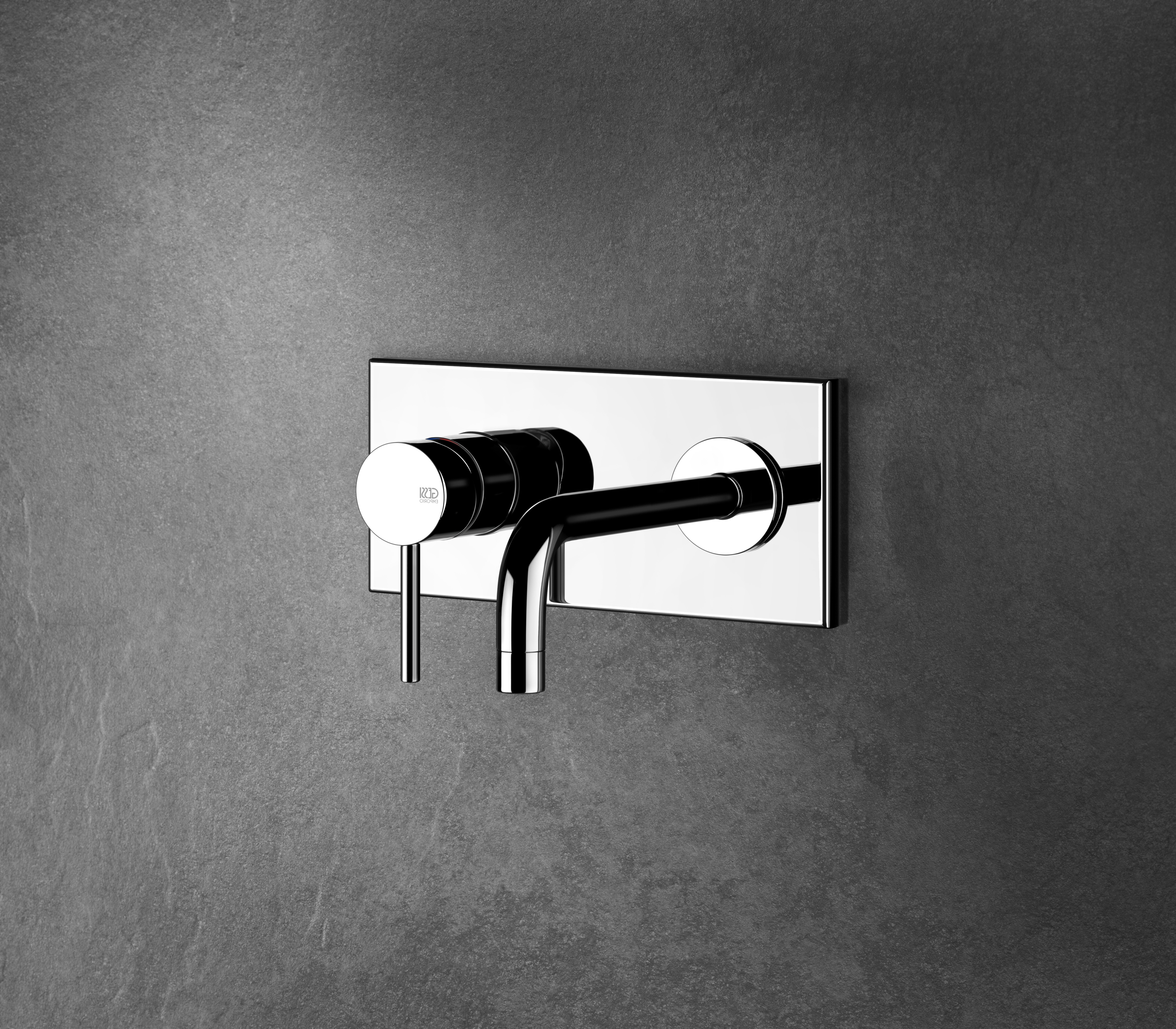 Внешняя часть настенного смесителя с длинным изливом без слива