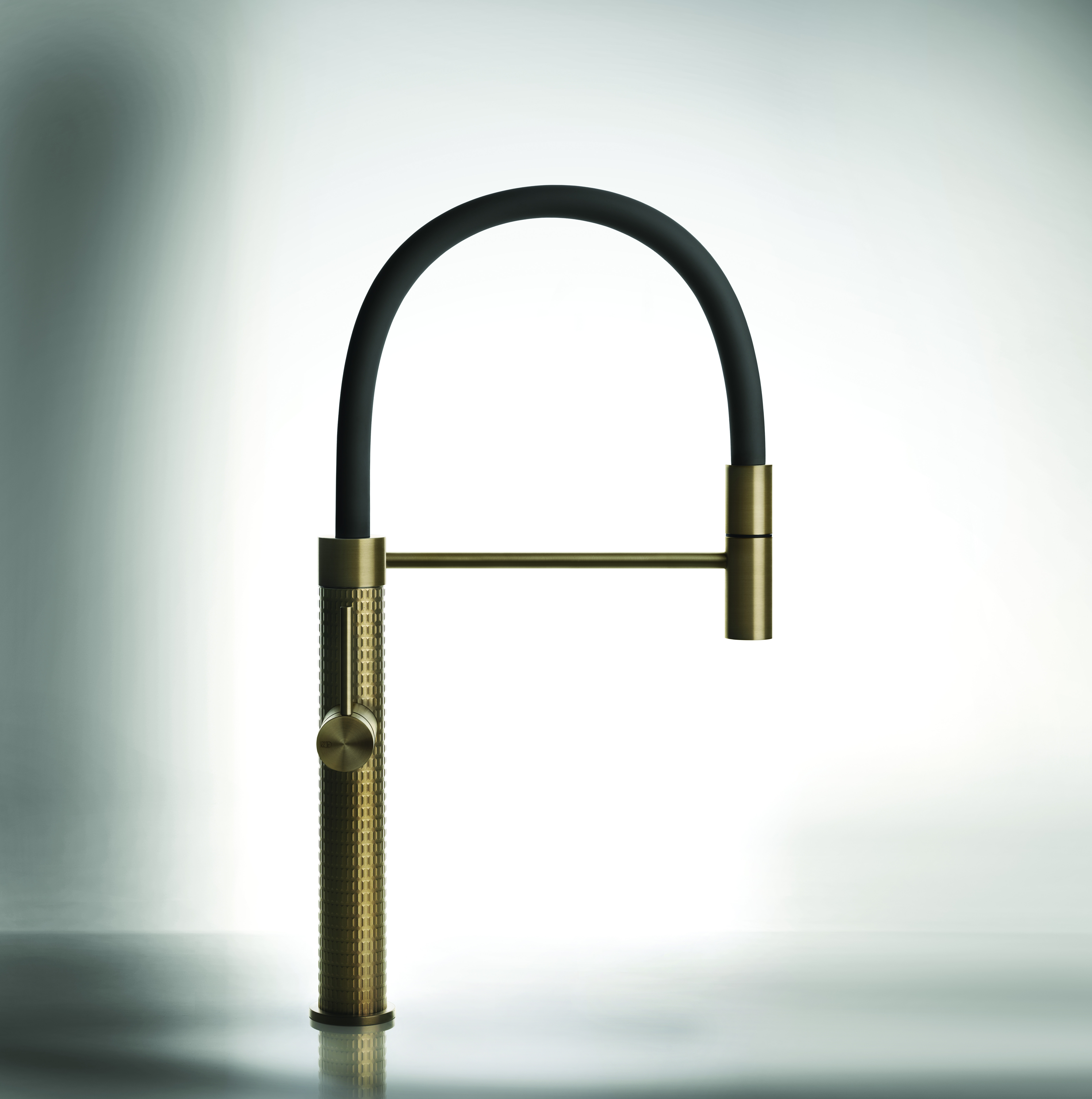 Полупрофессиональный смеситель для мойки с поворотным изливом и выдвижной лейкой с одной струей