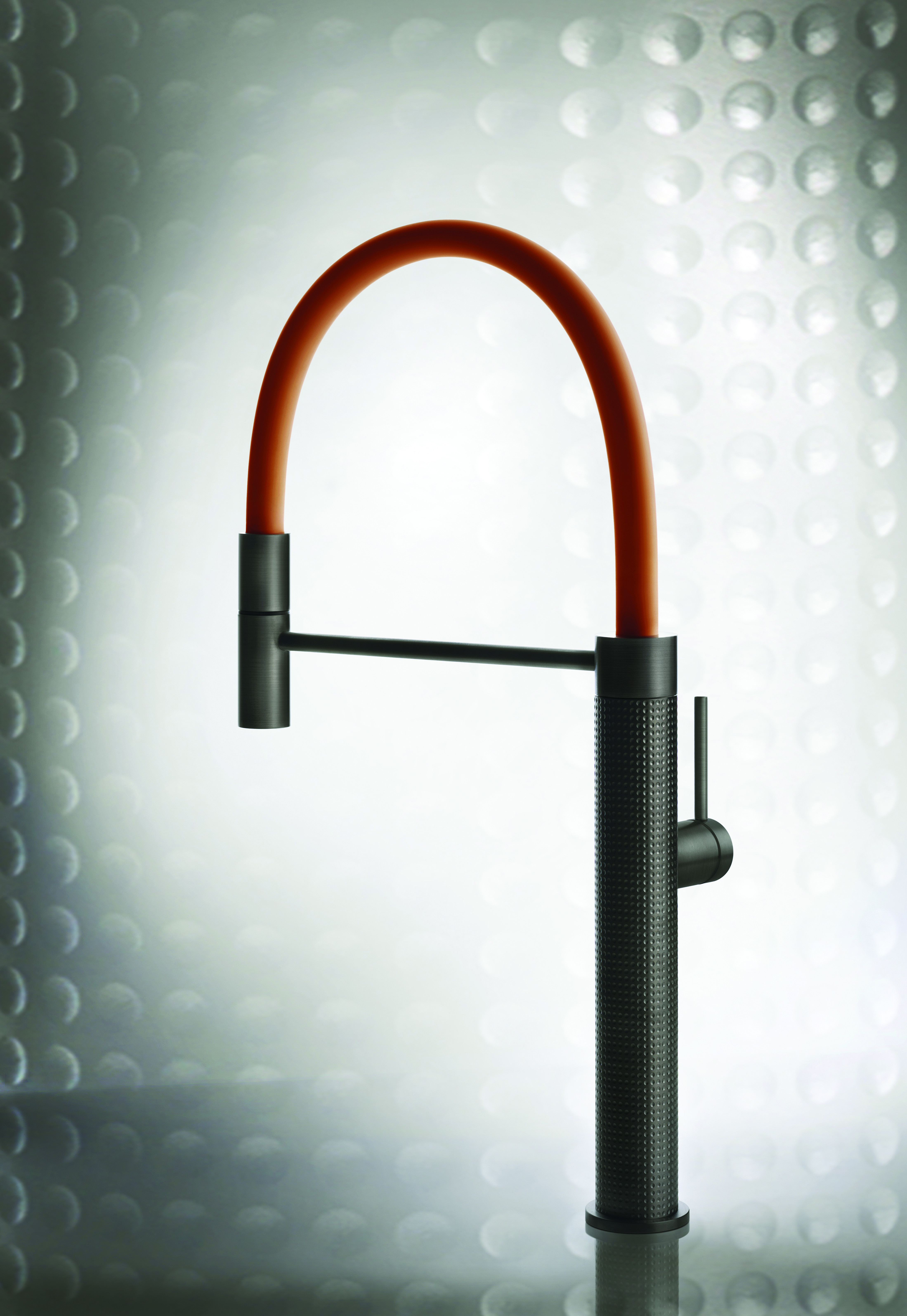 Полупрофессиональный смеситель для мойки с поворотным изливом и выдвижной лейкой с одной струей