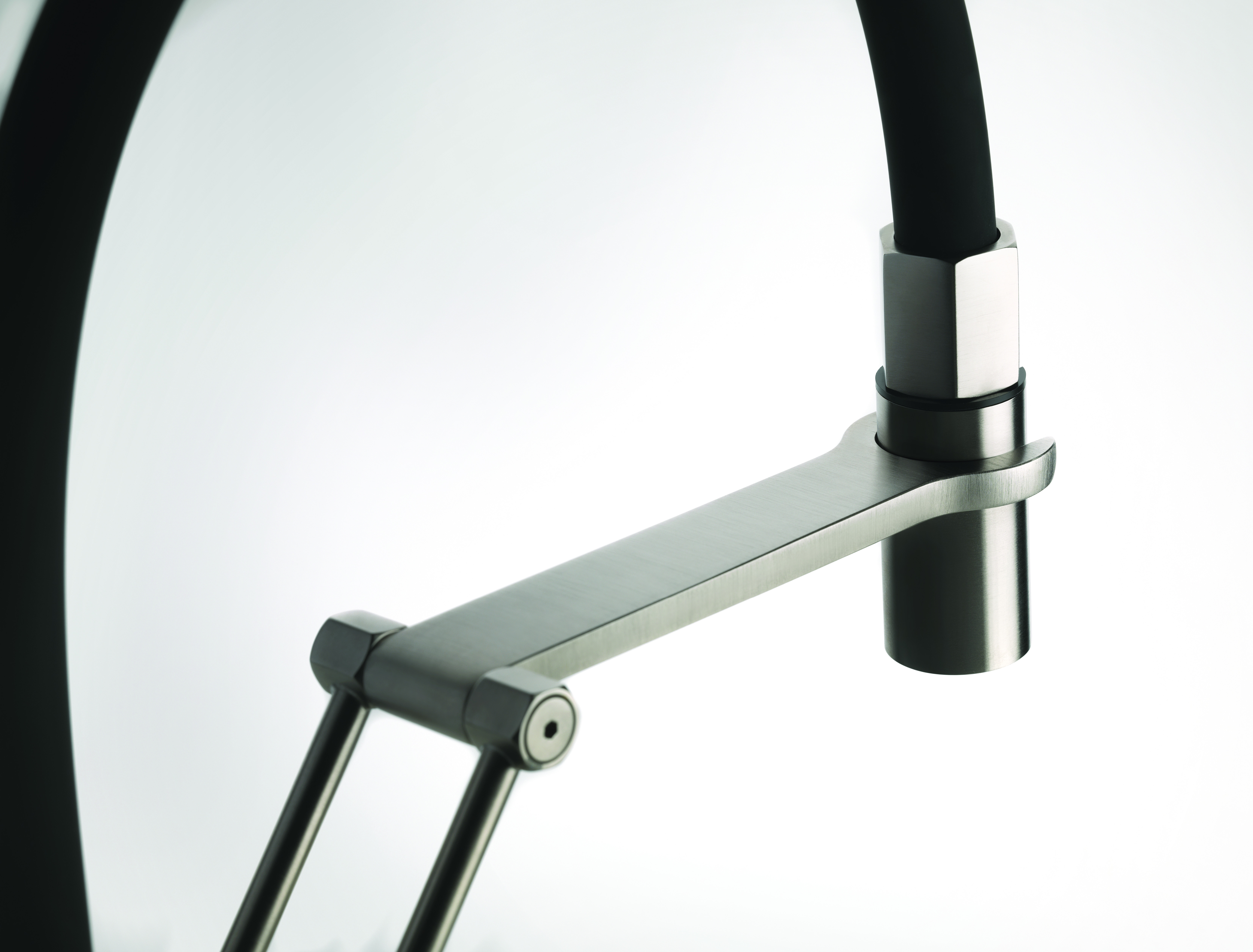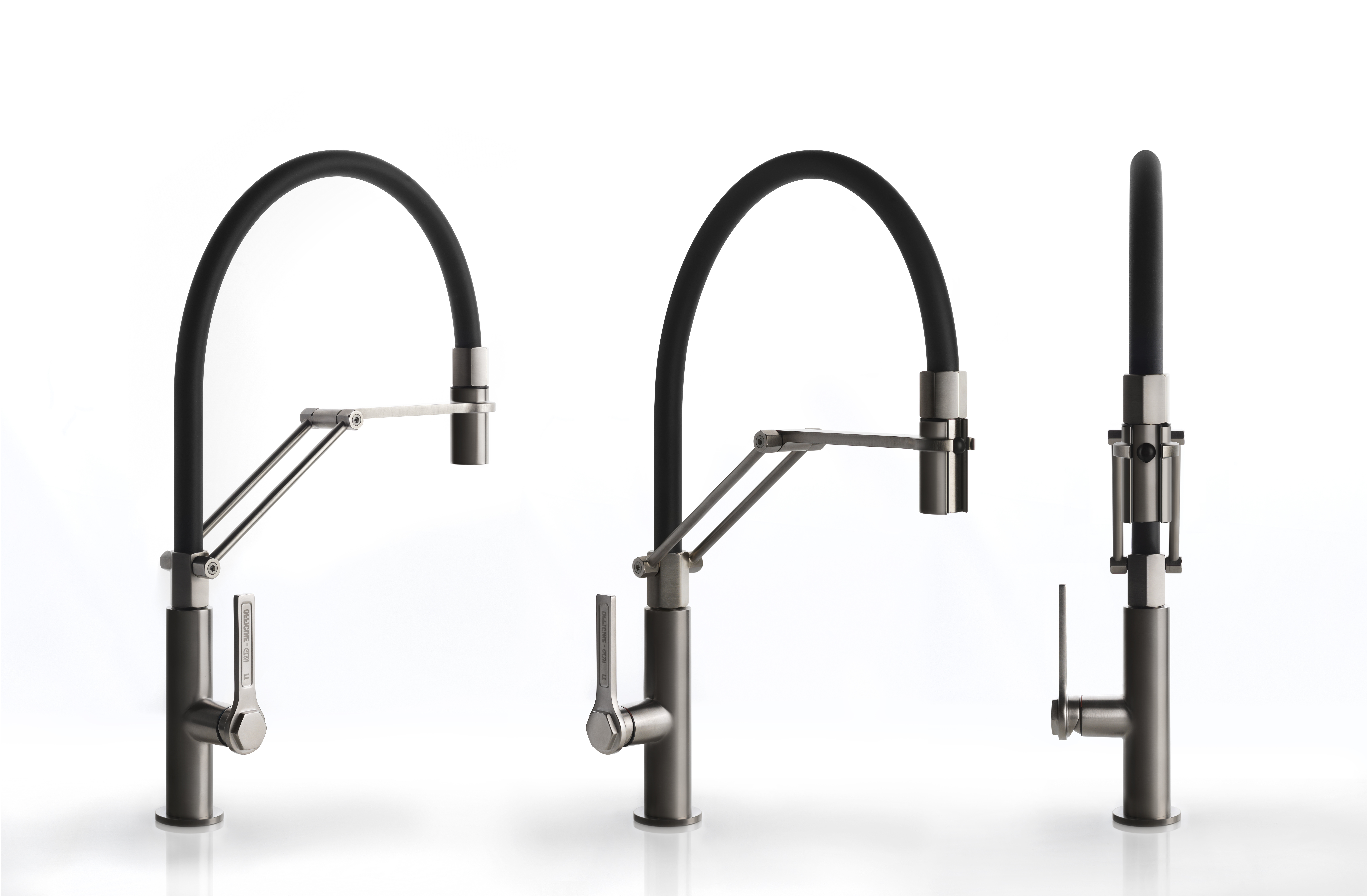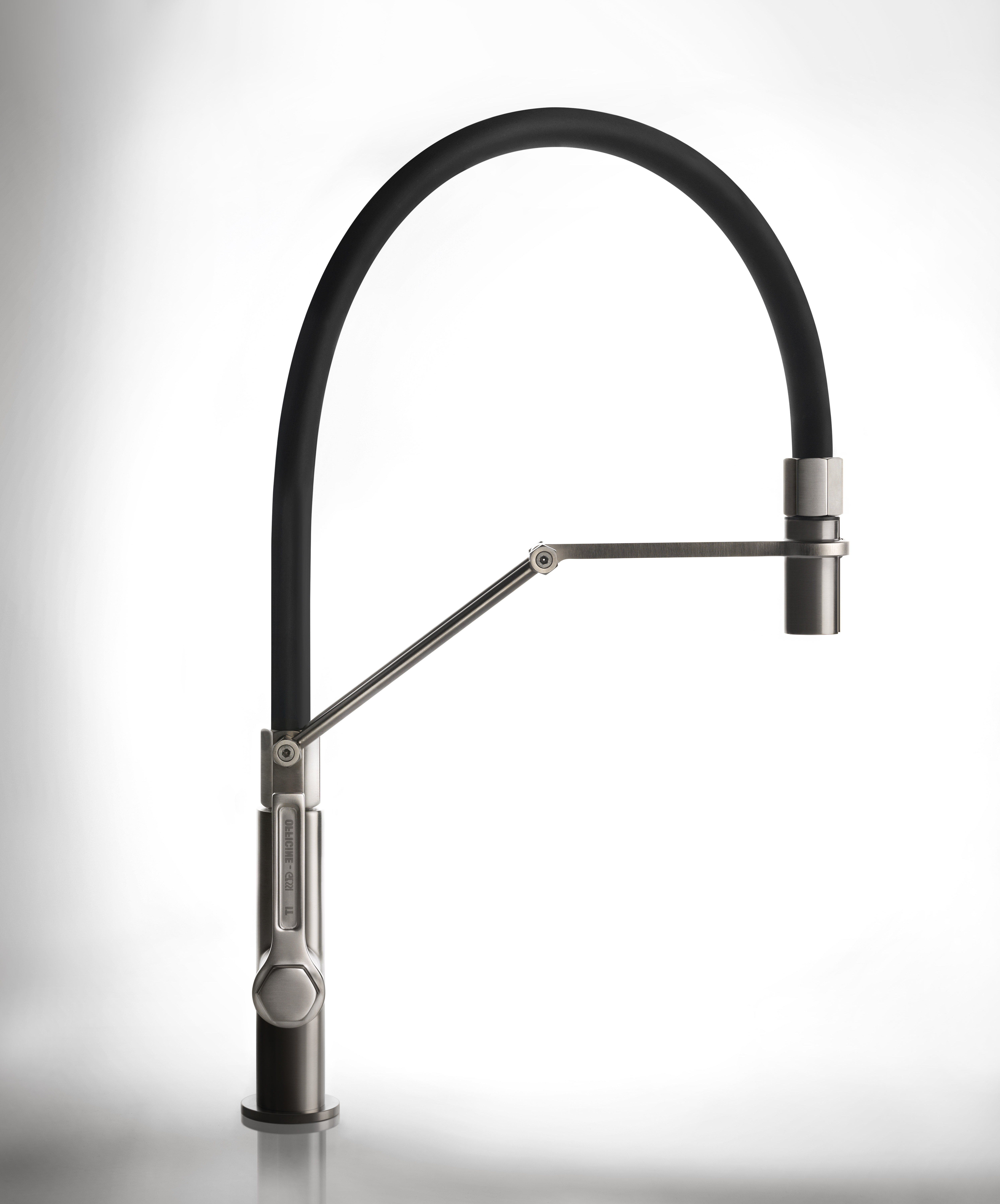 Полупрофессиональный однорычажный поворотный смеситель с выдвижным двухструйным ручным душем
