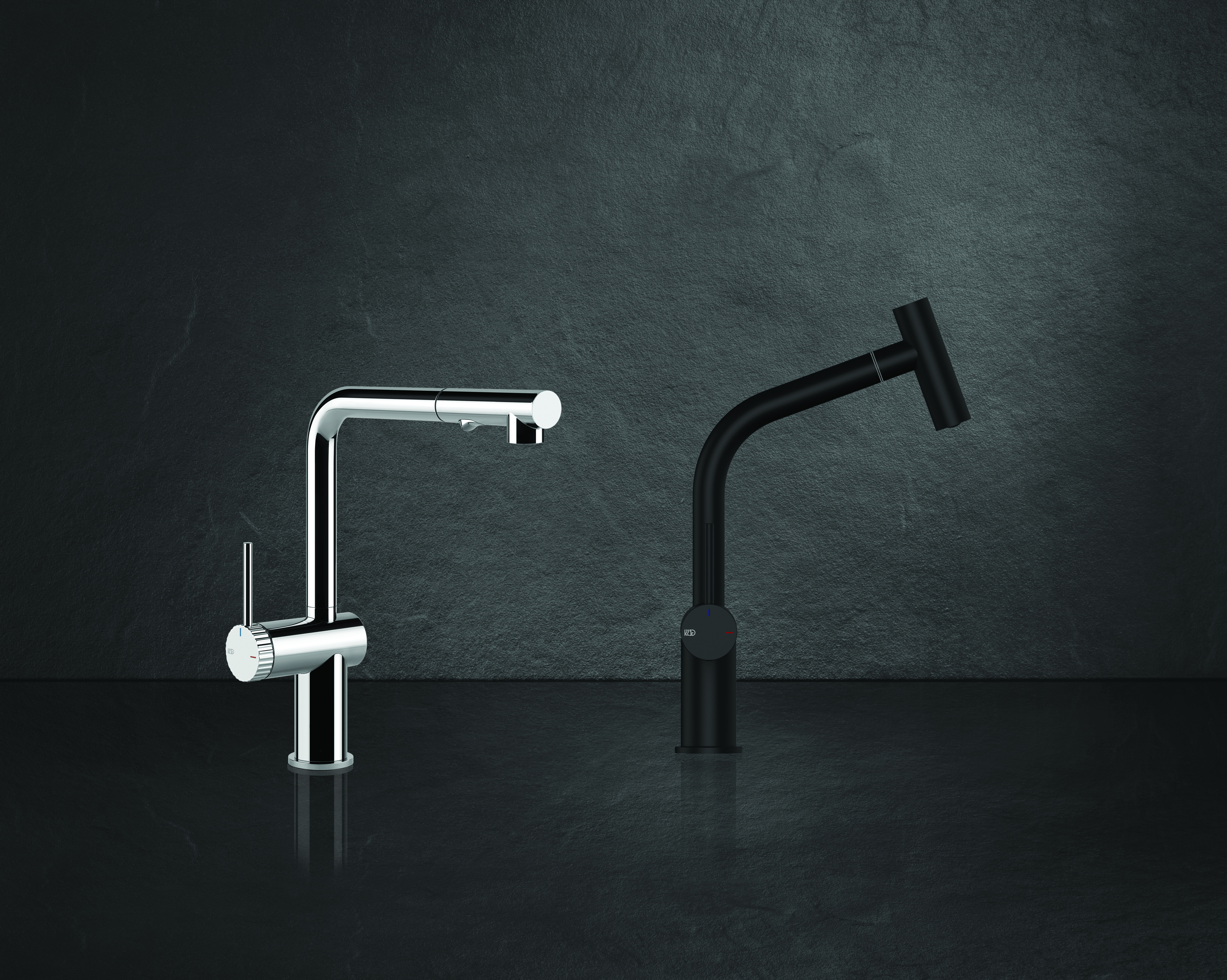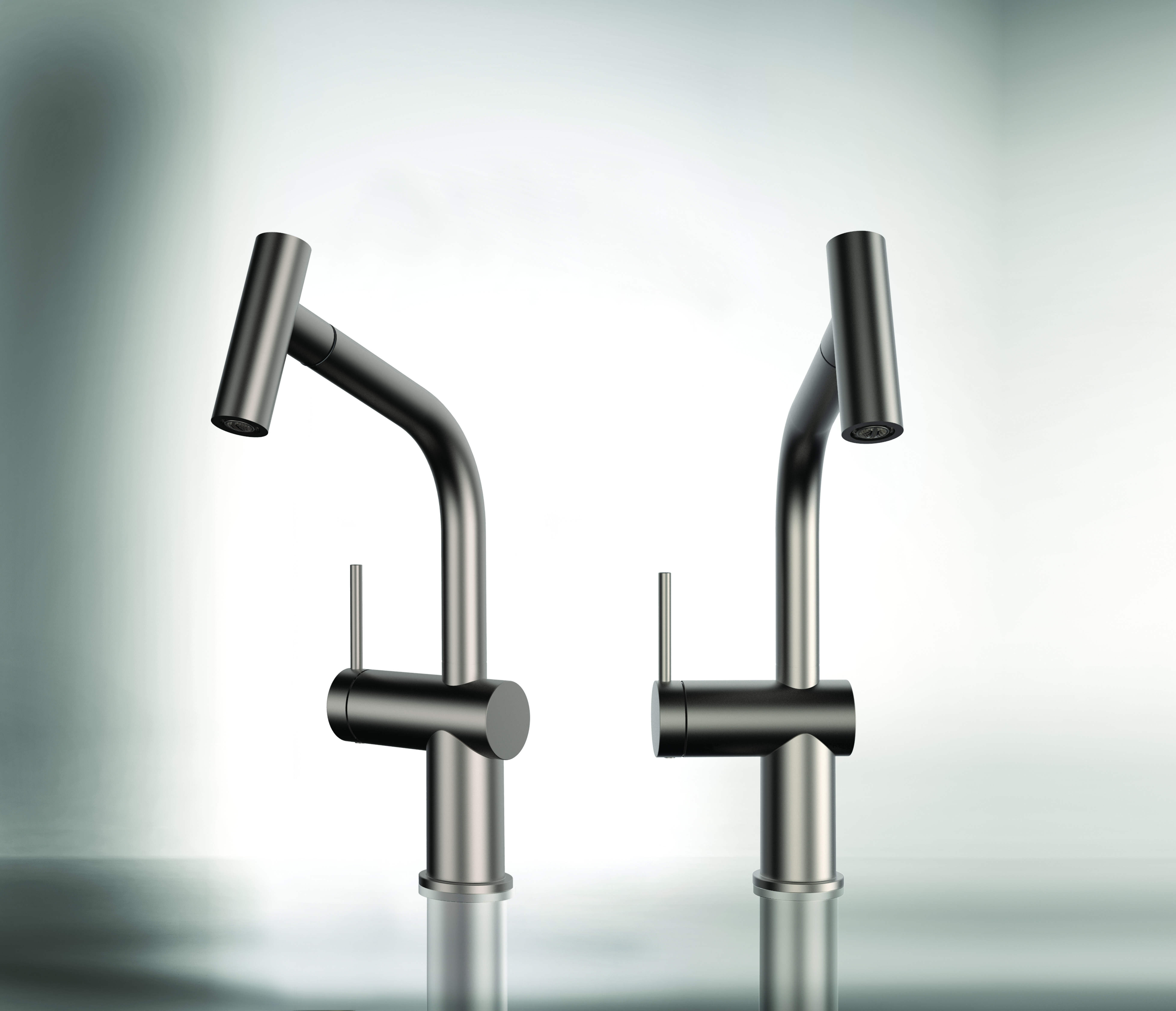 Смеситель для мойки с поворотным изливом и выдвижной душевой лейкой с двумя струями