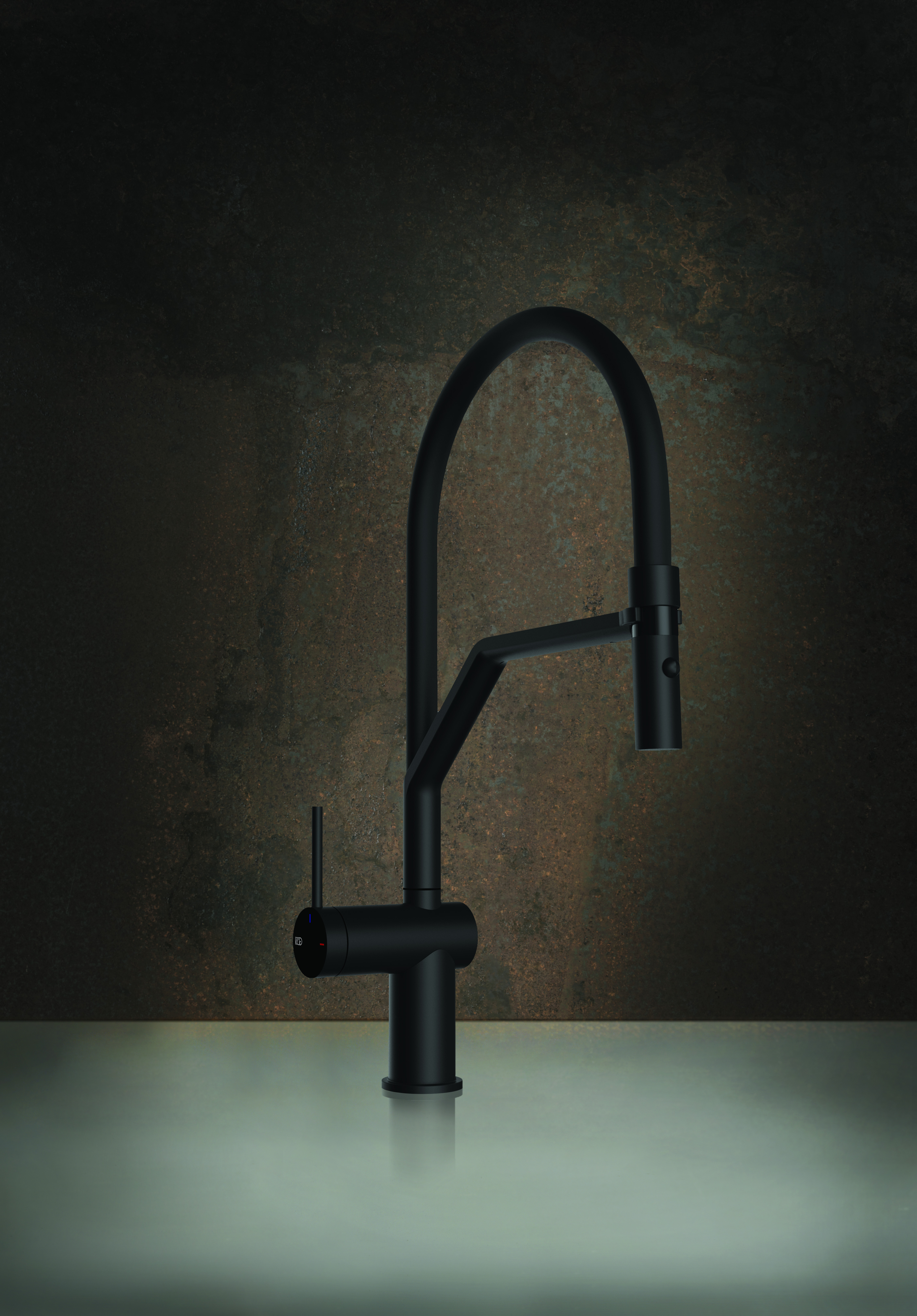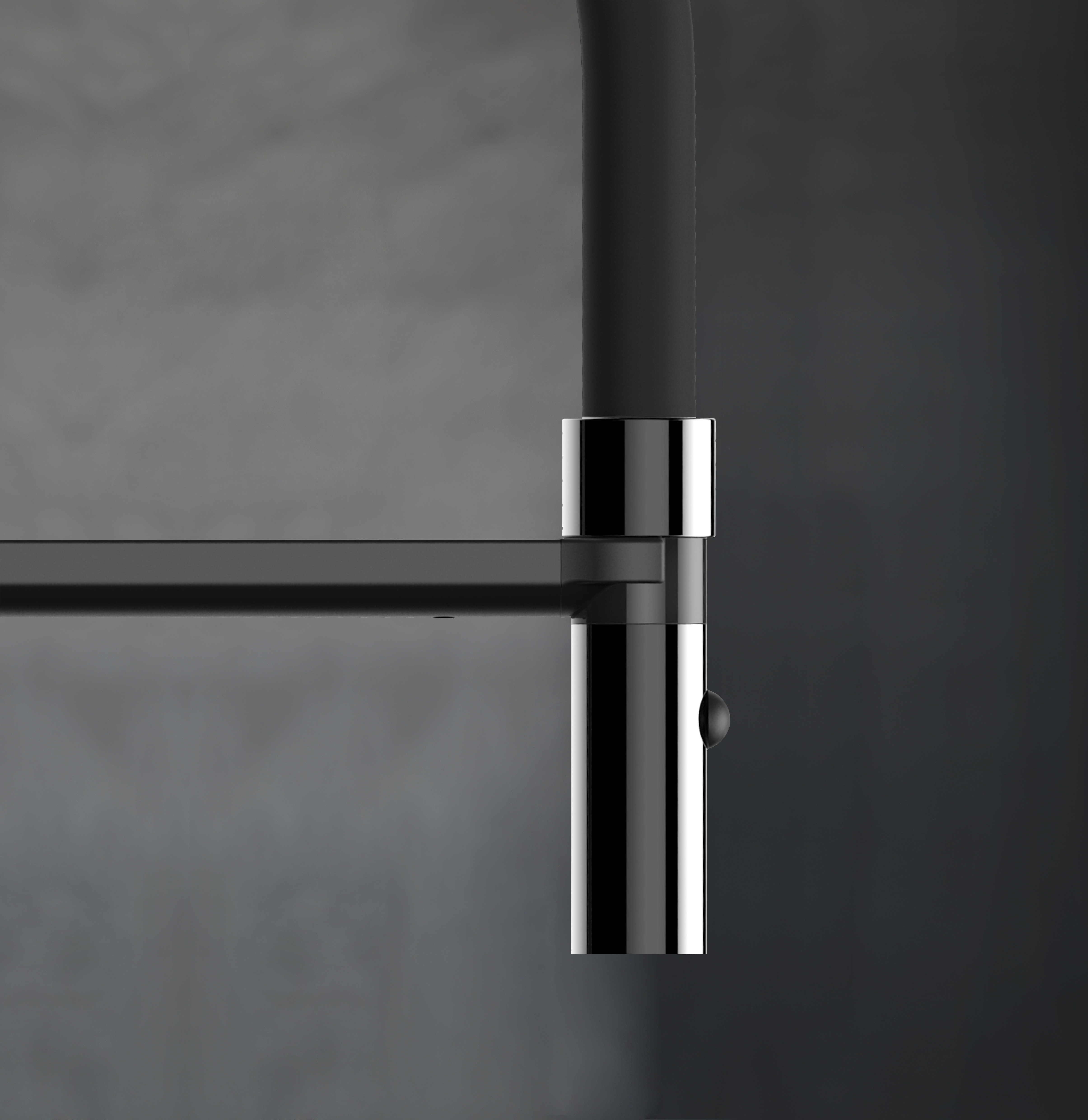 Полупрофессиональный однорычажный поворотный смеситель с выдвижным двухструйным ручным душем