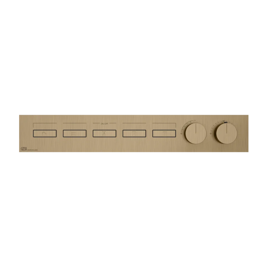 Внешние части термостатического смесителя для пяти отдельных функций, с кнопочным управлением включением/выключением.