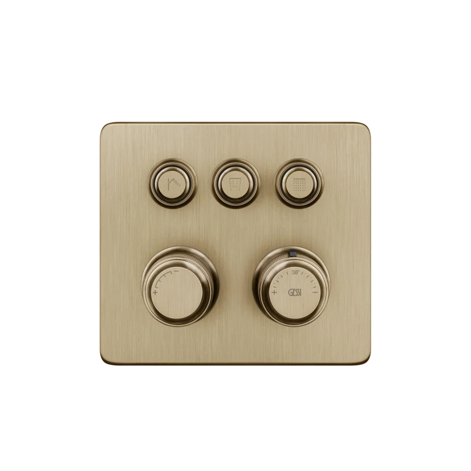 Внешняя часть термостатического смесителя для трех отдельных функций, с кнопочным управлением вкл/выкл