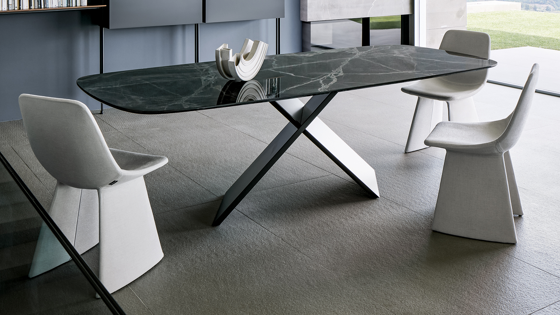 Кресло Agea — яркий пример современной обеденной мебели с обивкой, отличающееся выразительным дизайном. Его эффектные ножки словно прочно укоренены в пространстве, оставляя визуальный след в интерьере. Они поддерживают мягкое сиденье, выступая в роли опорных контрфорсов, что придаёт модели устойчивость, выразительность и строгость форм. Обивка из кожи, экокожи или ткани покрывает и корпус, и ножки единым материалом, подчёркивая целостный и элегантный облик кресла Agea.