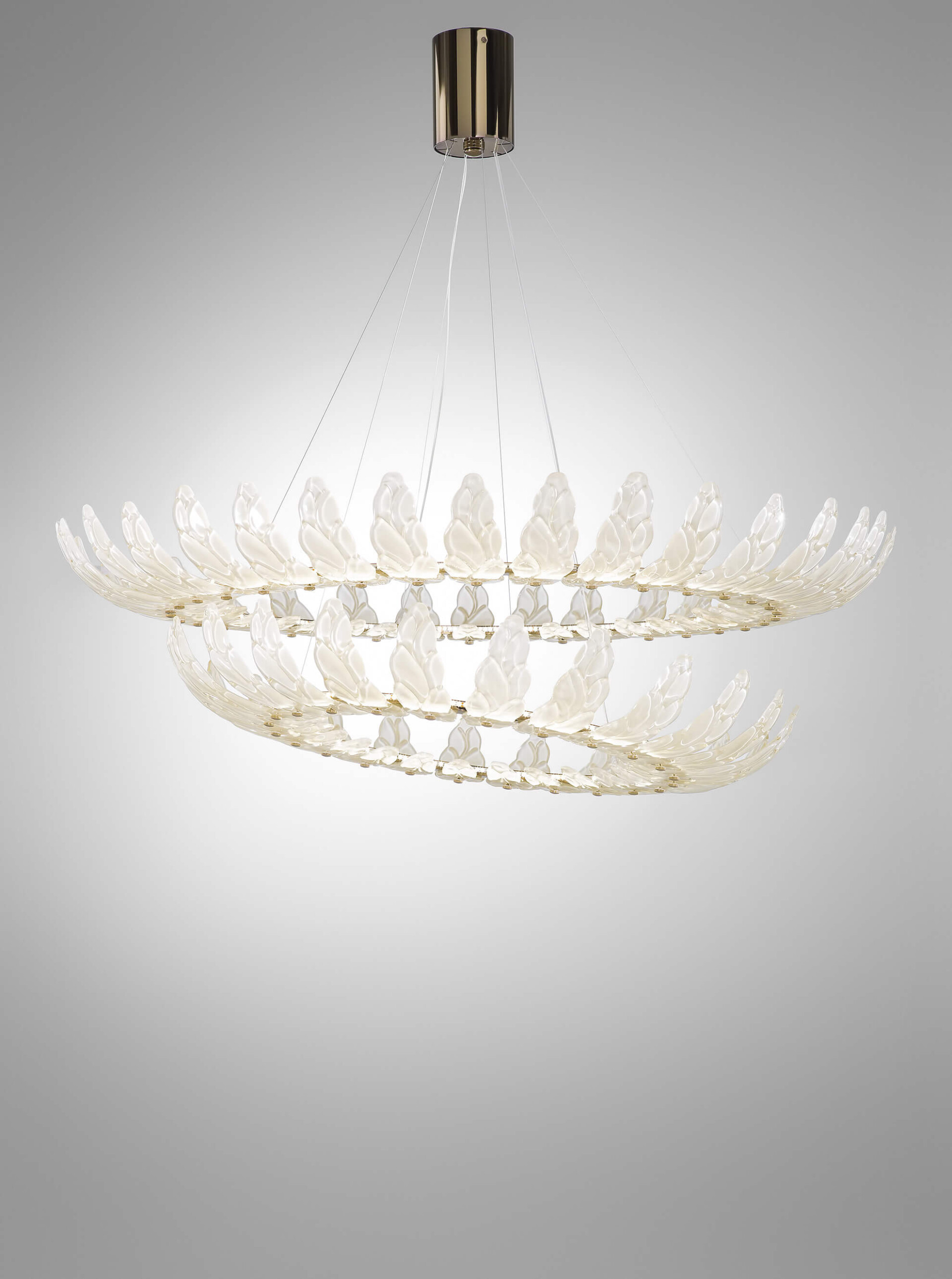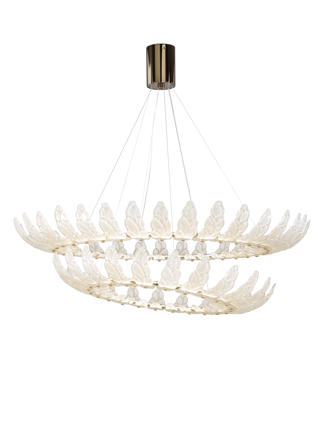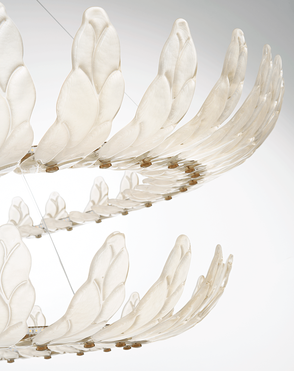 Подвесной светильник с листами из сатинированного тикового стекла и отделкой из позолоченного никелевого металла.