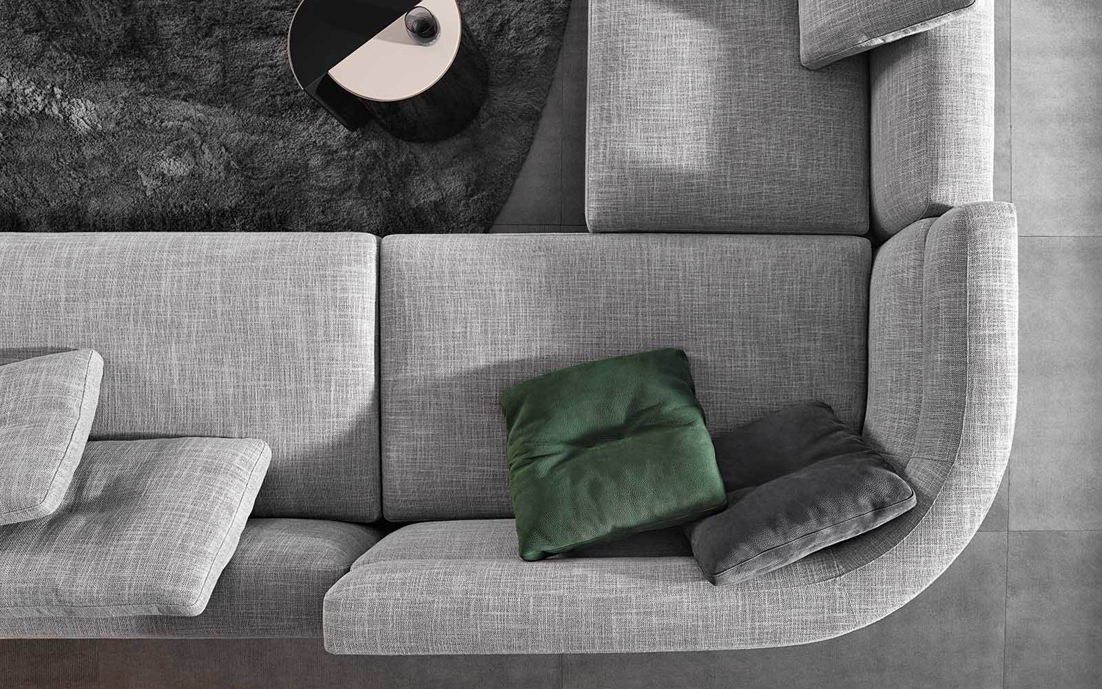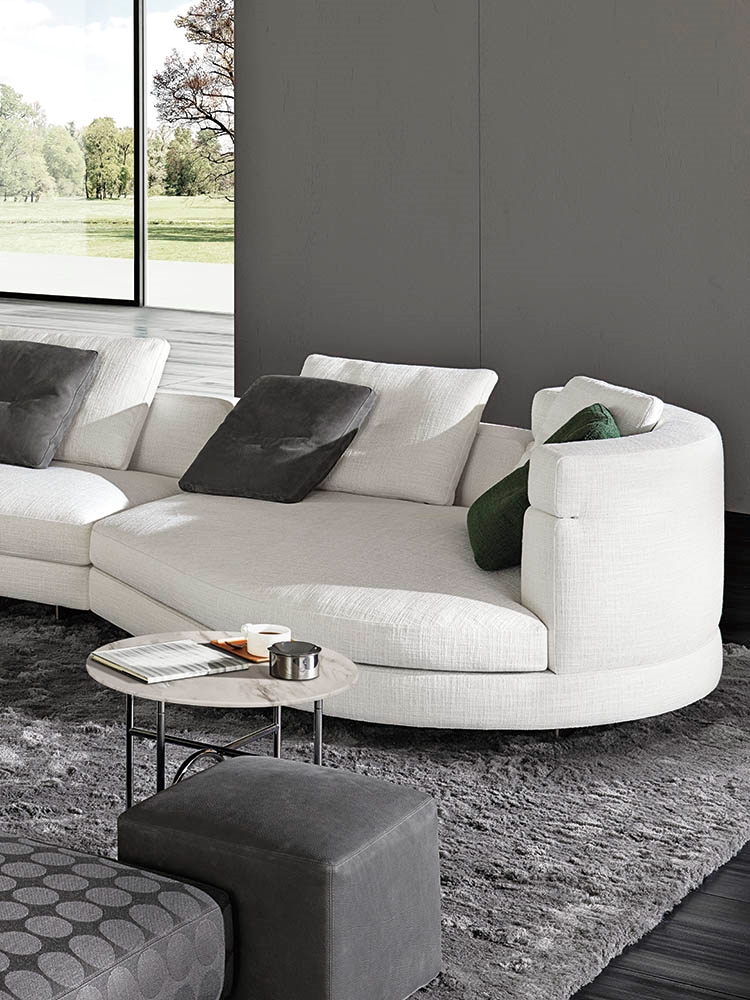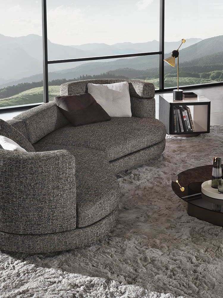 Alexander отличается визуальной массивностью, чётко очерченной посадкой и модульной гибкостью. Дизайн балансирует между строгостью и мягкостью — широкие подушки, глубокие сиденья и элегантные швы делают его универсальным решением как для семейной зоны, так и для представительской гостиной.