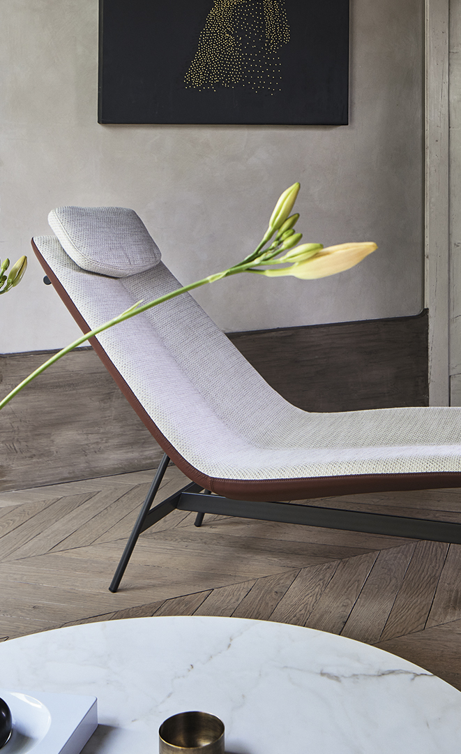 Силуэт кресла был тщательно продуман, чтобы объединить комфорт и элегантность, создавая идеальное место для отдыха. Alpilles доступно в различных вариантах обивки — натуральной кожей или тканью, что позволяет ему органично вписаться в любой интерьер, подчеркивая его стиль и индивидуальность.