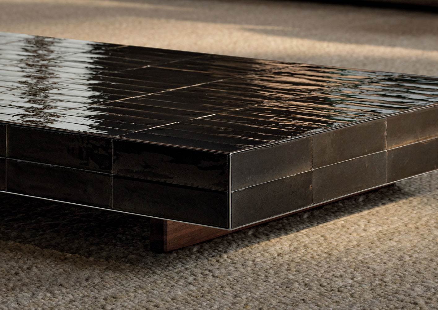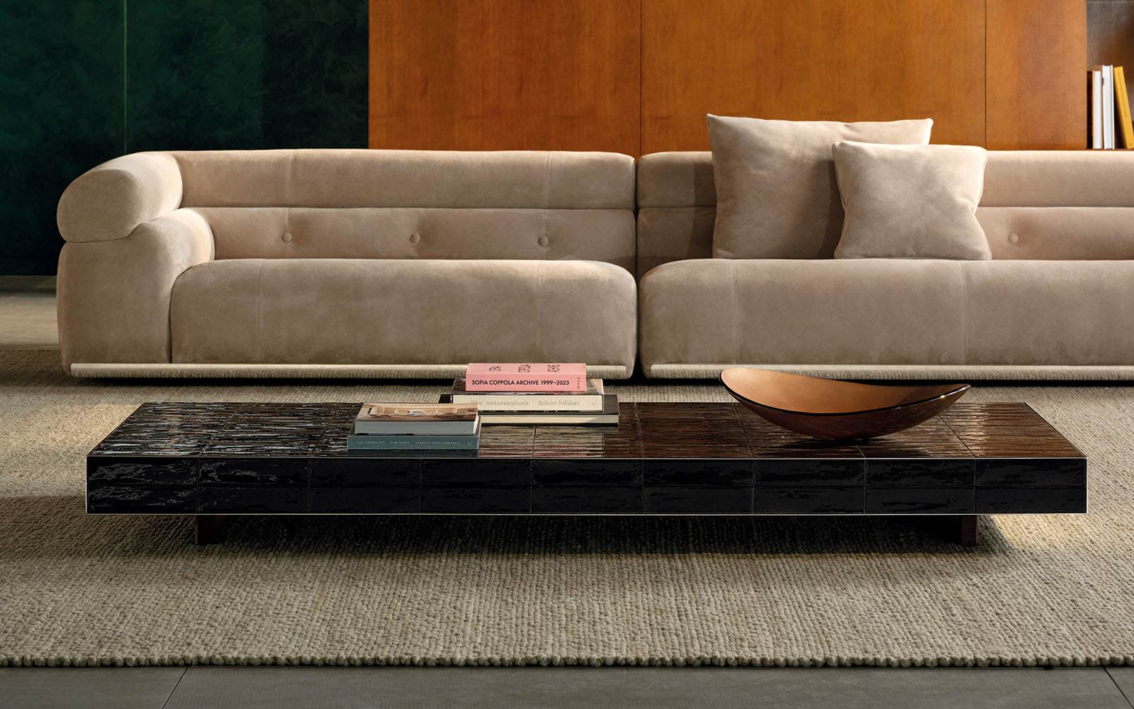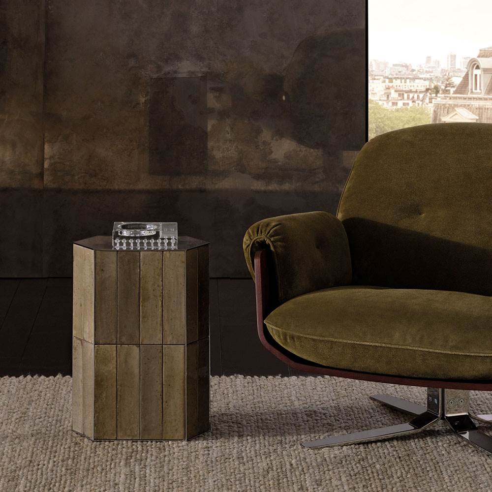 Журнальный столик Andrée — выразительный элемент коллекции, сочетающий скульптурную деревянную основу с прямоугольной или квадратной столешницей. Основание выполнено из массива дуба с отделкой в цветах Moka, Tobacco или Licorice. Столешница доступна в шпоне дерева либо мраморе (Calacatta, Sahara Noir, Grigio Orobico), что придаёт модели архитектурный и в то же время тактильный характер.