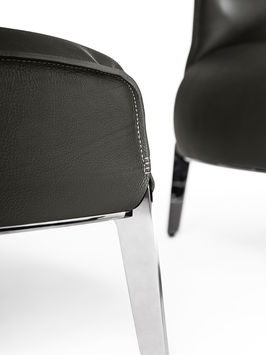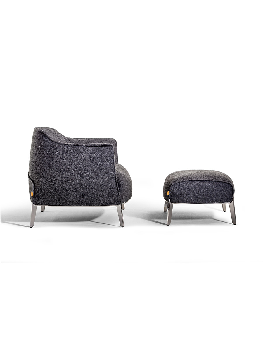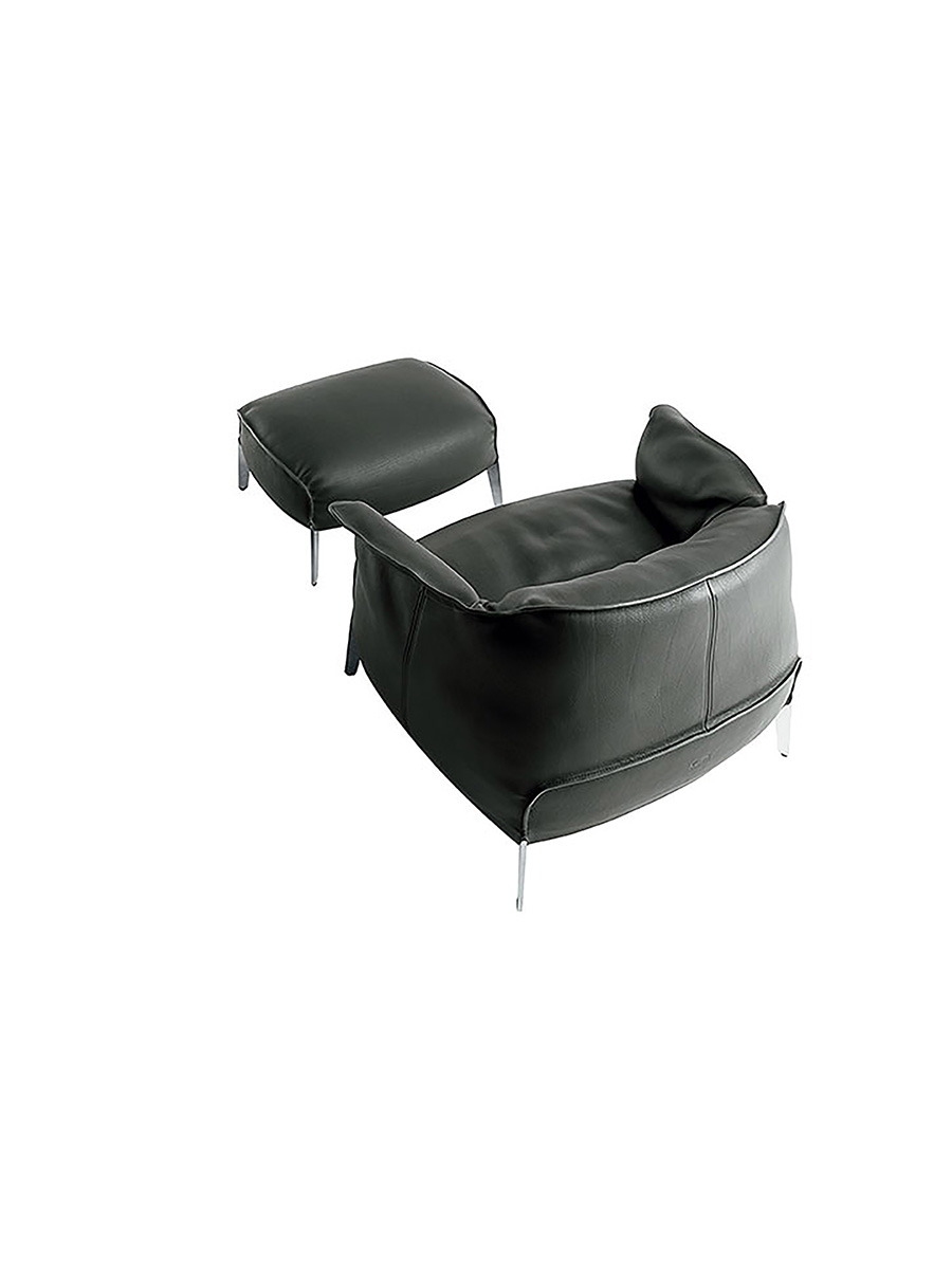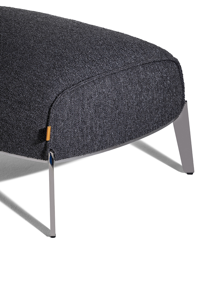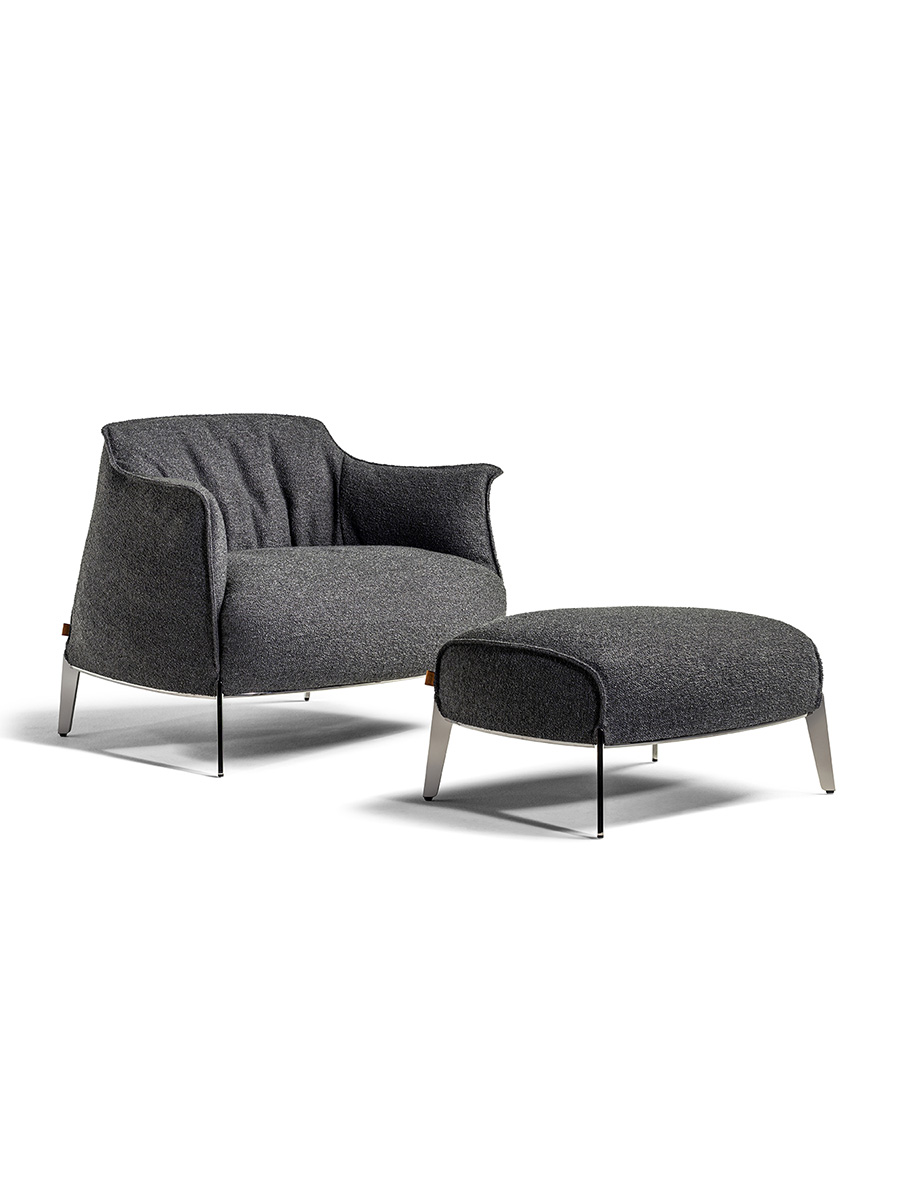 Внешняя обивка пуфа Archibald Gran Comfort доступна из кожи Pelle Frau® Safari или из ткани Poltrona Frau. В обоих вариантах обивка съёмная. В кожаном варианте периметр обтянут необработанной кожей, окрашенной вручную в соответствующий оттенок. Строчка может быть как однотонной, так и контрастной. В тканевом варианте строчка выполнена тон в тон.