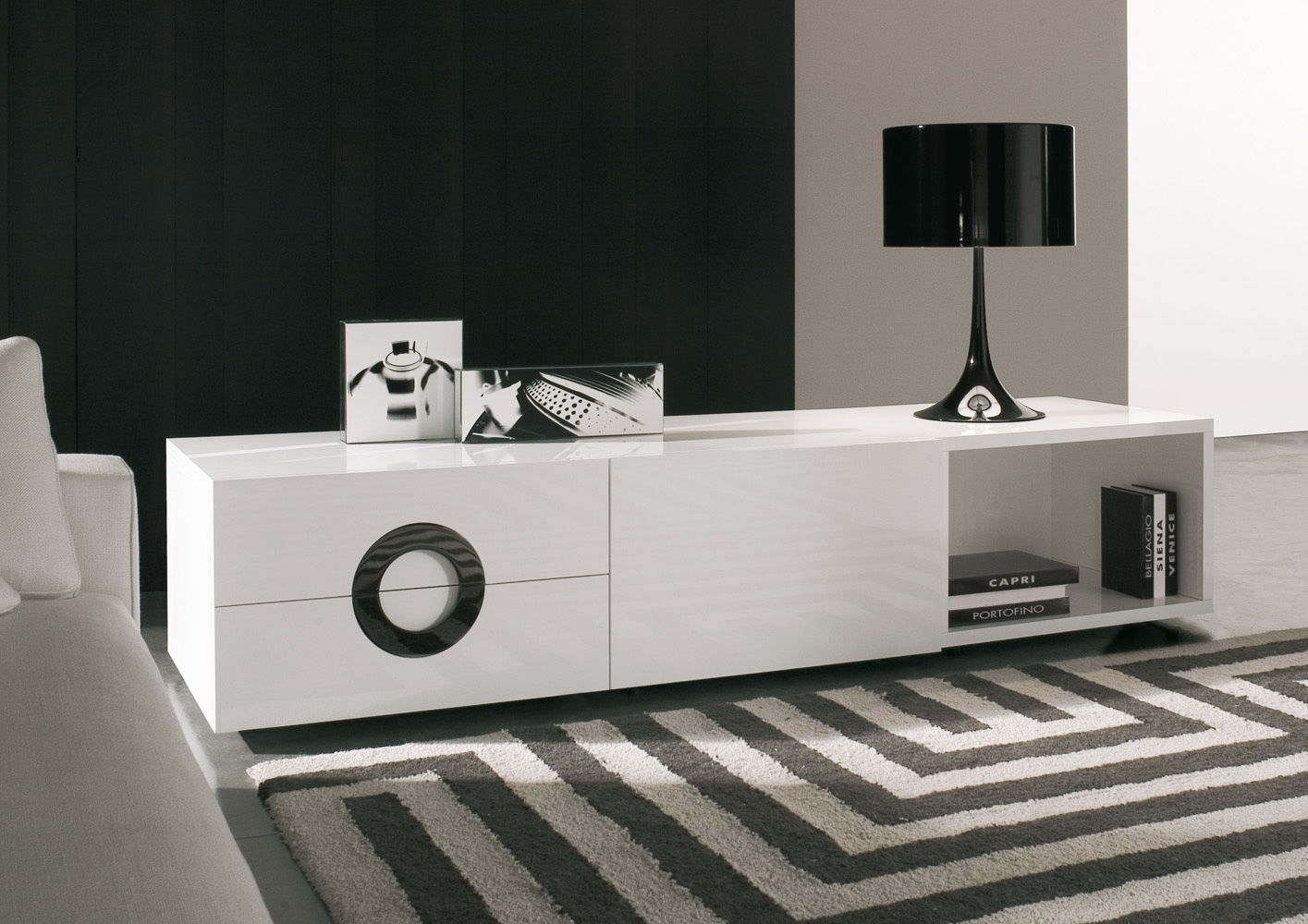 Гибкая система модулей для создания индивидуальных композиций. Её отличают округлые углы, скрытые ручки и лаконичная эстетика. Модули могут быть настенными или напольными, открытыми или закрытыми, в зависимости от конфигурации.