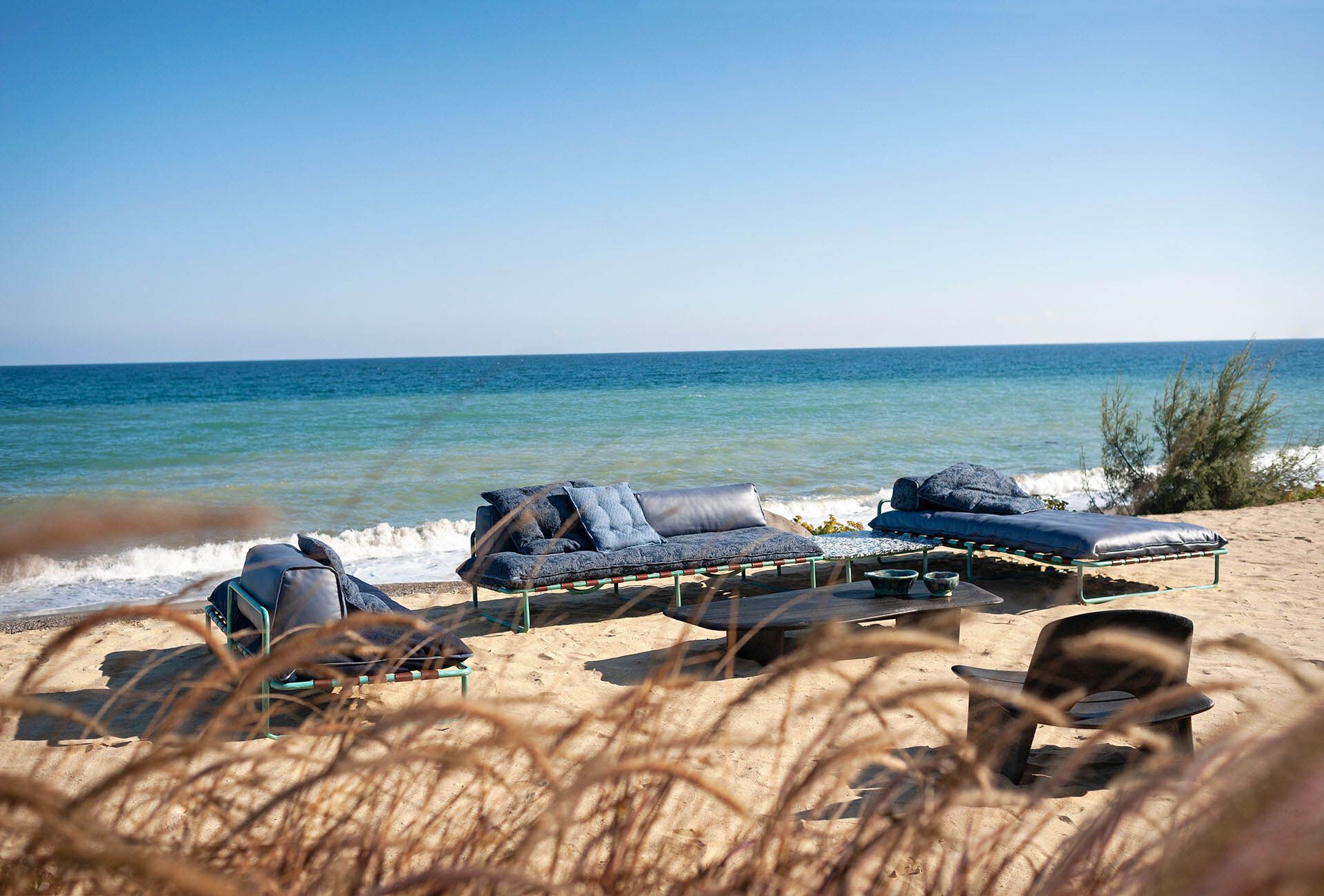 Arizona — садовый диван из протравленной меди и ткани, дизайн Paola Navone.