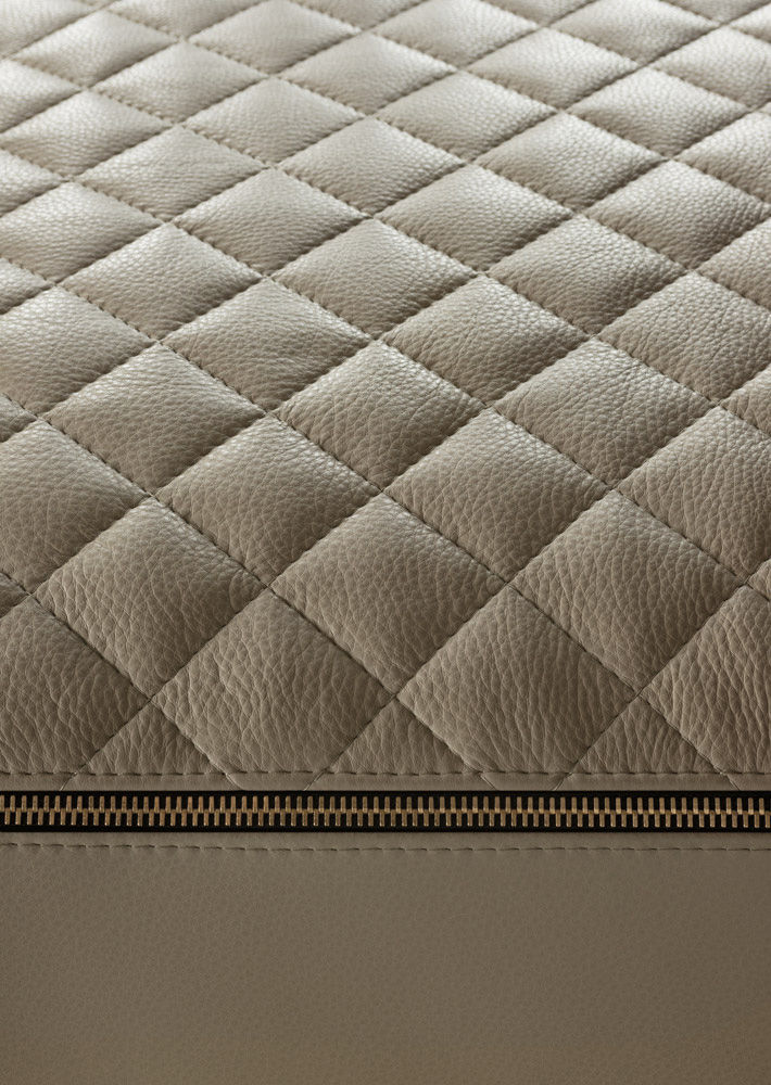 Описание: Ashley Pouf отличается утонченным дизайном с легким ромбовидным узором и элегантными молниями матового золотого или цвета Pewter. Доступен в трех размерах, что позволяет использовать его в различных интерьерах.