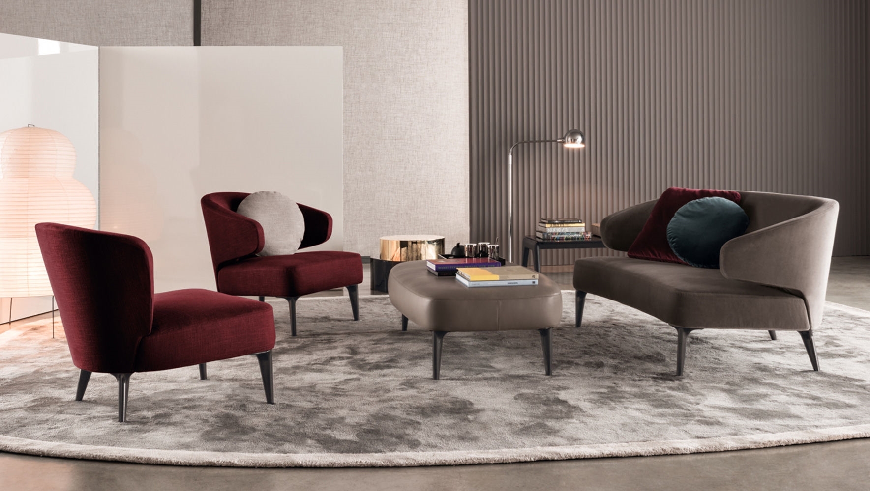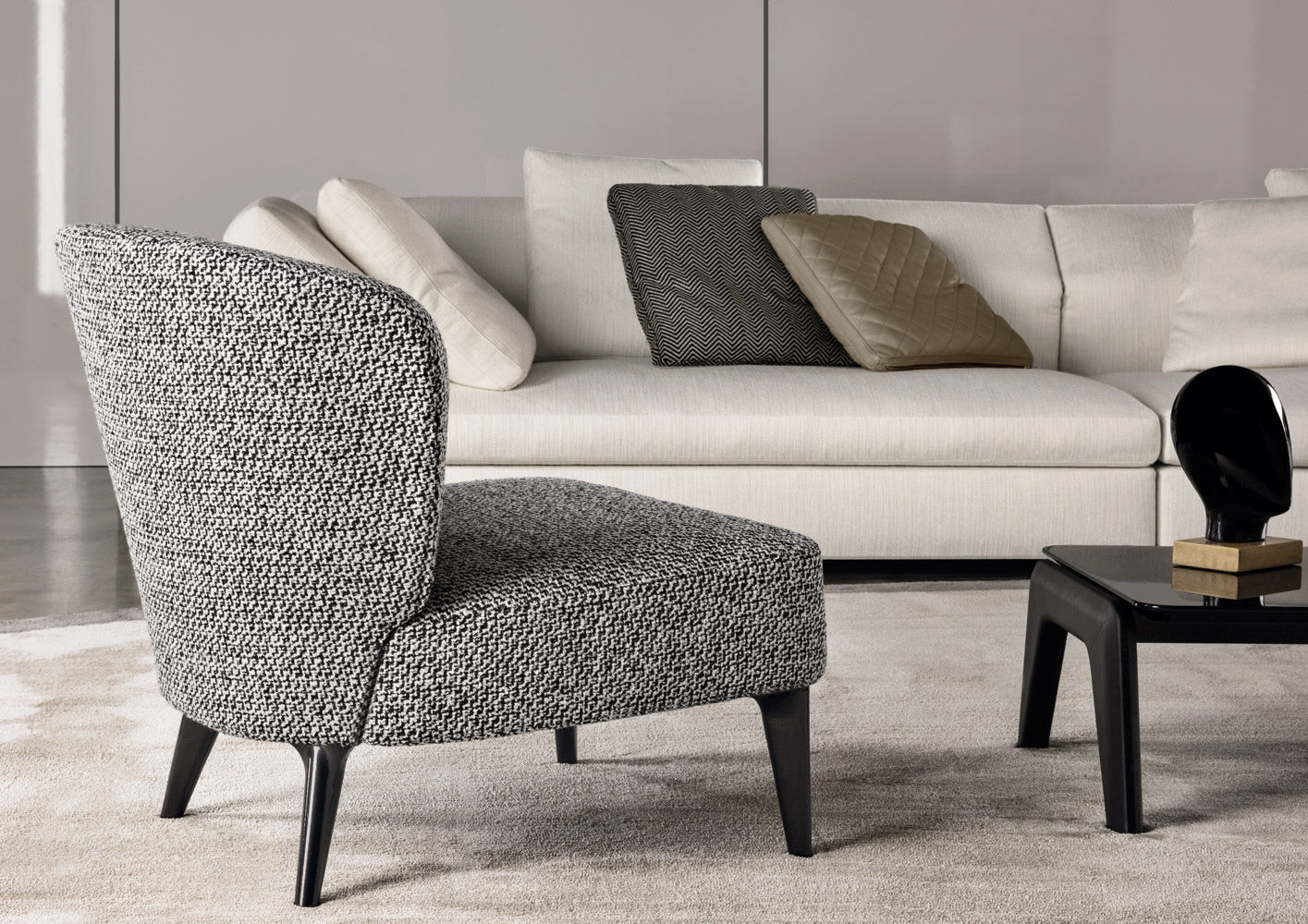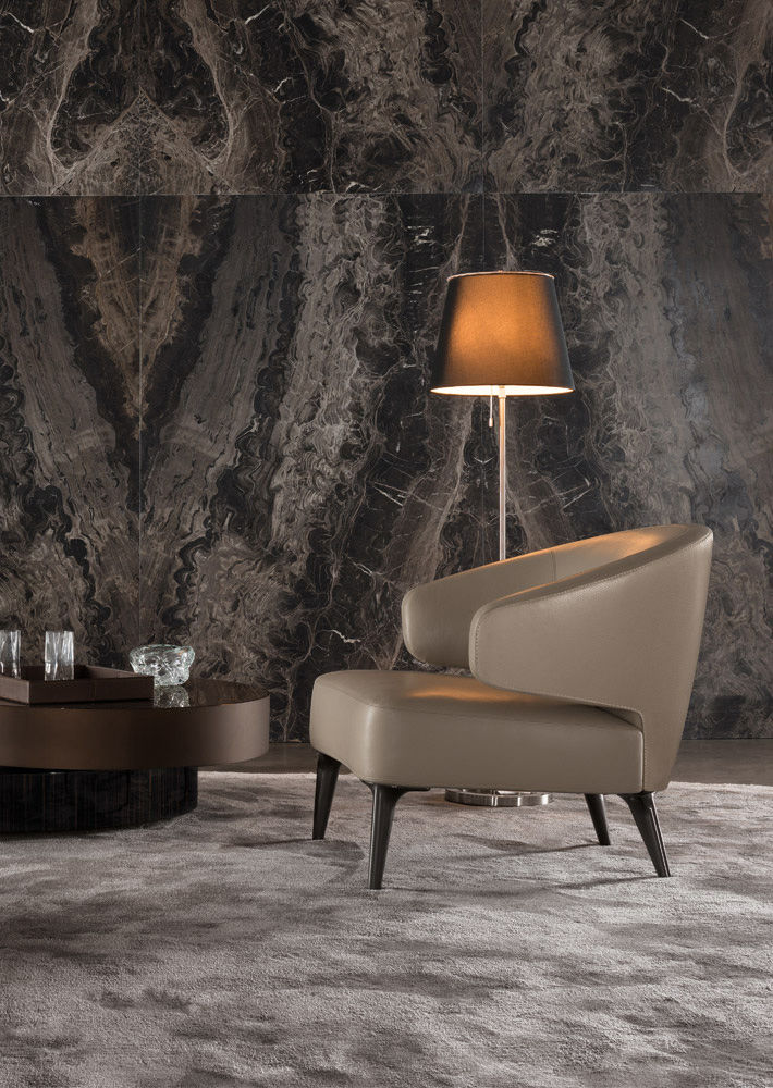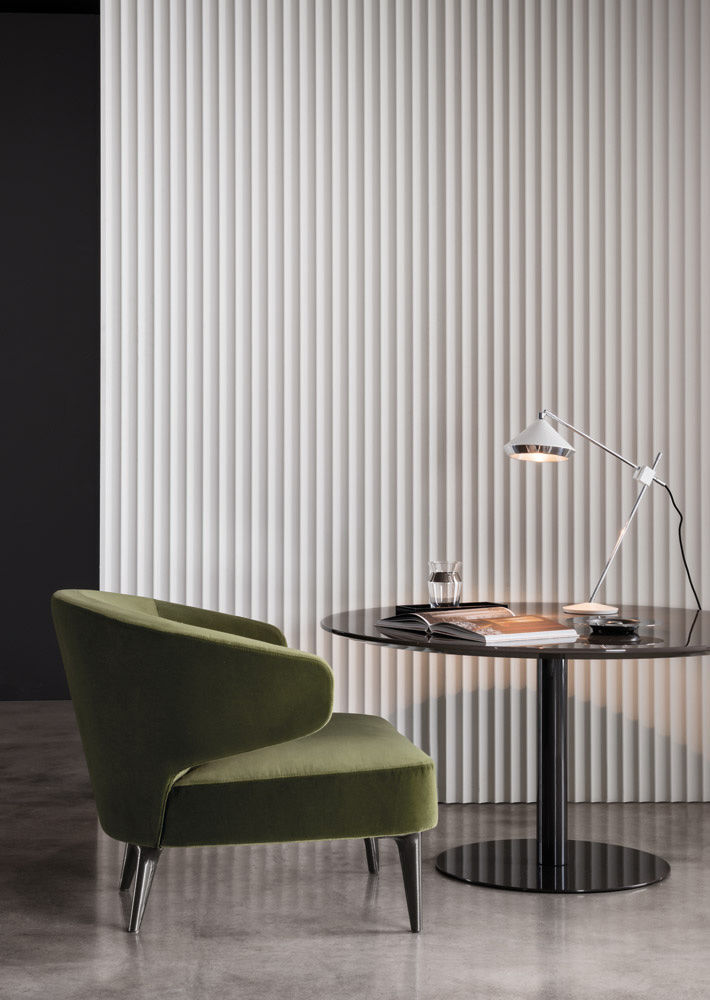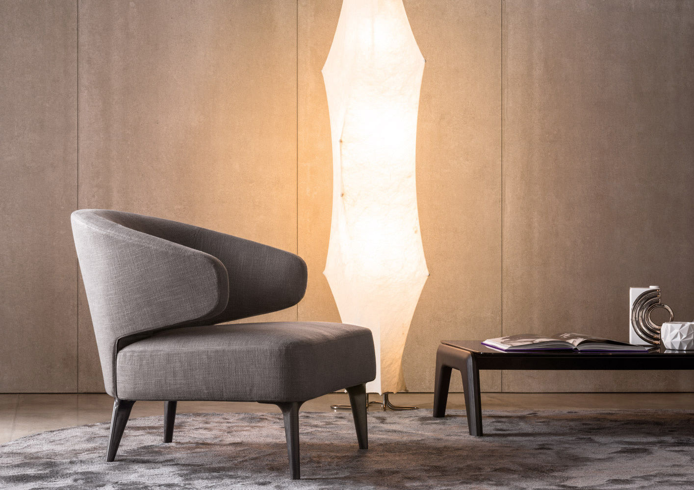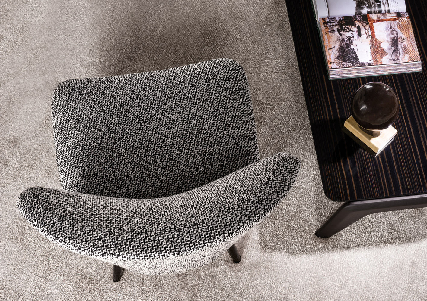 Aston — кресло с изогнутой спинкой и характерным профилем, вдохновлённое эстетикой середины XX века. Комфортная посадка делает его универсальным элементом интерьера.