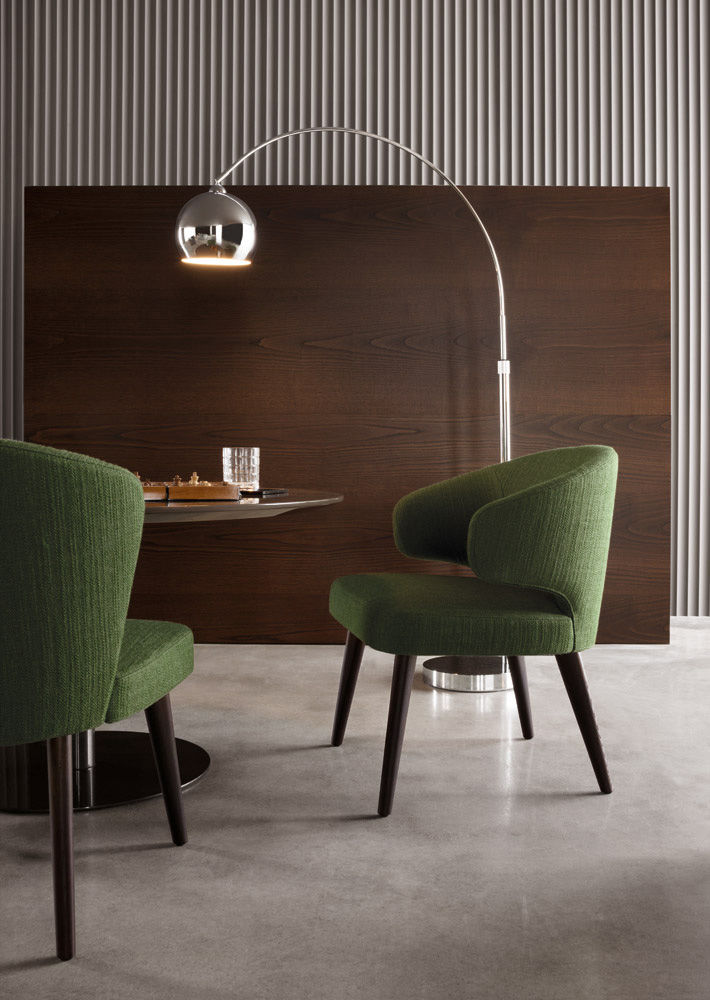 Aston Lounge повторяет характерную обволакивающую форму всей коллекции Aston. Мягкая, обитая спинка и сиденье опираются на ножки из массива ясеня с отделкой в открытых порах цвета Tobacco или лакированной Moka. Благодаря высоте сиденья 43 см и компактным размерам, кресло идеально сочетается со всеми журнальными столиками коллекции Minotti.