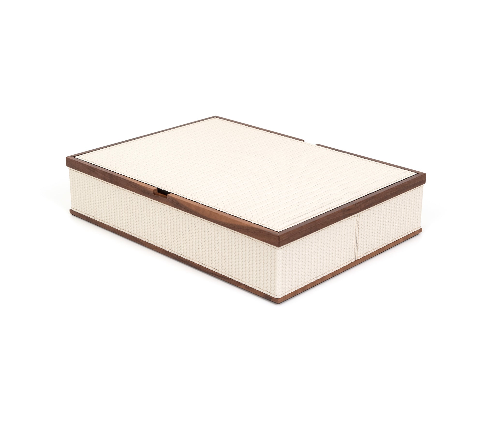 Каркас из древесины ореха и лаконичные современные линии, которые превращают винтажные мотивы в современную элегантность. Коллекция из четырёх разных размеров с безупречной деталировкой для создания идеального порядка на вашем рабочем столе.