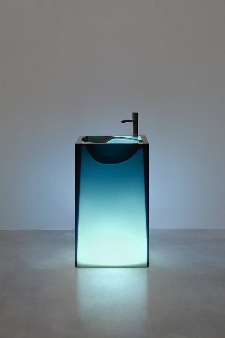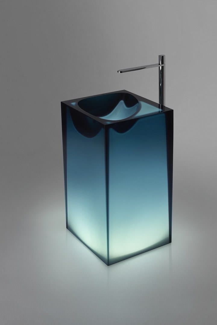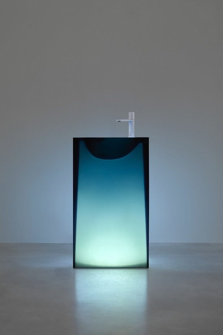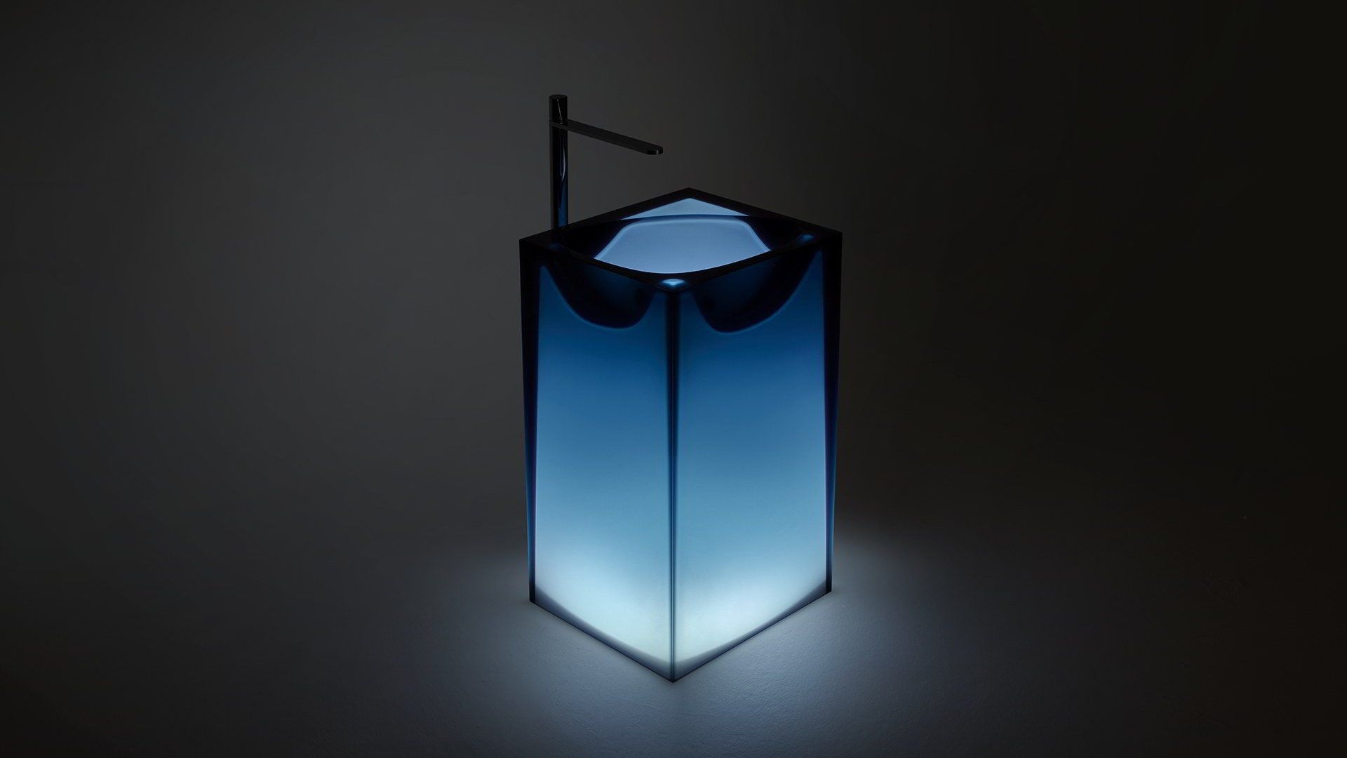 Отдельно стоящая раковина Astro с яркой индивидуальностью и скульптурным присутствием, определяющим иерархию среды. Абсолютный тотем, который приобретает дополнительное очарование благодаря возможности подсветки материала, делая его ярким со светом и отражениями, распространяющимися по всему пространству.