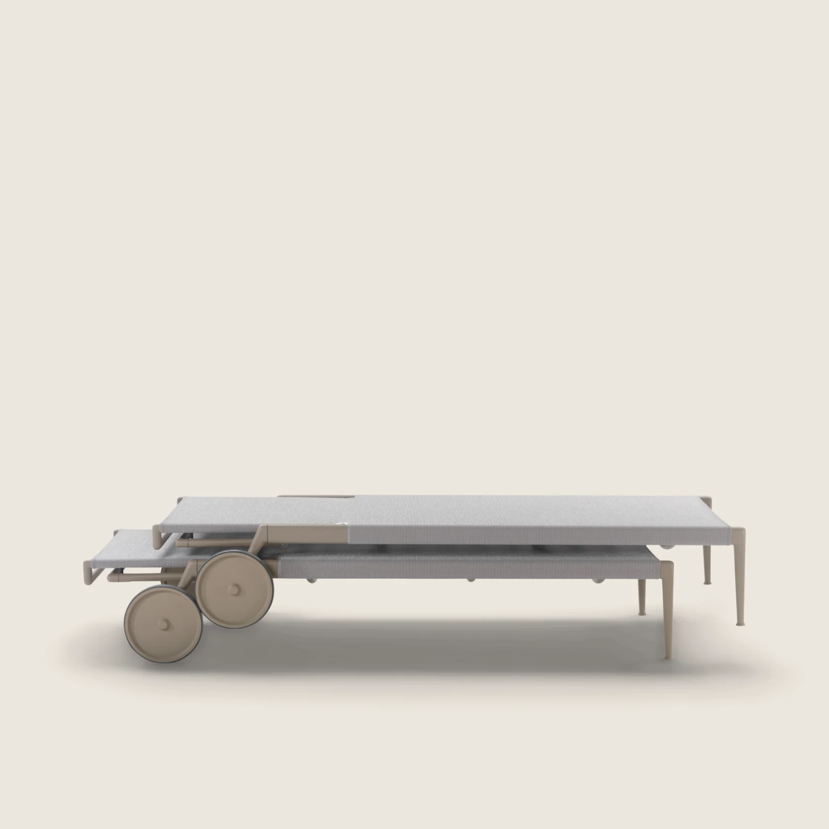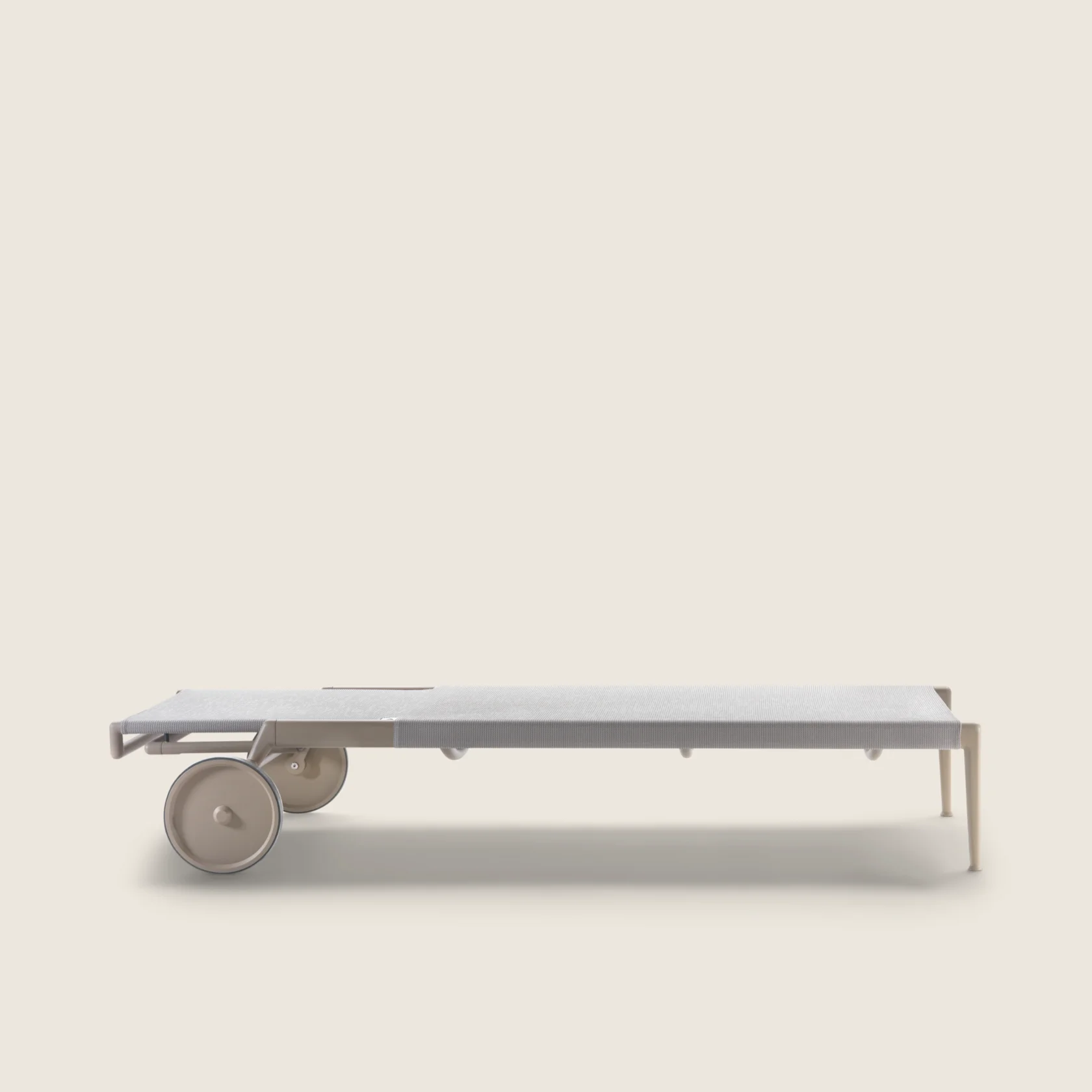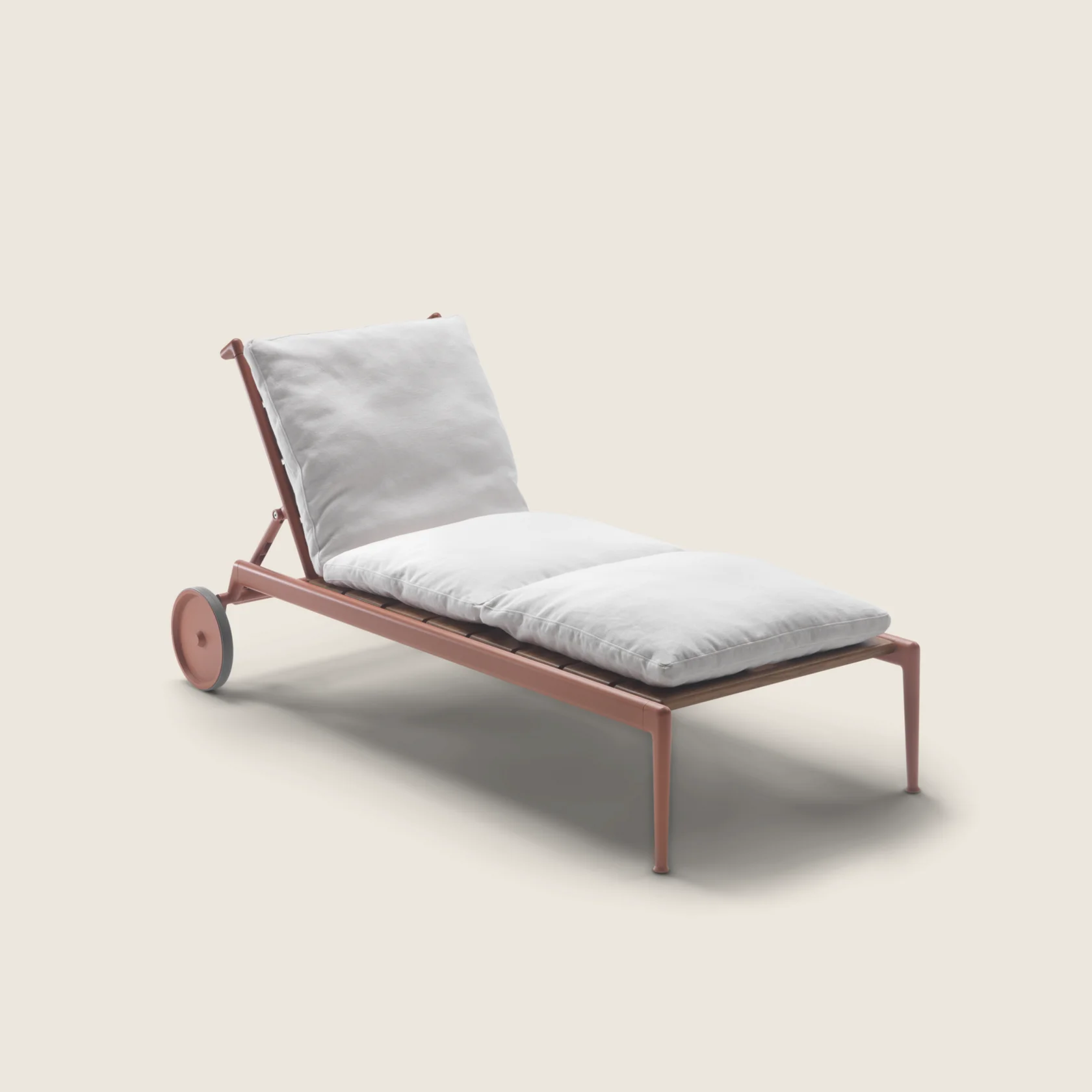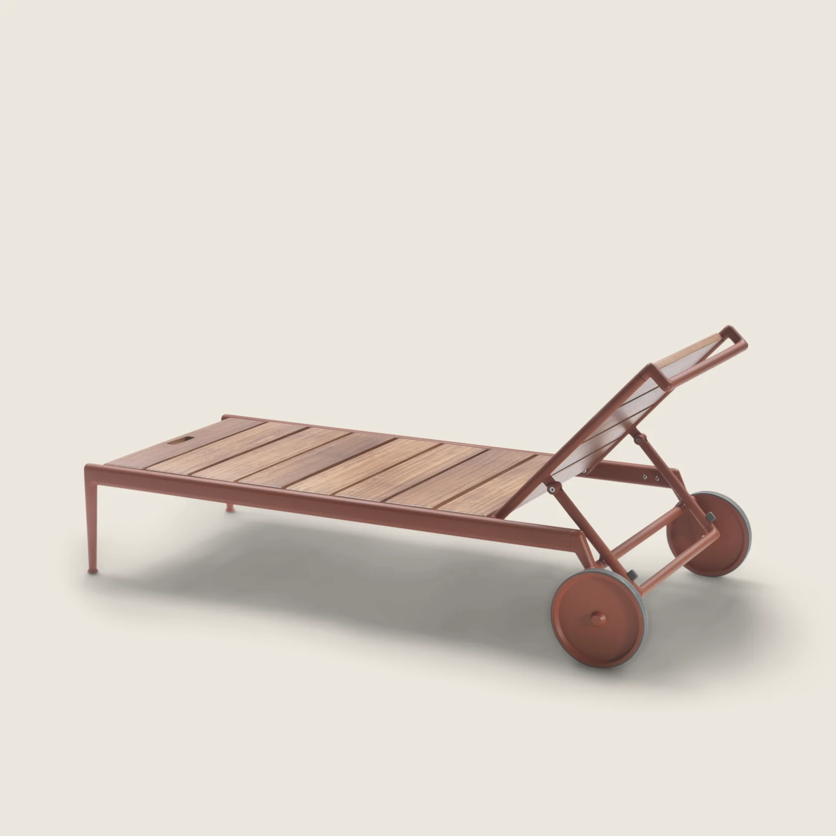 Atlante Light и Atlante Wood — это элегантные уличные шезлонги с лаконичным дизайном и повышенной устойчивостью к внешним воздействиям. Обе версии оснащены регулируемой спинкой с несколькими положениями, а также встроенными колёсами для удобства перемещения. Модель Light отличается минималистичным исполнением из алюминия и технической ткани, а Wood предлагает более тёплую, естественную эстетику за счёт деревянной основы из массива ироко.