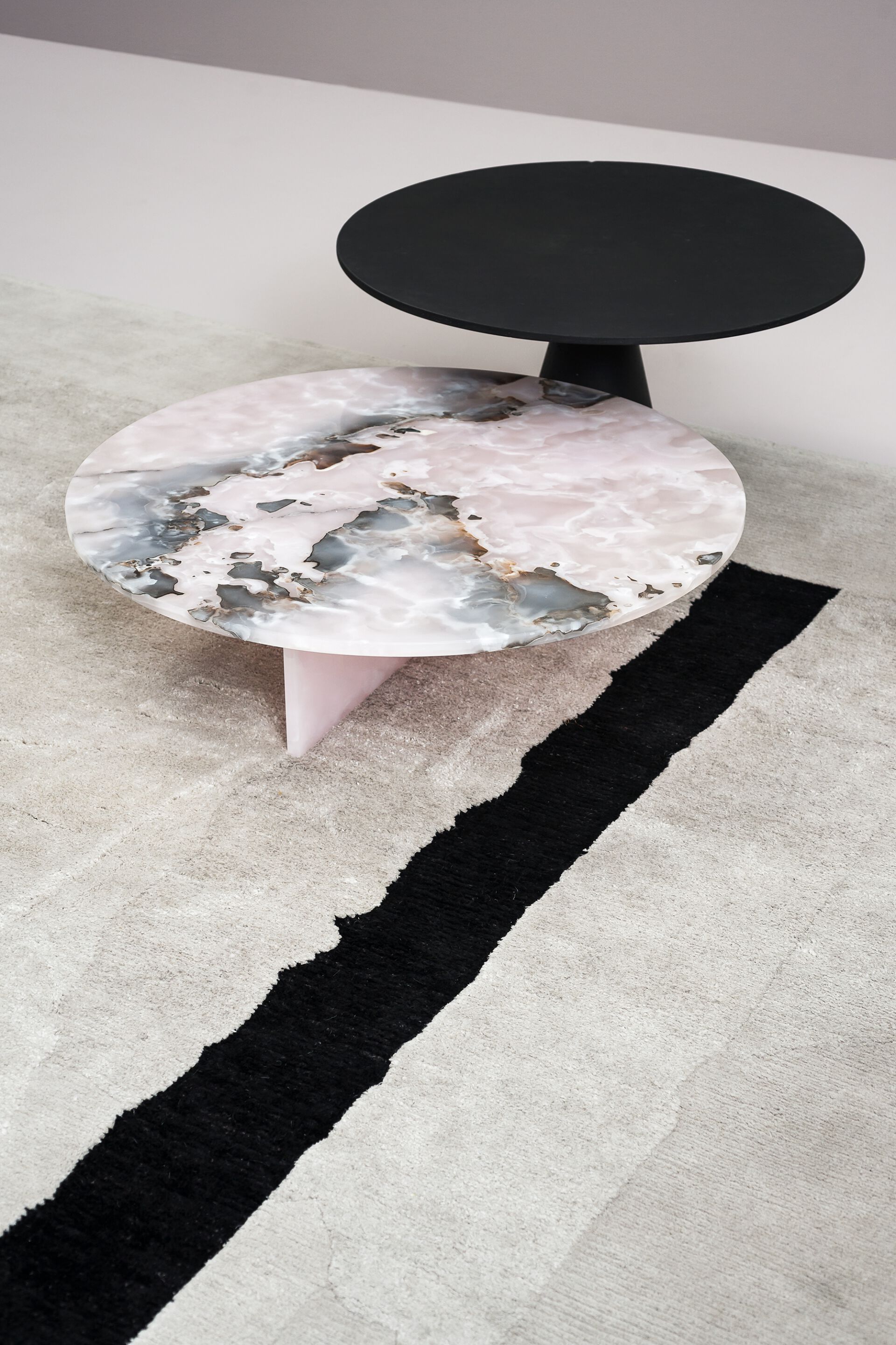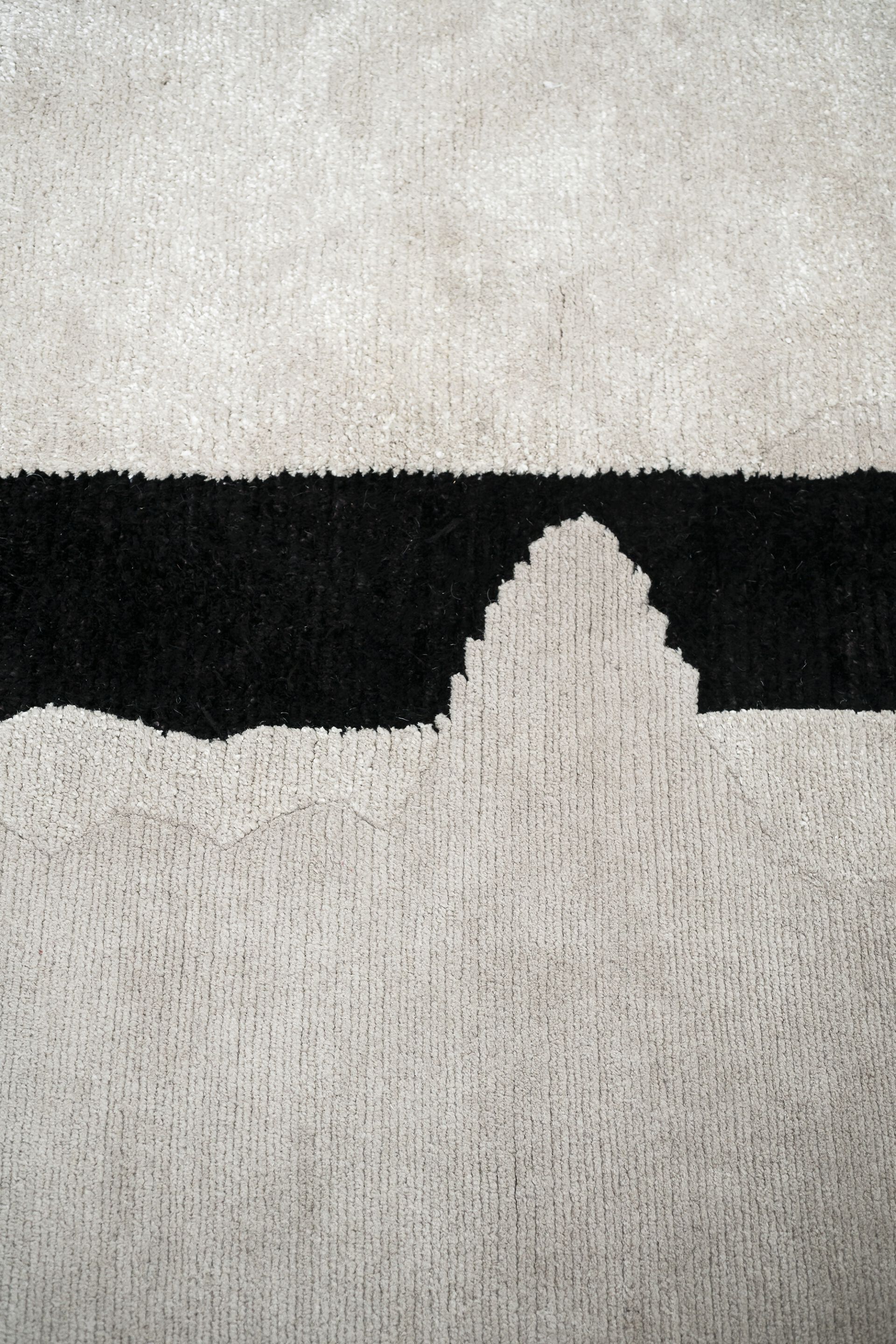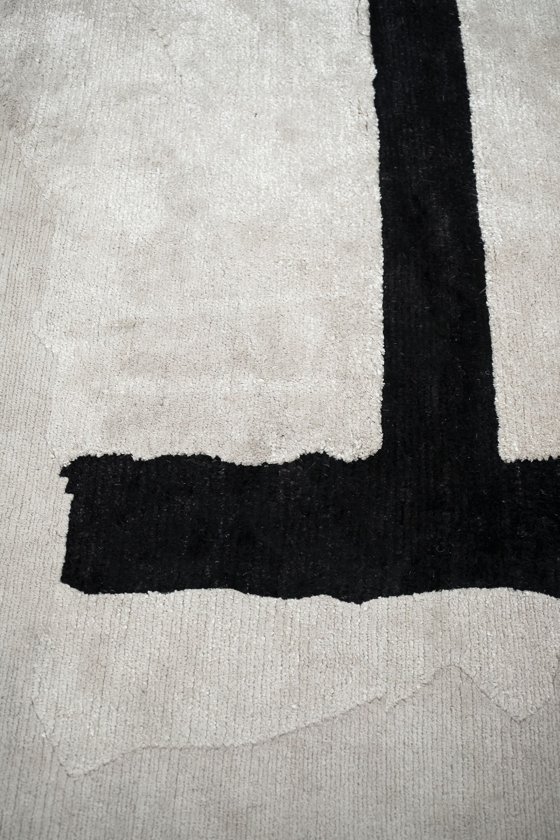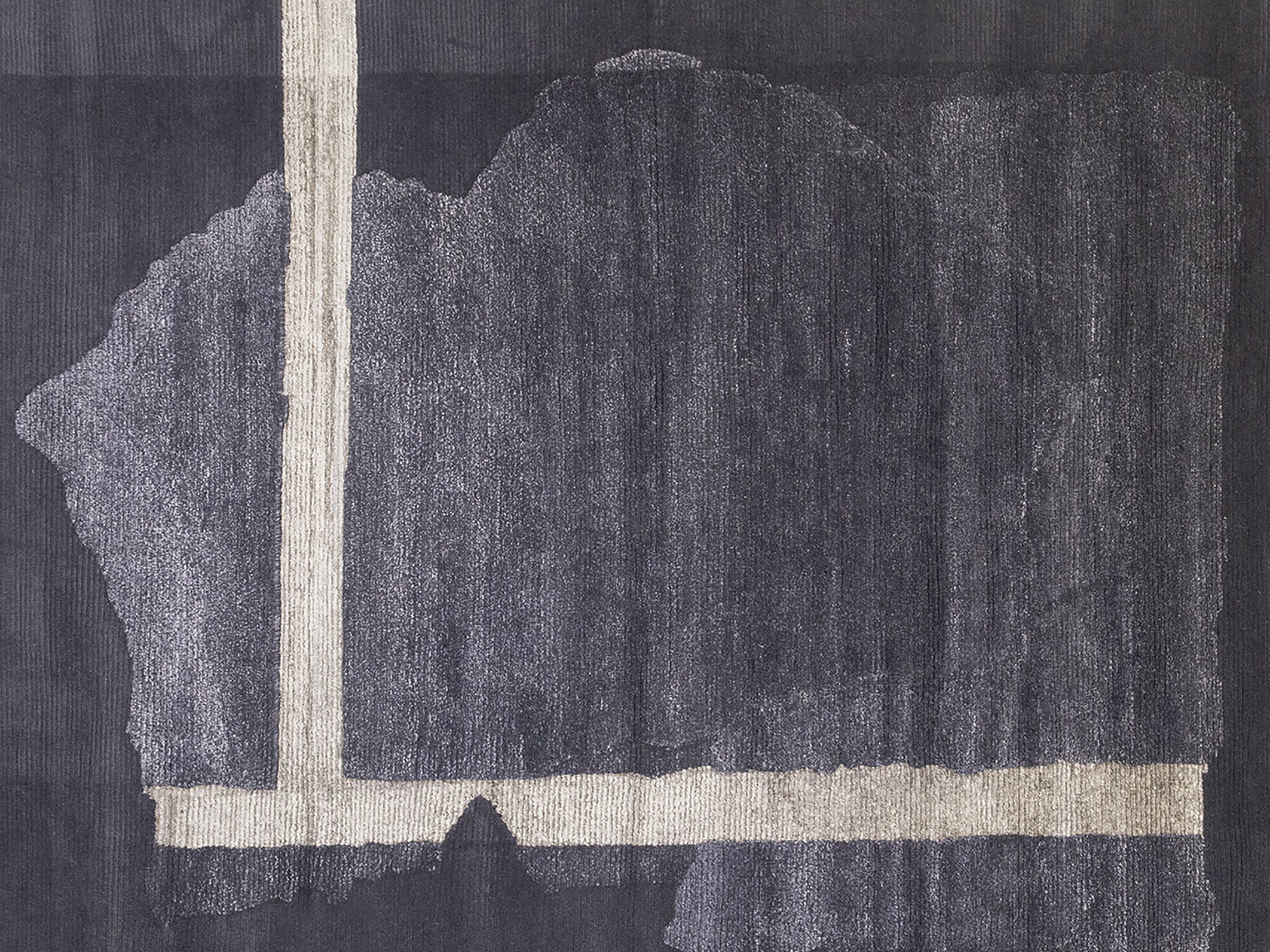 Основа — хлопок, ворс — вручную пряденая шерсть Тибета (60%) и шелк из индийских сари (30%). Техника — "cut pile", с многоуровневой отделкой.