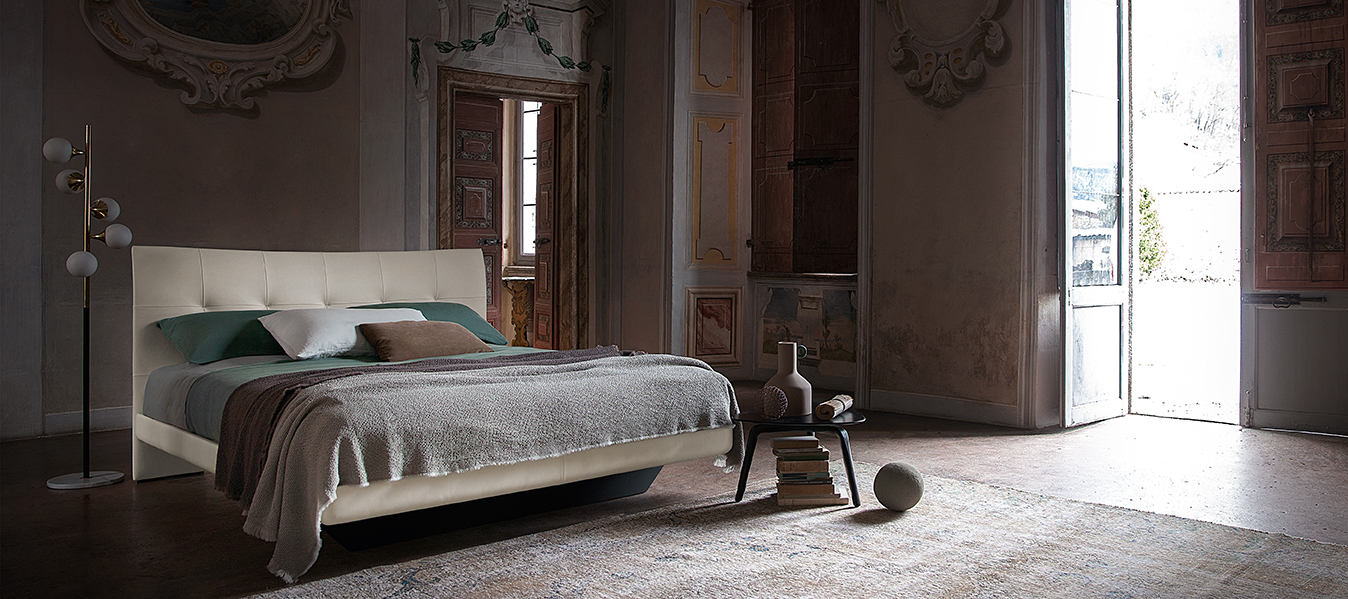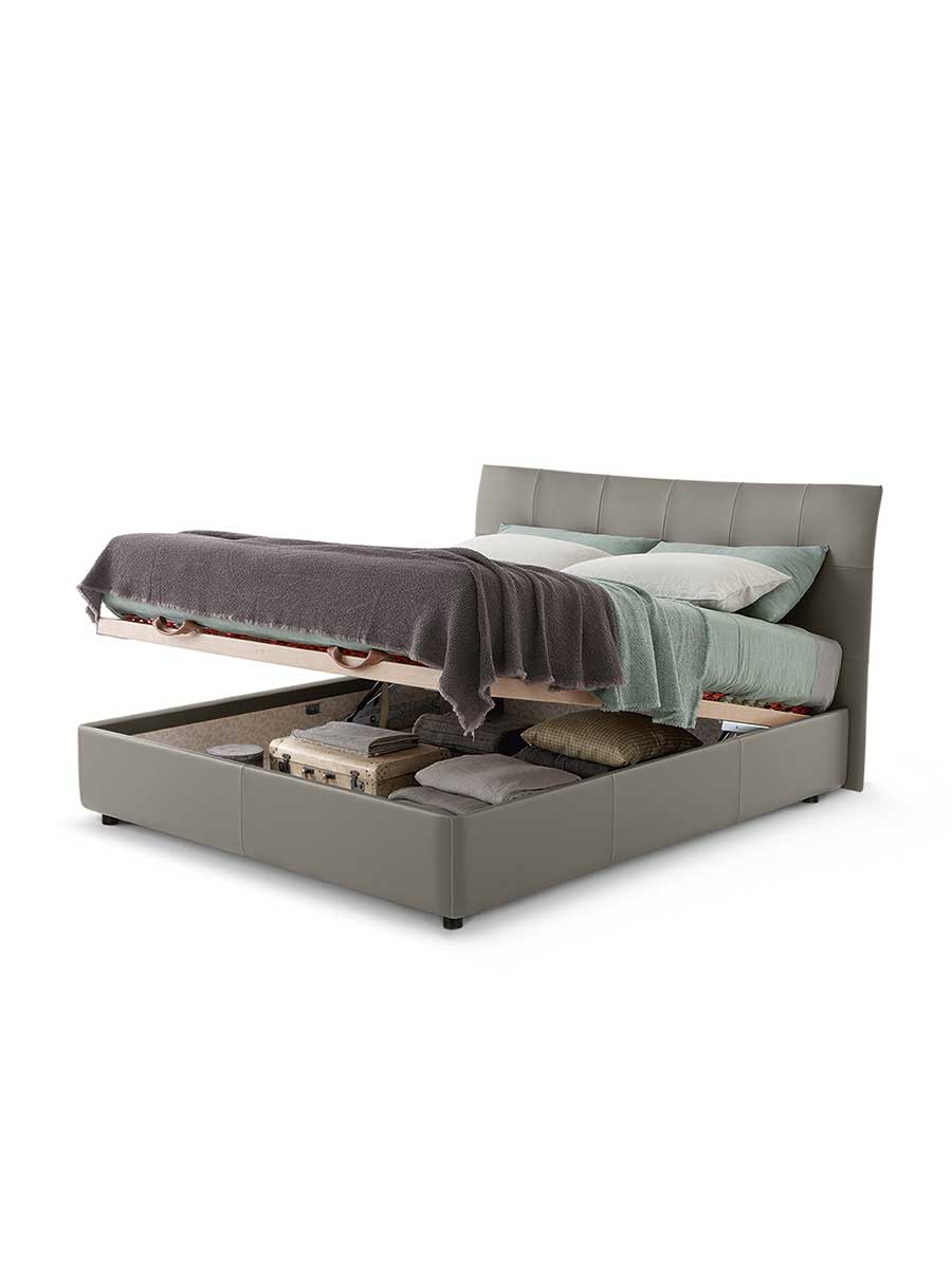 Металлическое основание имеет ту же форму, но полое внутри и доступно в чёрном, тёмно-сером и хромированном вариантах отделки. Кровать Aurora Due также может быть оснащена вместительным отсеком для хранения вещей, доступ к которому осуществляется спереди изножья благодаря устройству с газовыми пружинами.