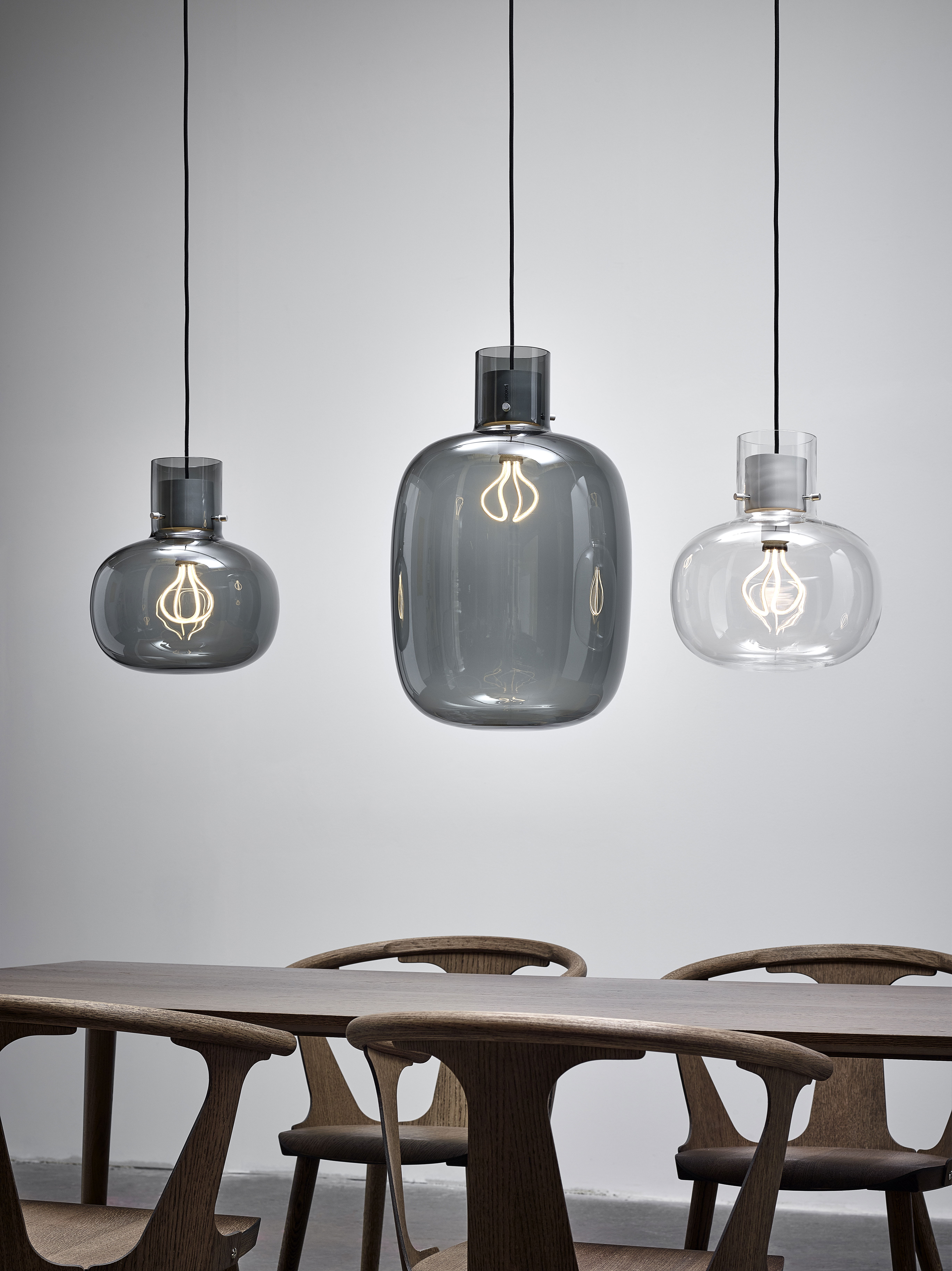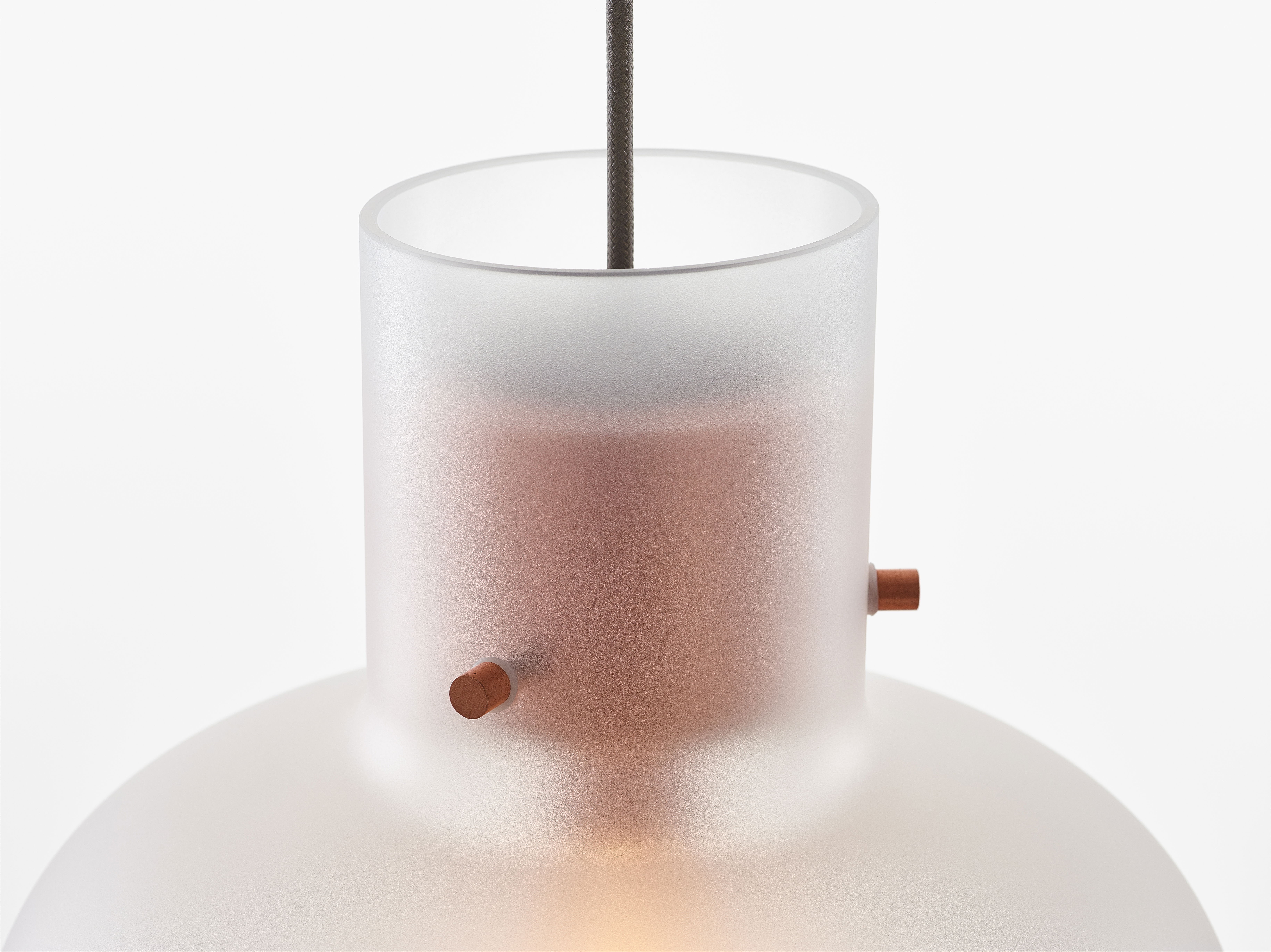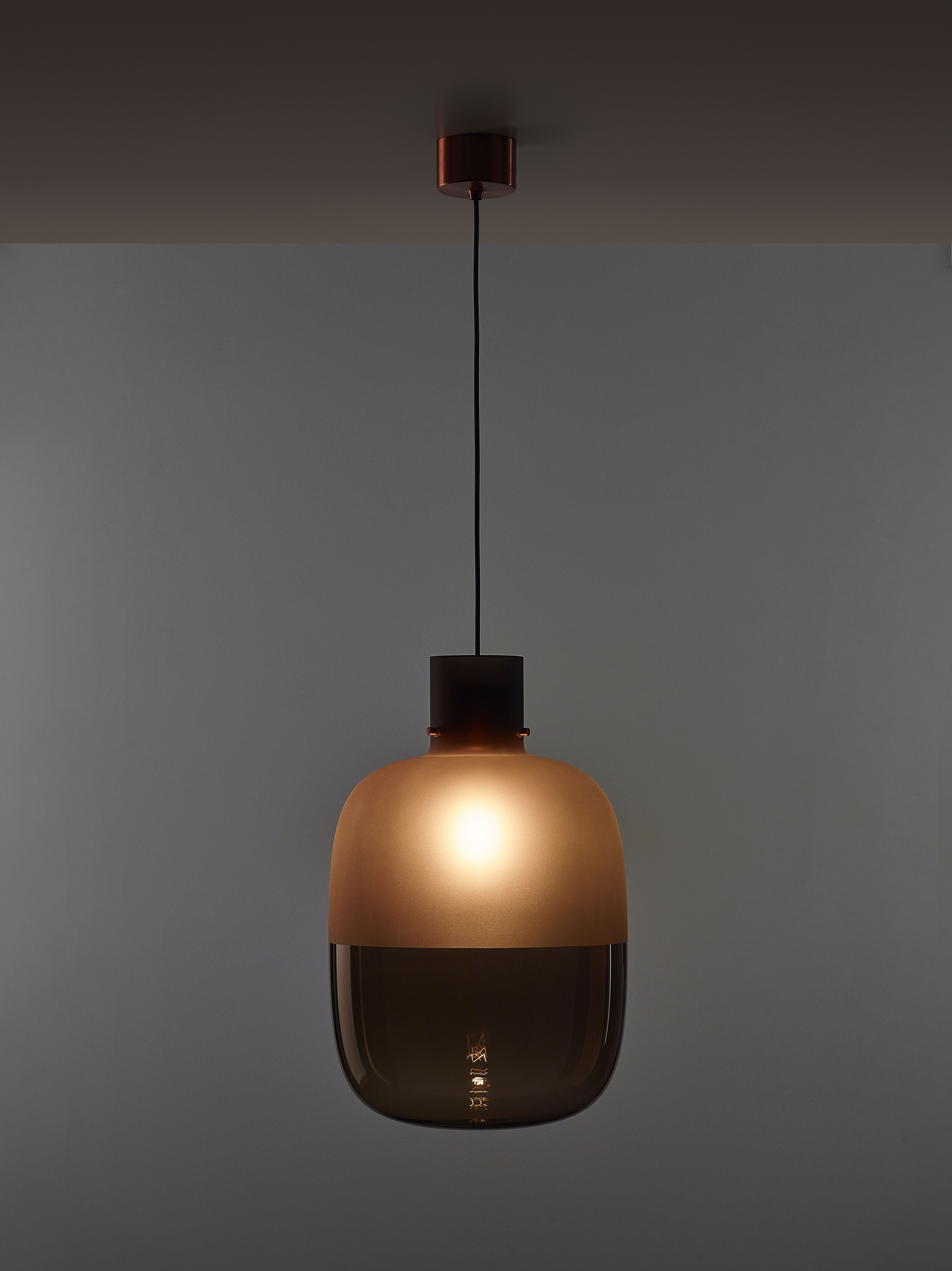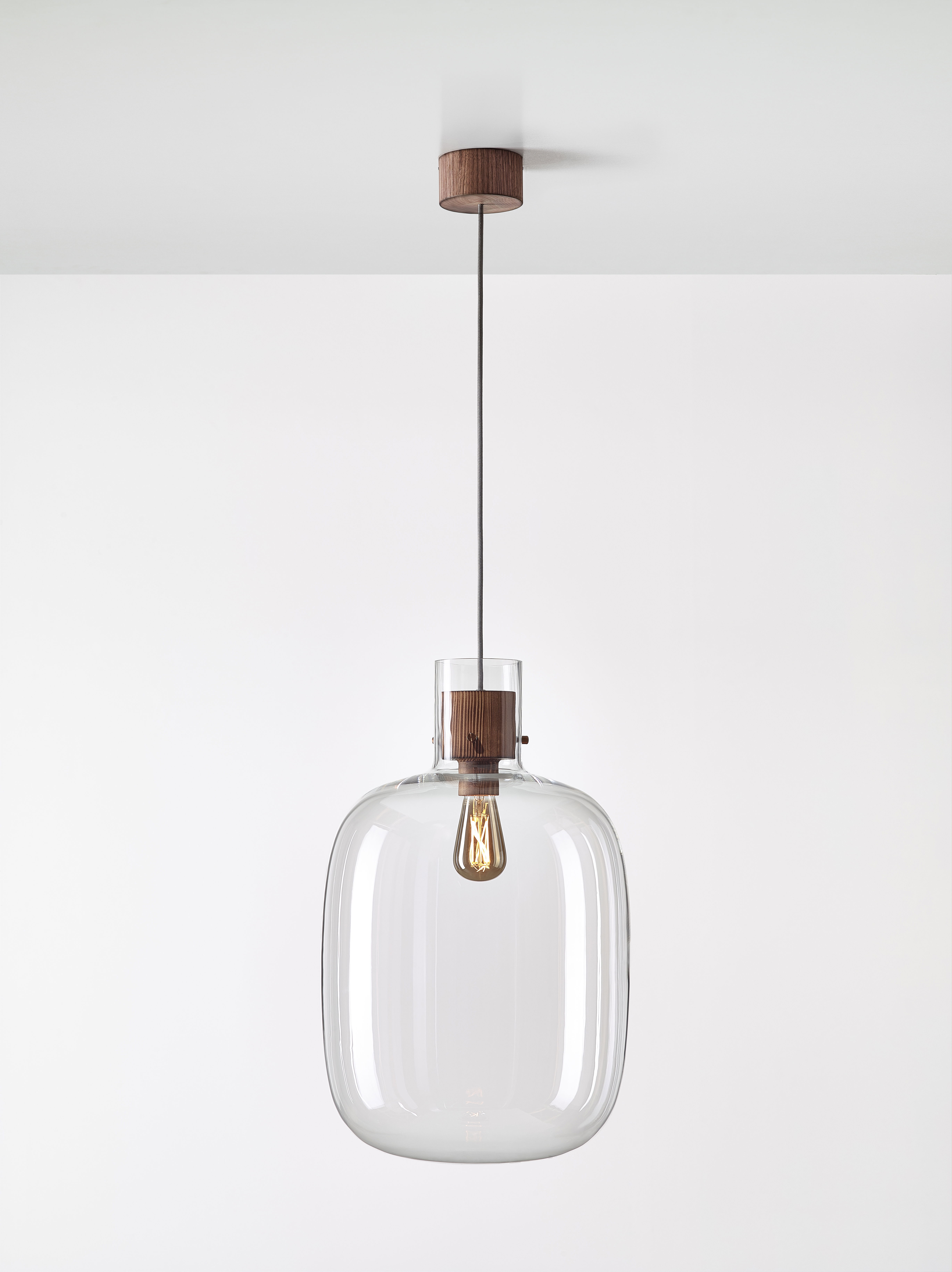 В японском языке слово «awa» означает пузырёк воздуха, заключённый в жидкость. Дизайн этого изысканного светильника вдохновлён идеей мягкого стекла, сохранившего форму после надувания. При взгляде снизу создаётся впечатление, что светящийся шар воздуха плавно парит в пространстве. Особенность конструкции заключается в том, что деревянные и металлические элементы кажутся выполненными из стекла, словно пробки, удерживающие воздух внутри. Недавно в коллекцию была добавлена новая версия с матовым стеклом в верхней части светильника.