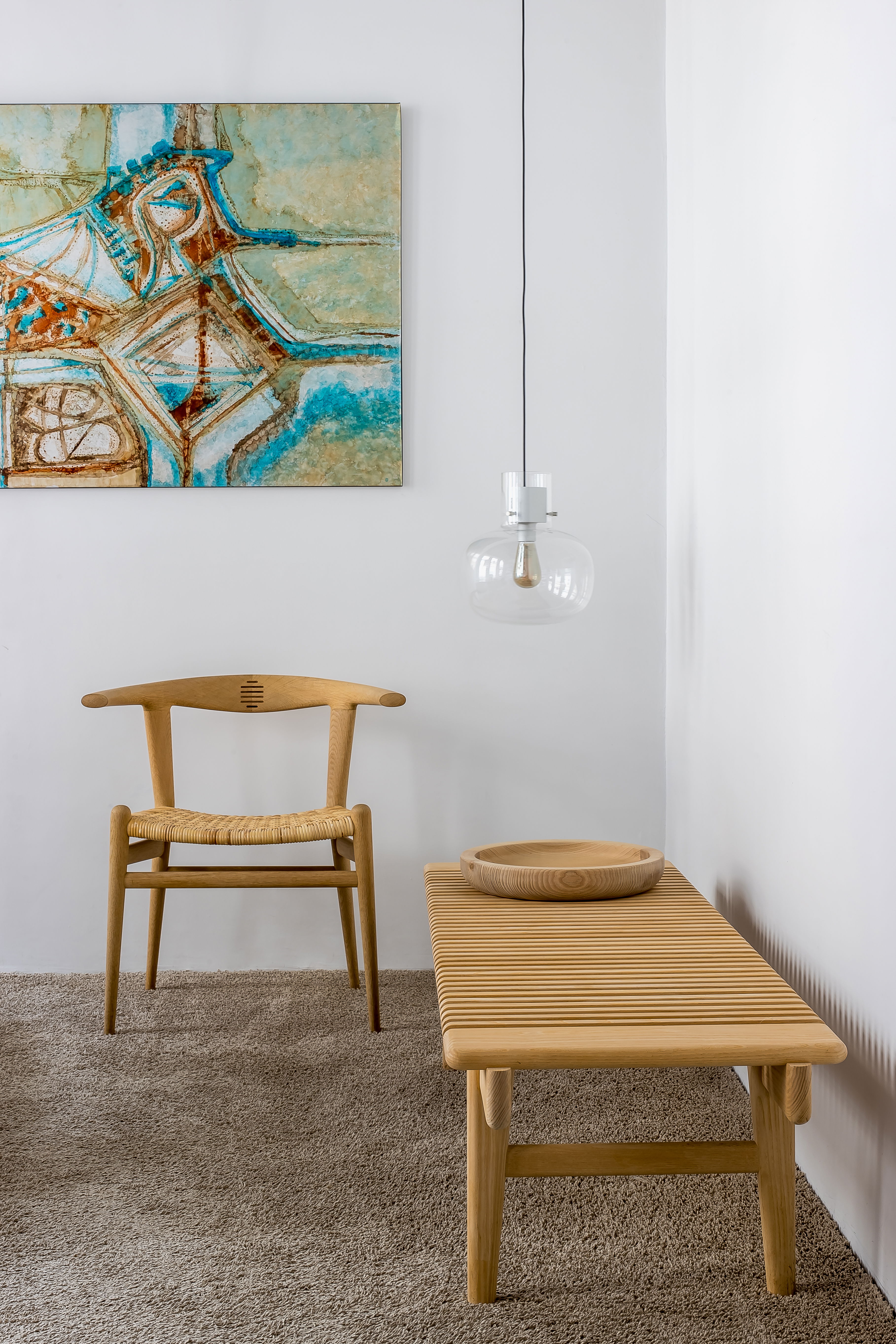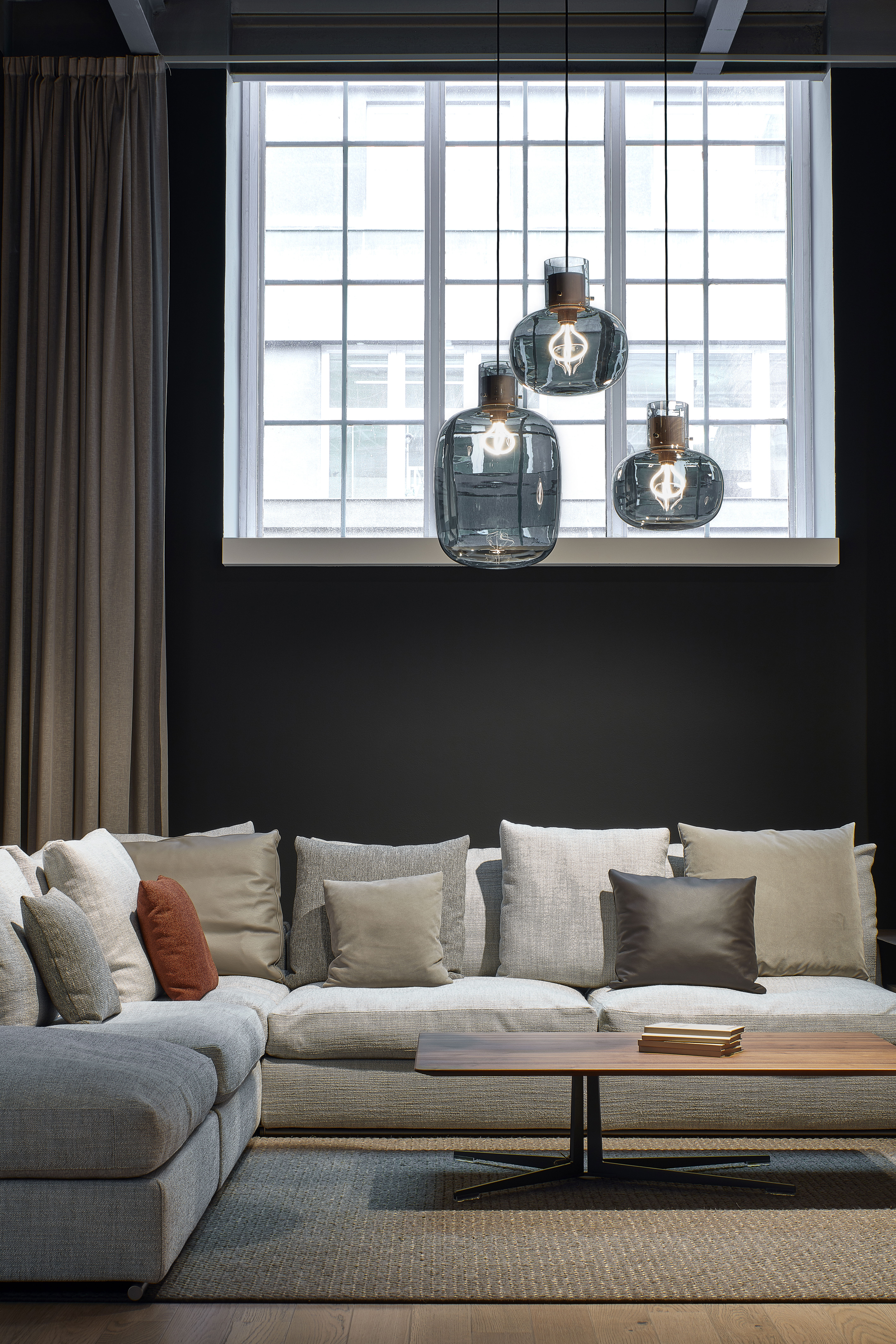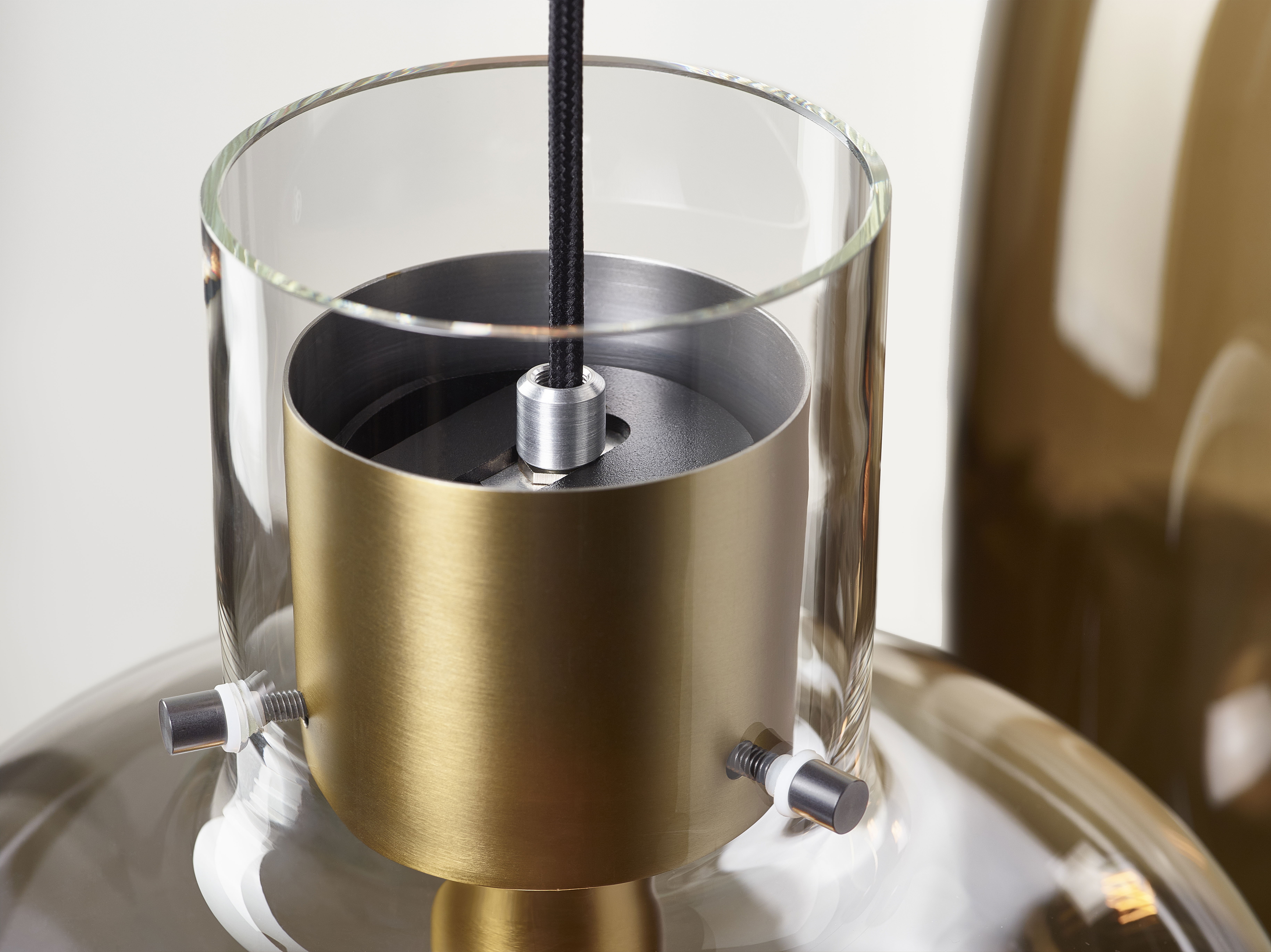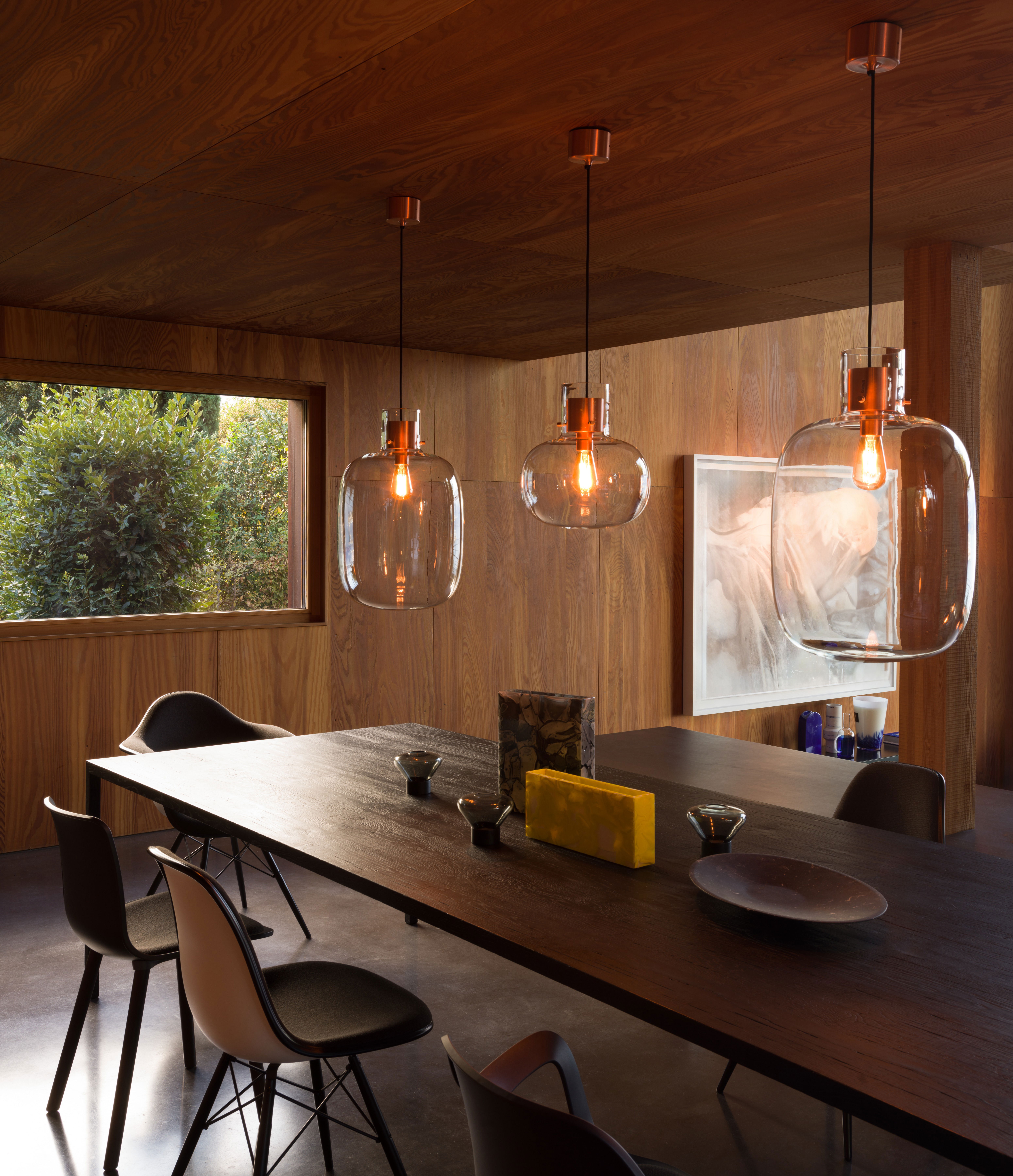 В японском языке слово «awa» означает пузырёк воздуха, заключённый в жидкость. Дизайн этого изысканного светильника вдохновлён идеей мягкого стекла, сохранившего форму после надувания. При взгляде снизу создаётся впечатление, что светящийся шар воздуха плавно парит в пространстве. Особенность конструкции заключается в том, что деревянные и металлические элементы кажутся выполненными из стекла, словно пробки, удерживающие воздух внутри. Недавно в коллекцию была добавлена новая версия с матовым стеклом в верхней части светильника.