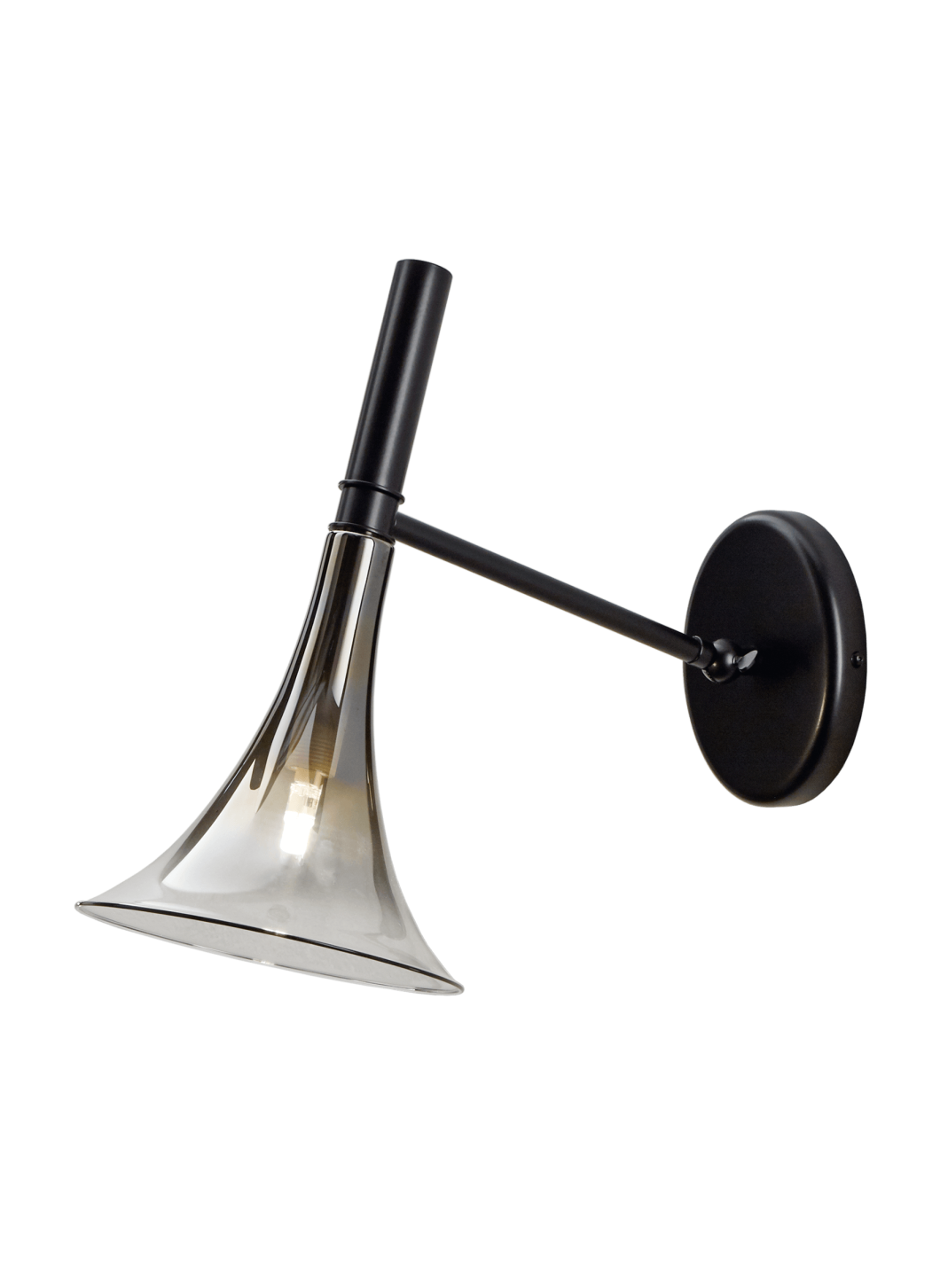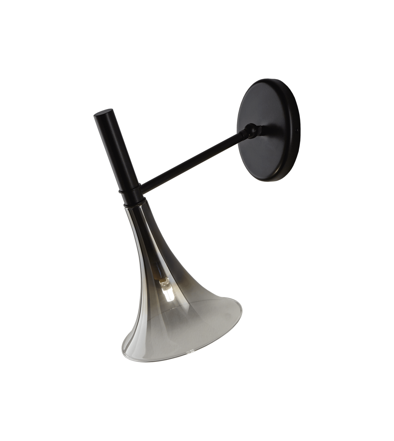 Настенный светильник со стеклом в титановом, золотом или белом цвете. Металлическая конструкция сочетается с цветом стекла.