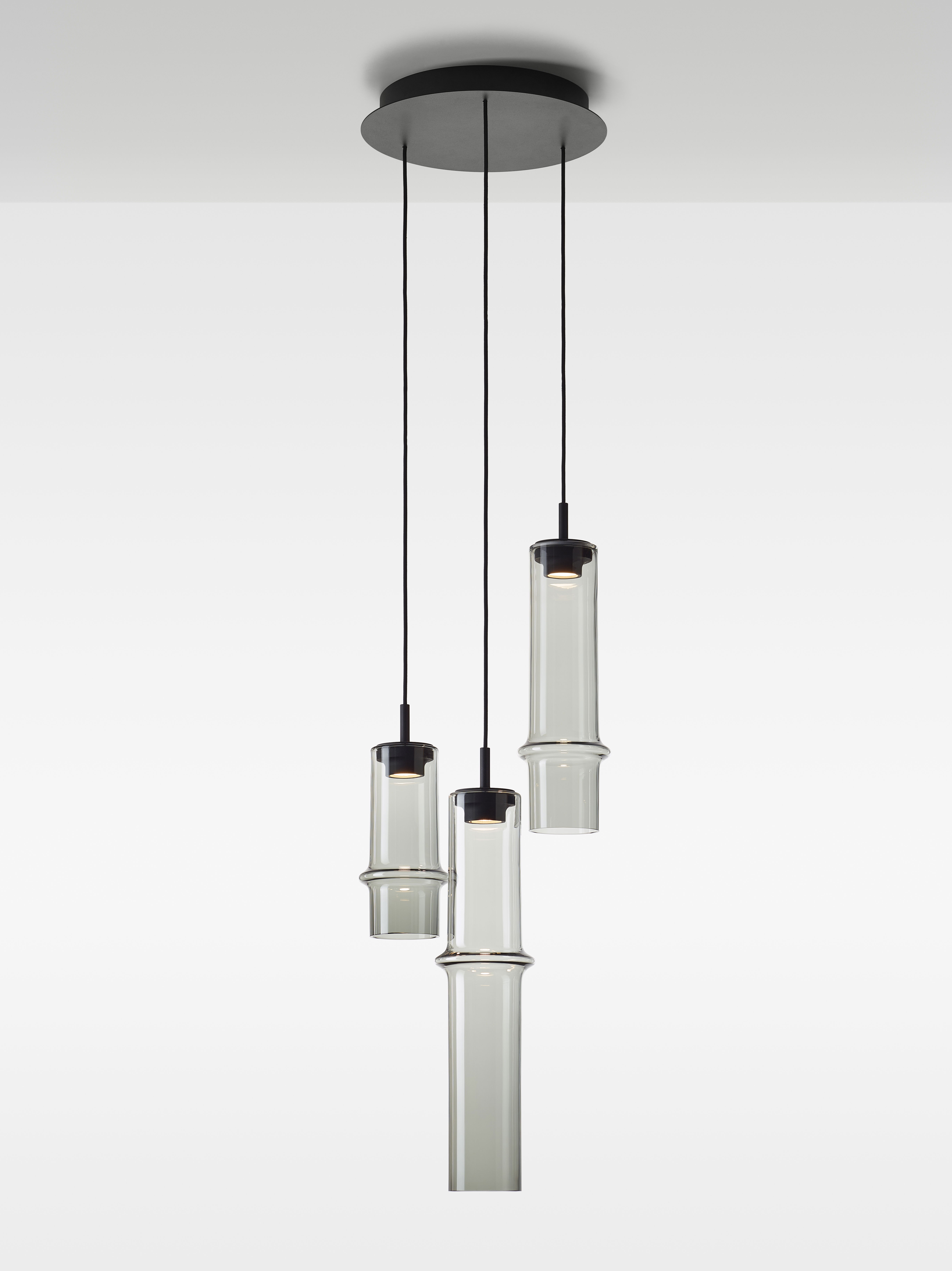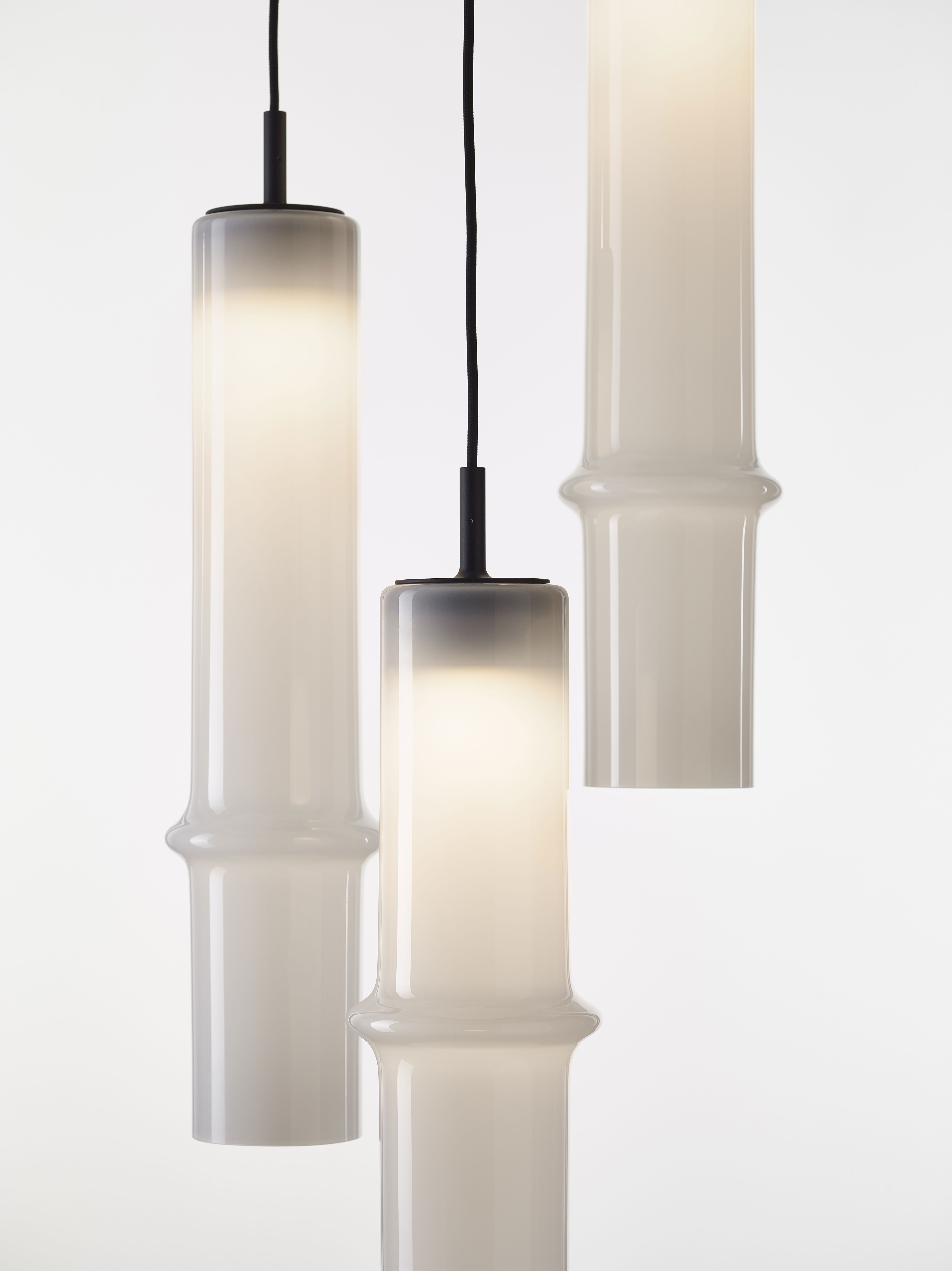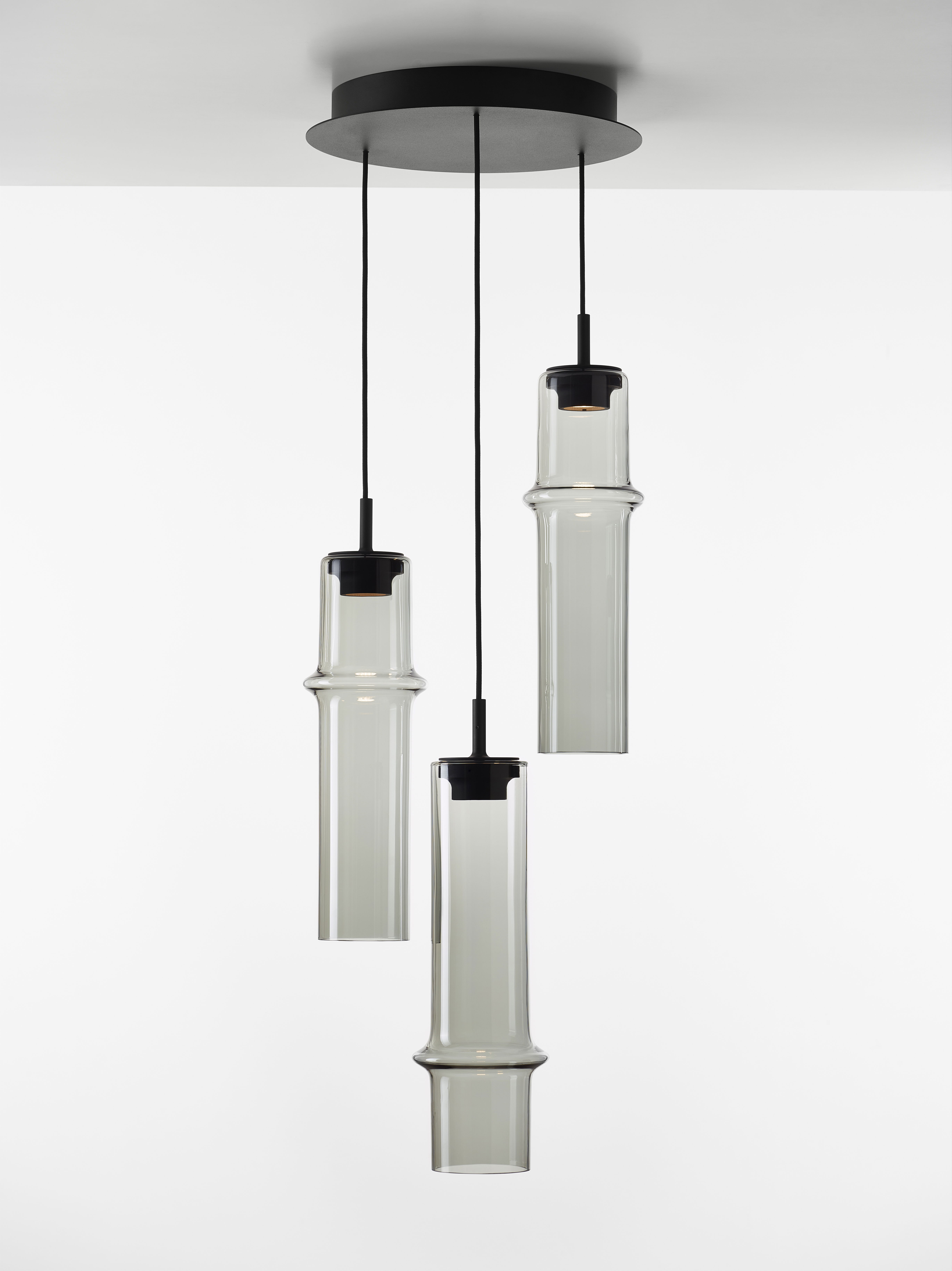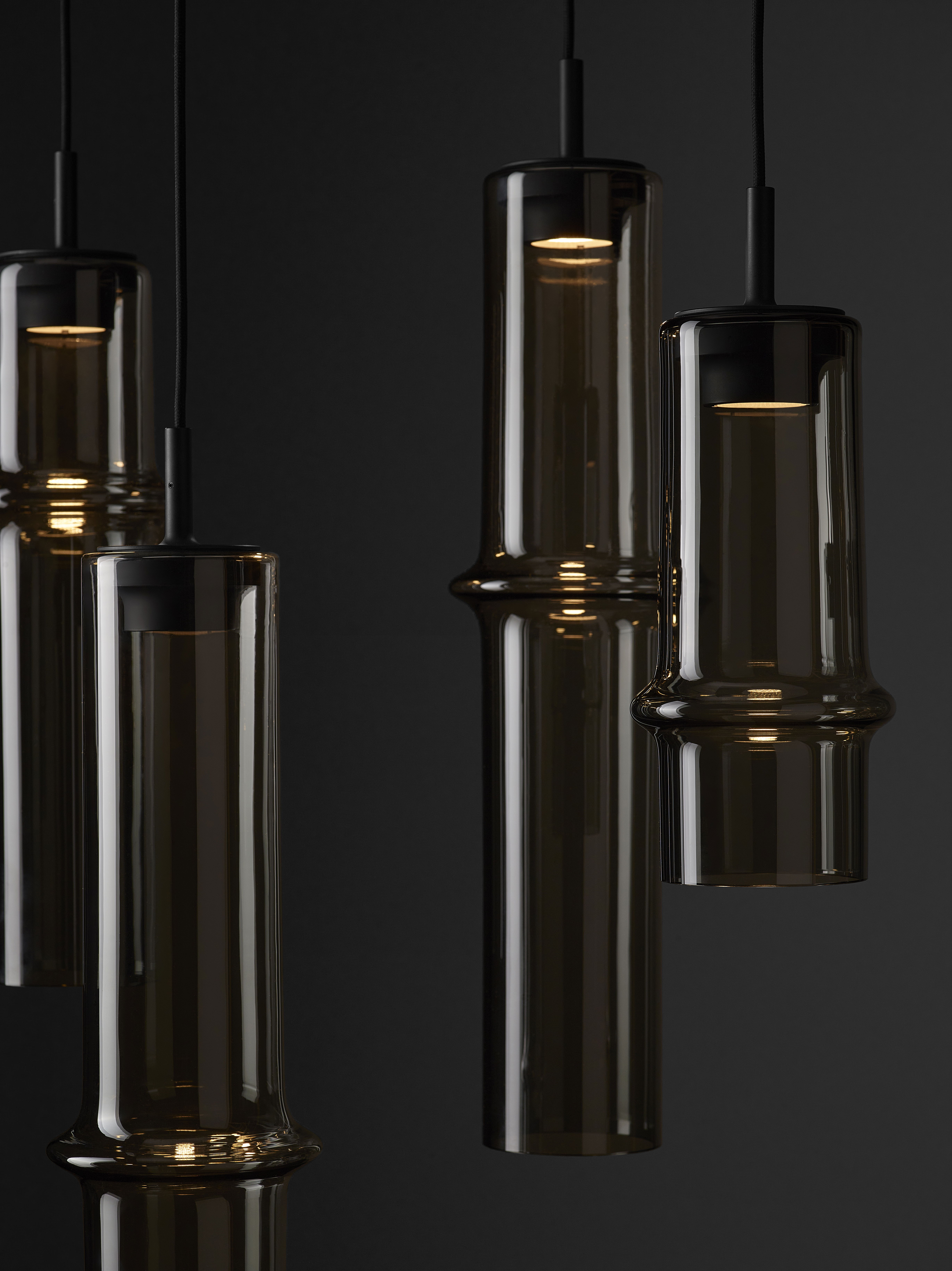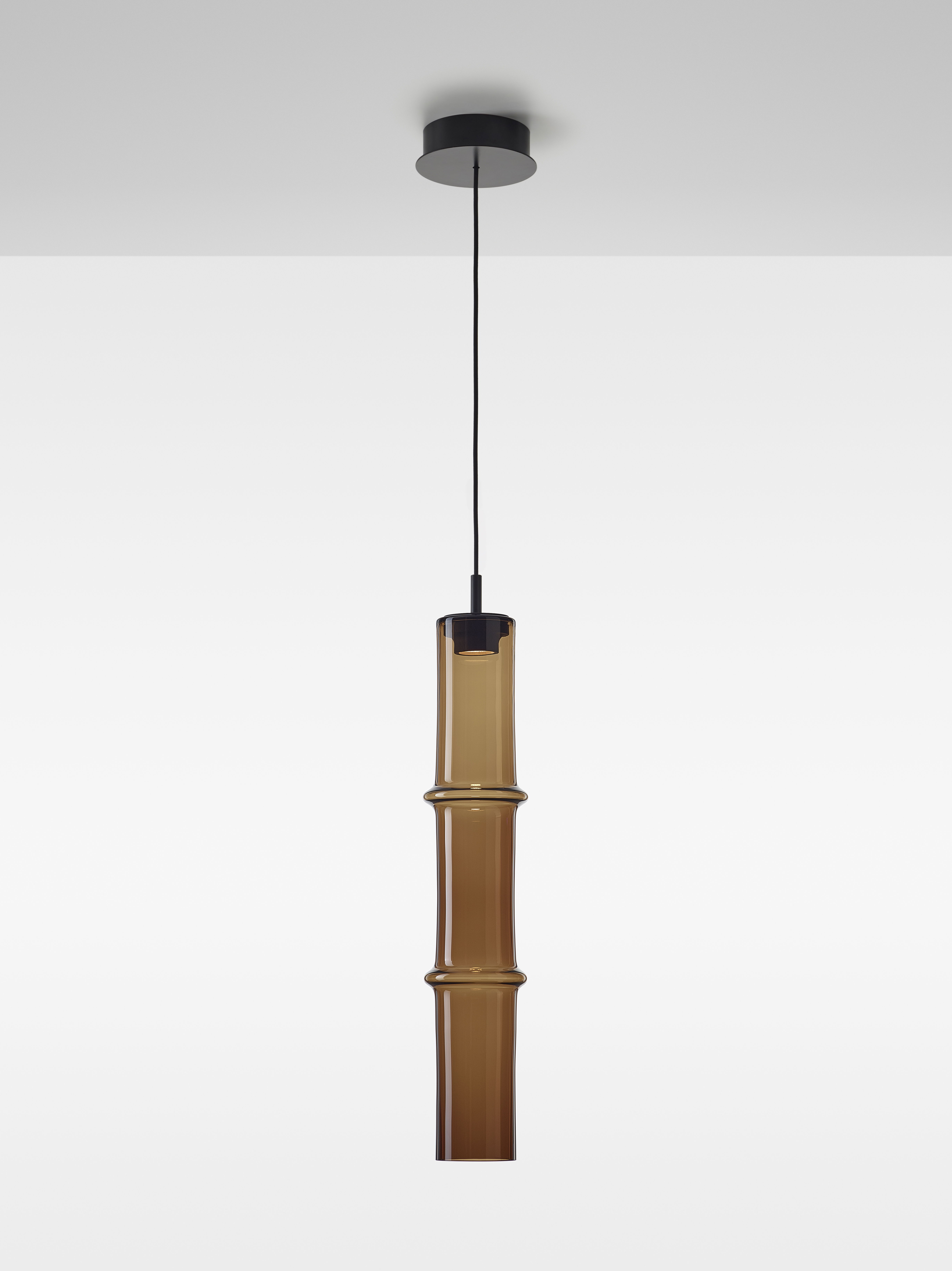Коллекция Bamboo Forest вдохновлена вертикальными силуэтами бамбуковых зарослей. Светильники, выполненные вручную из стекла, повторяют форму стебля бамбука с характерным узловым кольцом, где материал утолщается, создавая мягкий акцент и нежные тени. Различные размеры и расположение «узлов» на стеблях делают коллекцию узнаваемой с первого взгляда, а групповые композиции наполняют интерьер атмосферой умиротворения, напоминающей прогулку по бамбуковому лесу.