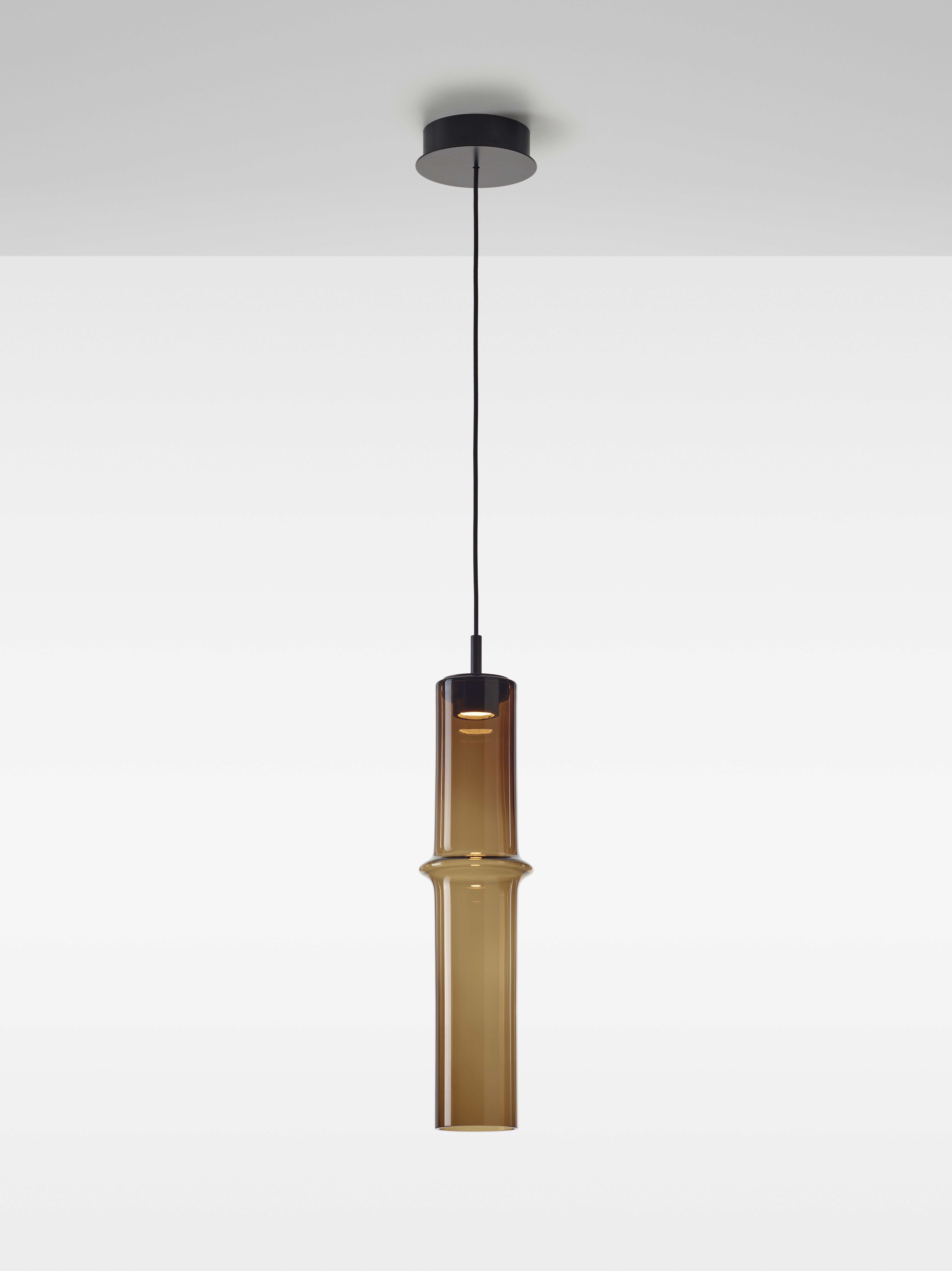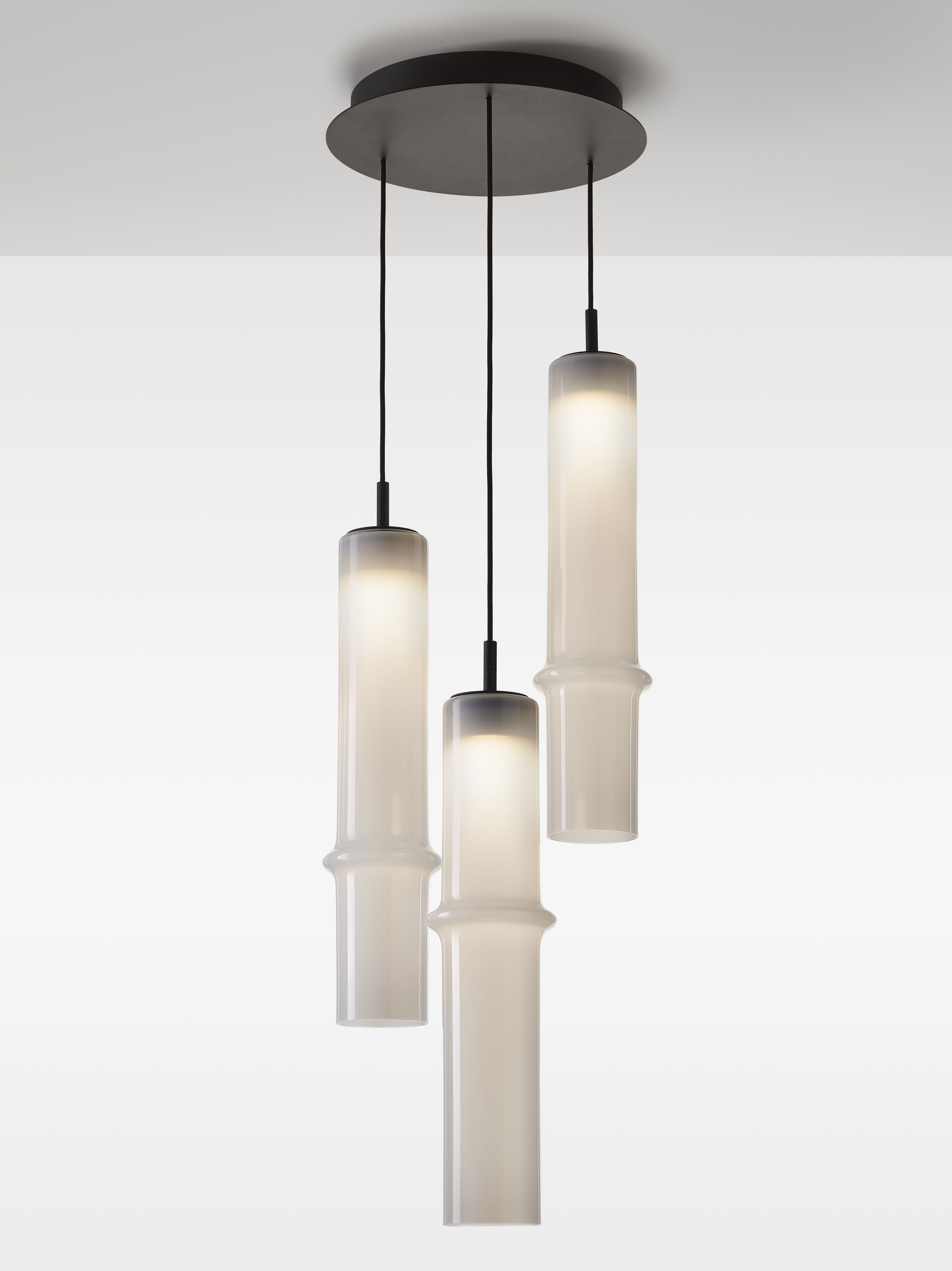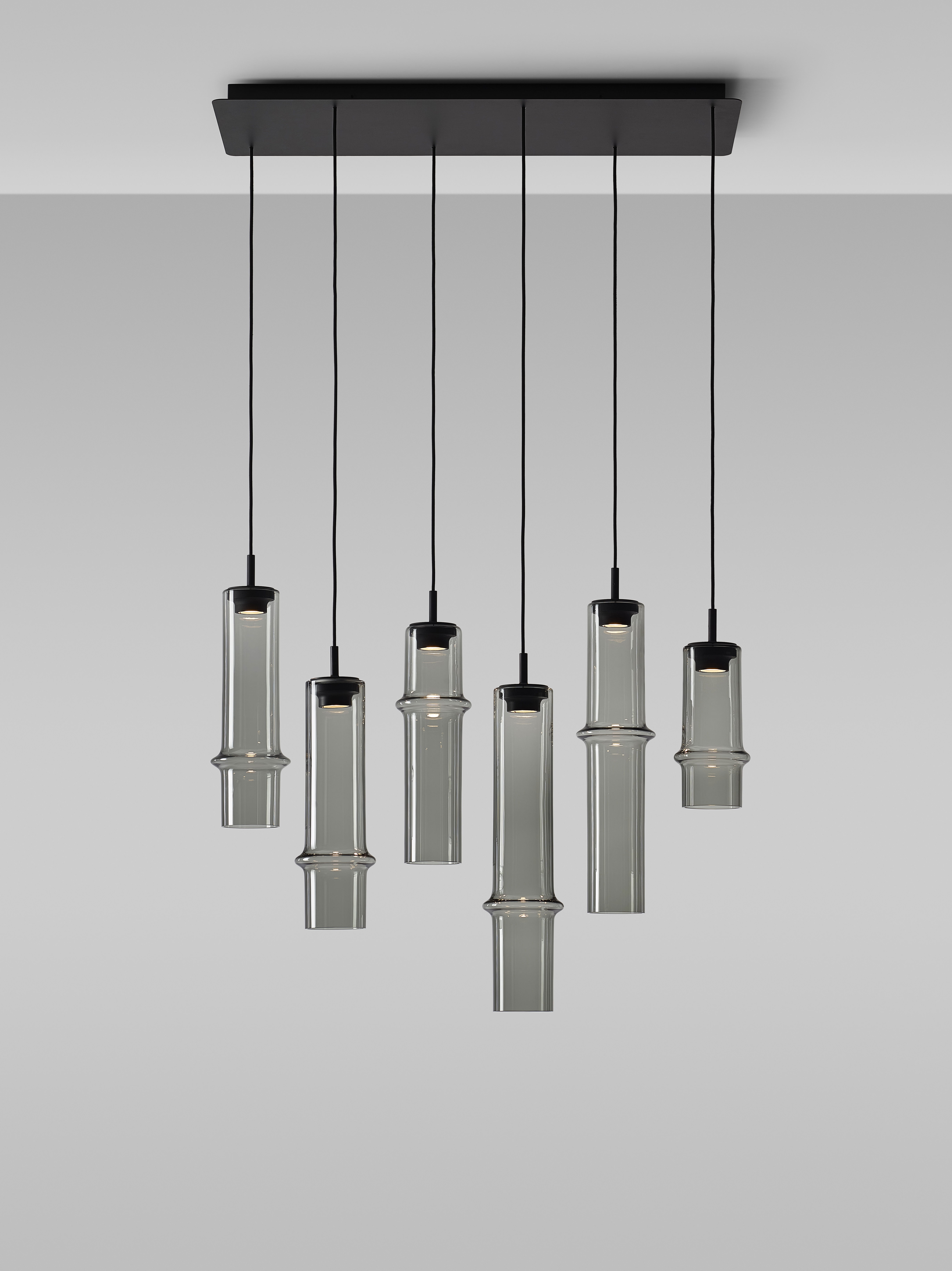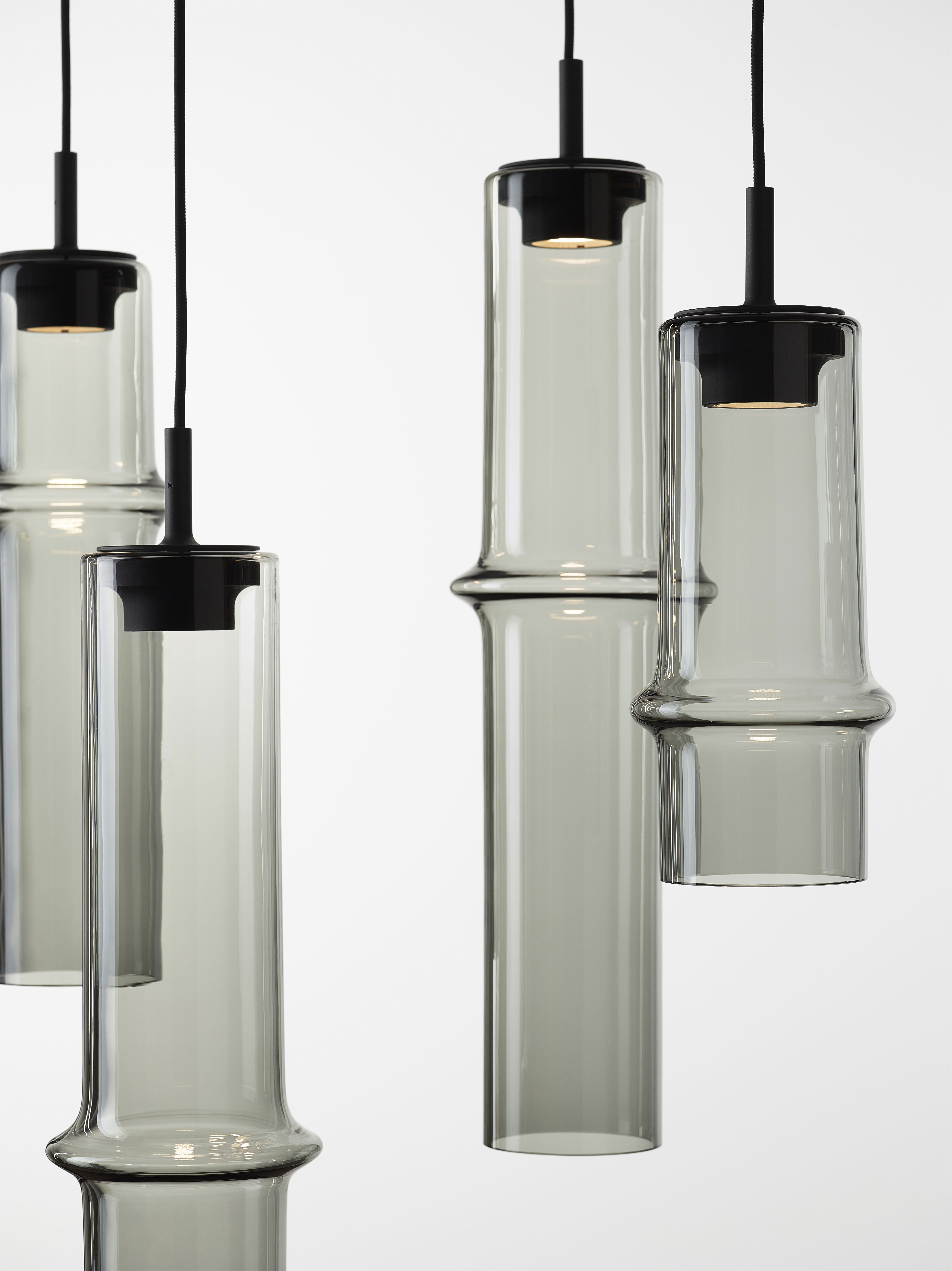 Коллекция Bamboo Forest вдохновлена вертикальными силуэтами бамбуковых зарослей. Светильники, выполненные вручную из стекла, повторяют форму стебля бамбука с характерным узловым кольцом, где материал утолщается, создавая мягкий акцент и нежные тени. Различные размеры и расположение «узлов» на стеблях делают коллекцию узнаваемой с первого взгляда, а групповые композиции наполняют интерьер атмосферой умиротворения, напоминающей прогулку по бамбуковому лесу.
