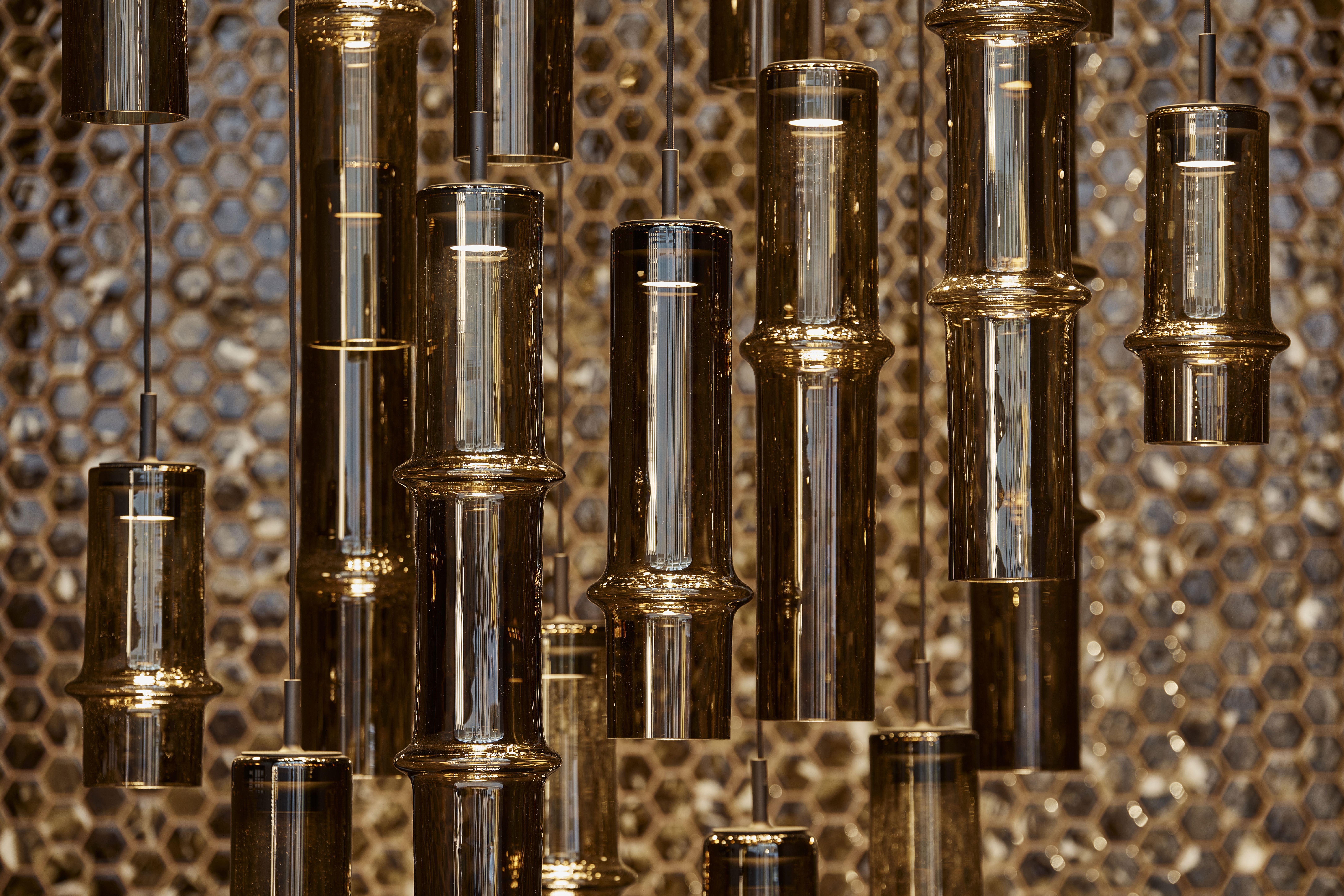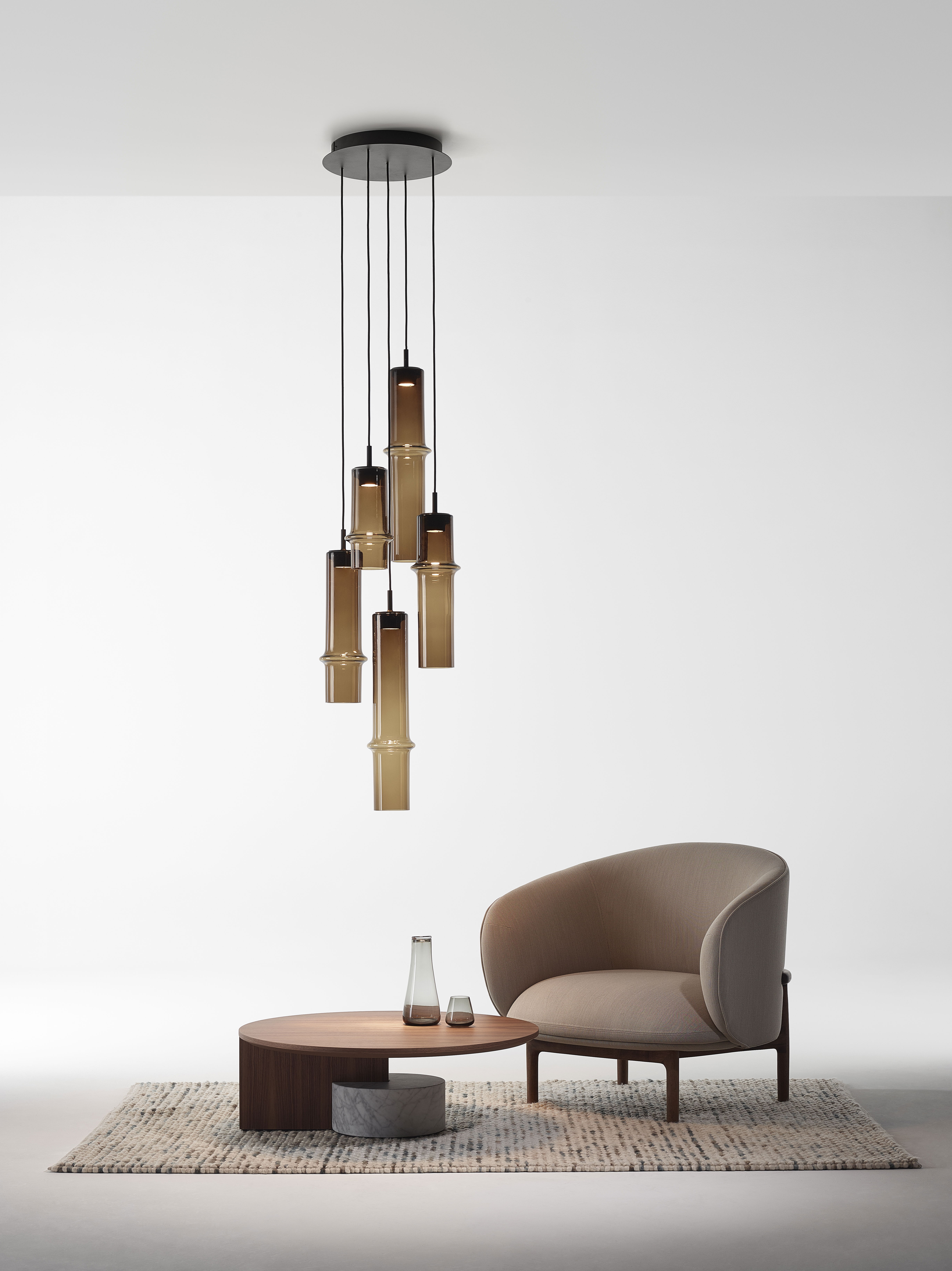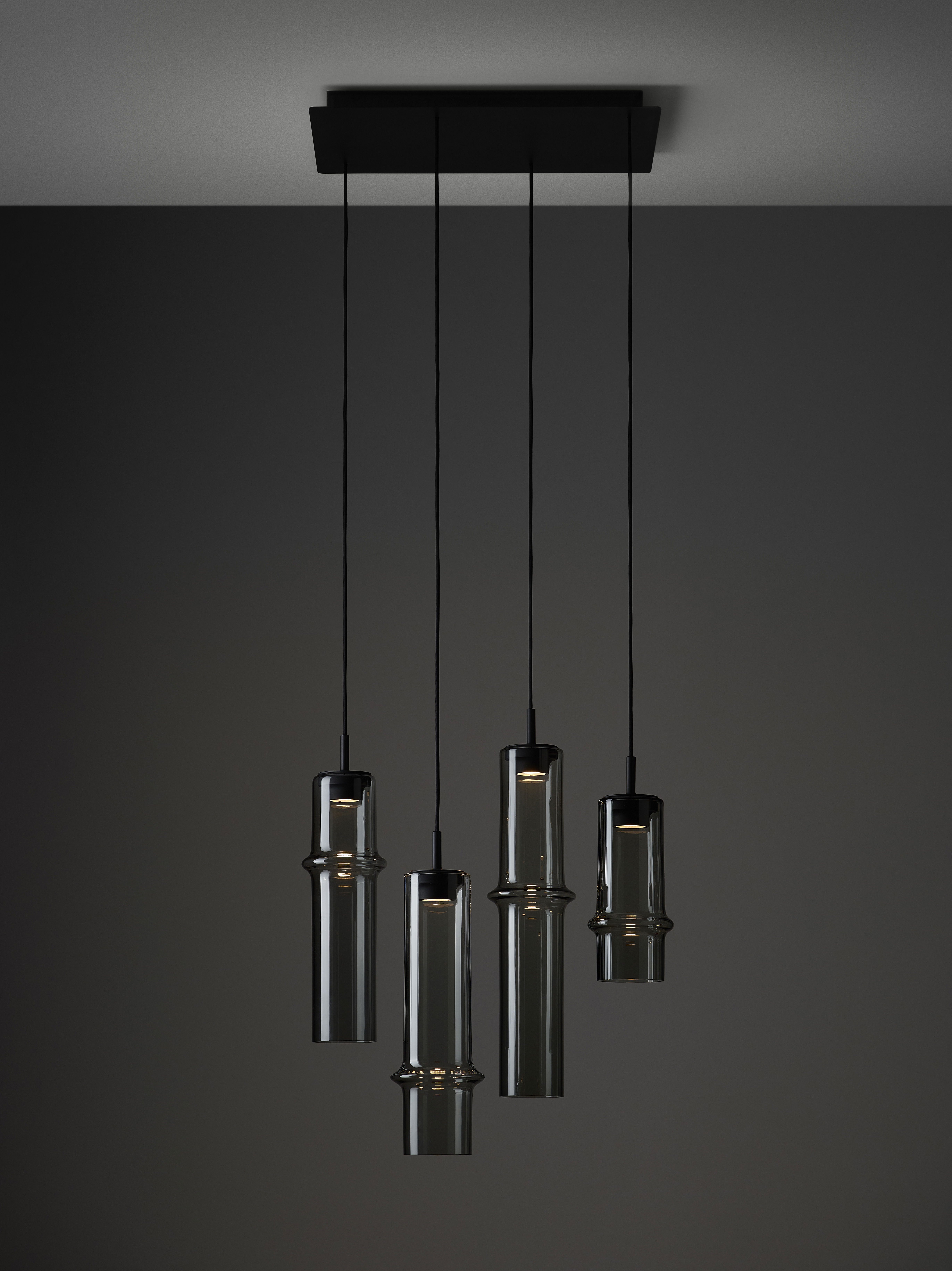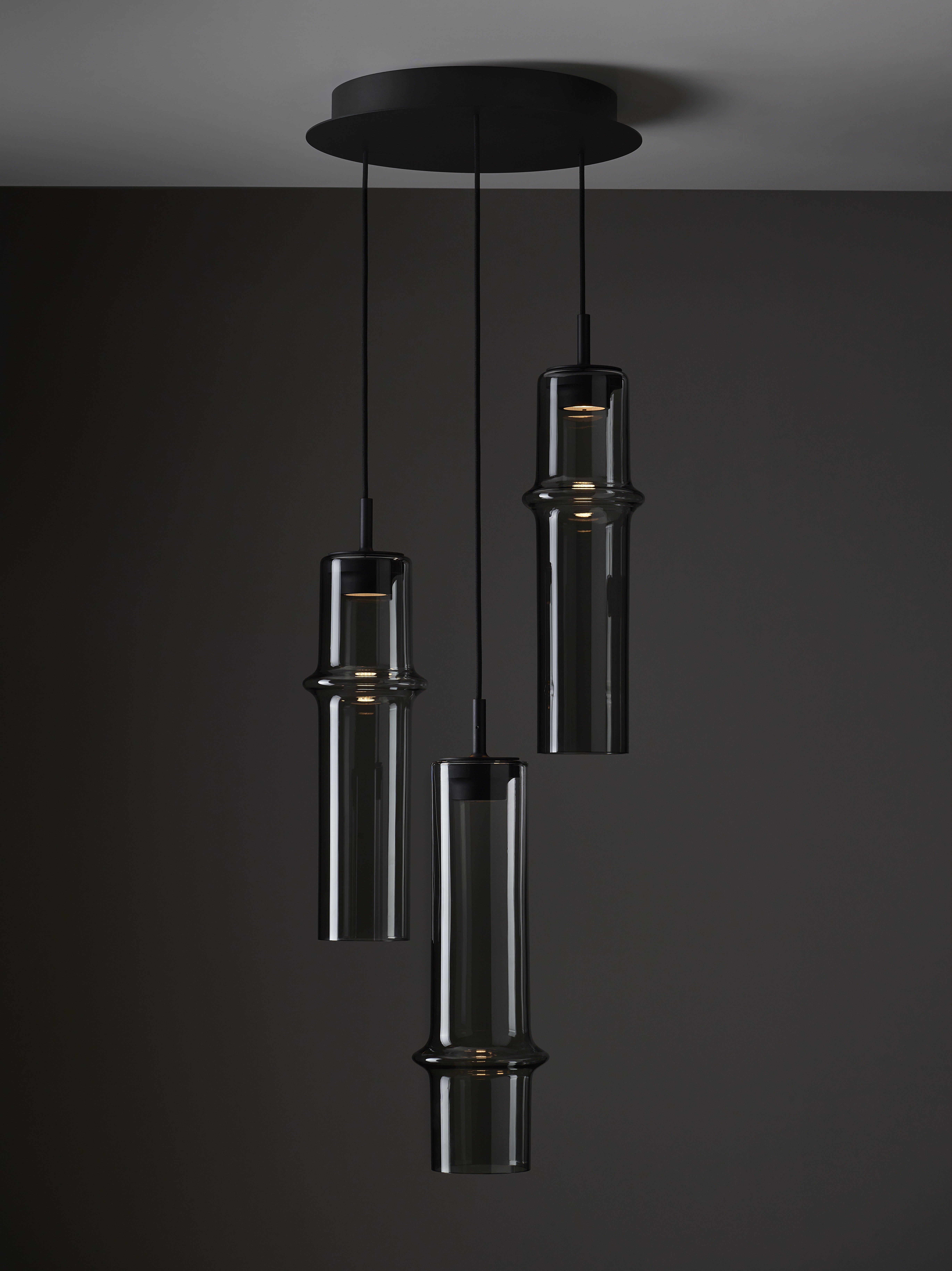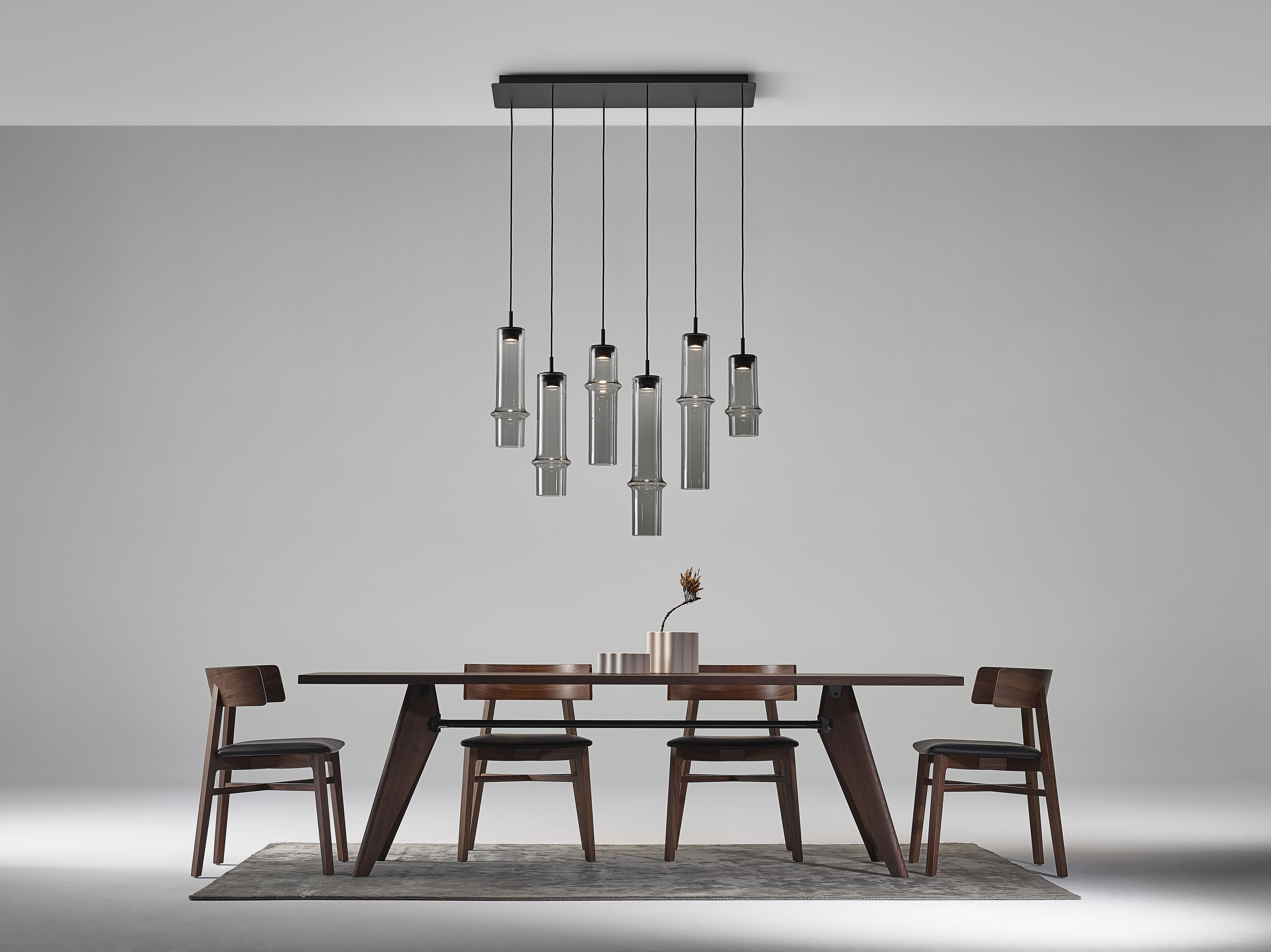 Коллекция Bamboo Forest вдохновлена вертикальными силуэтами бамбуковых зарослей. Светильники, выполненные вручную из стекла, повторяют форму стебля бамбука с характерным узловым кольцом, где материал утолщается, создавая мягкий акцент и нежные тени. Различные размеры и расположение «узлов» на стеблях делают коллекцию узнаваемой с первого взгляда, а групповые композиции наполняют интерьер атмосферой умиротворения, напоминающей прогулку по бамбуковому лесу.