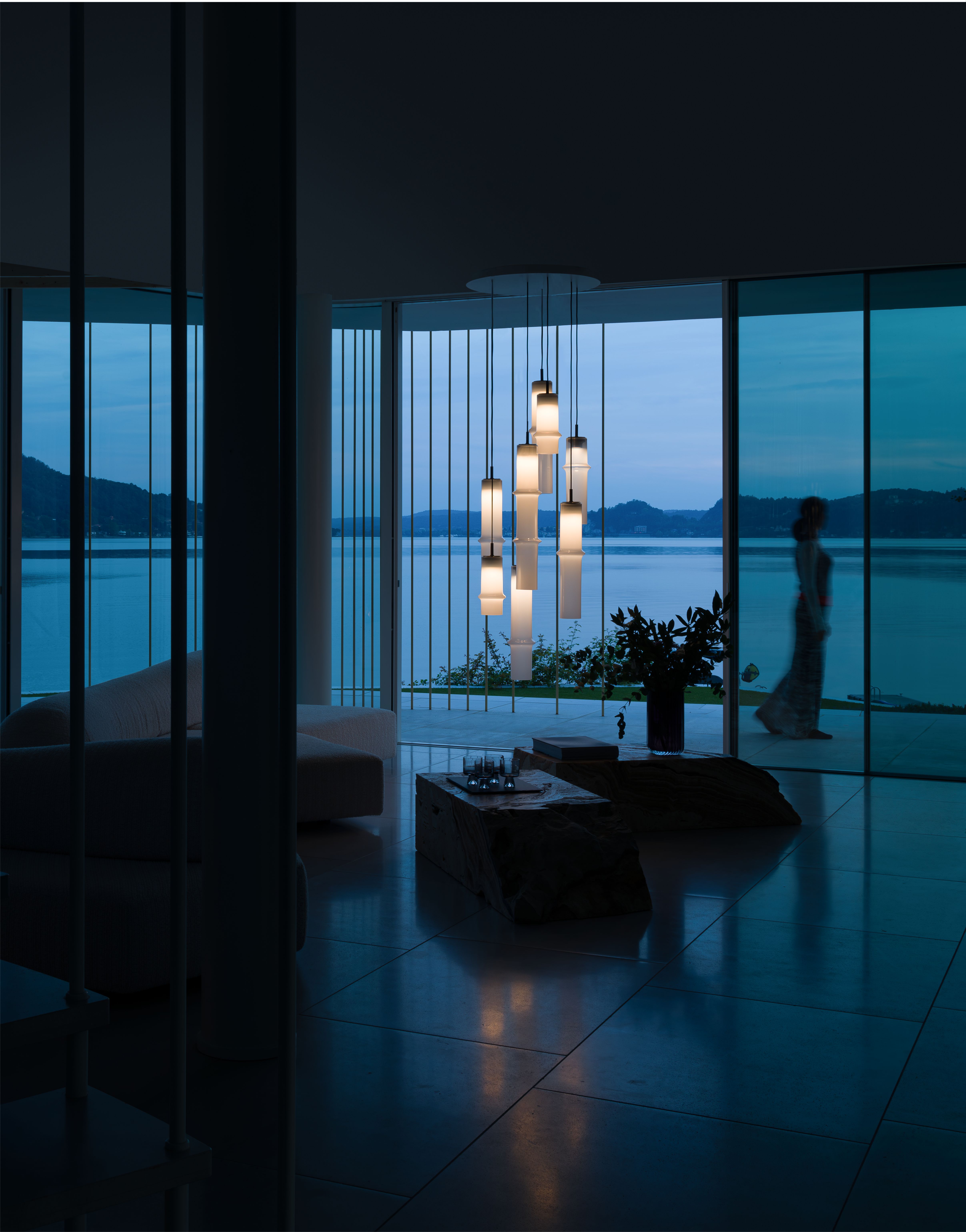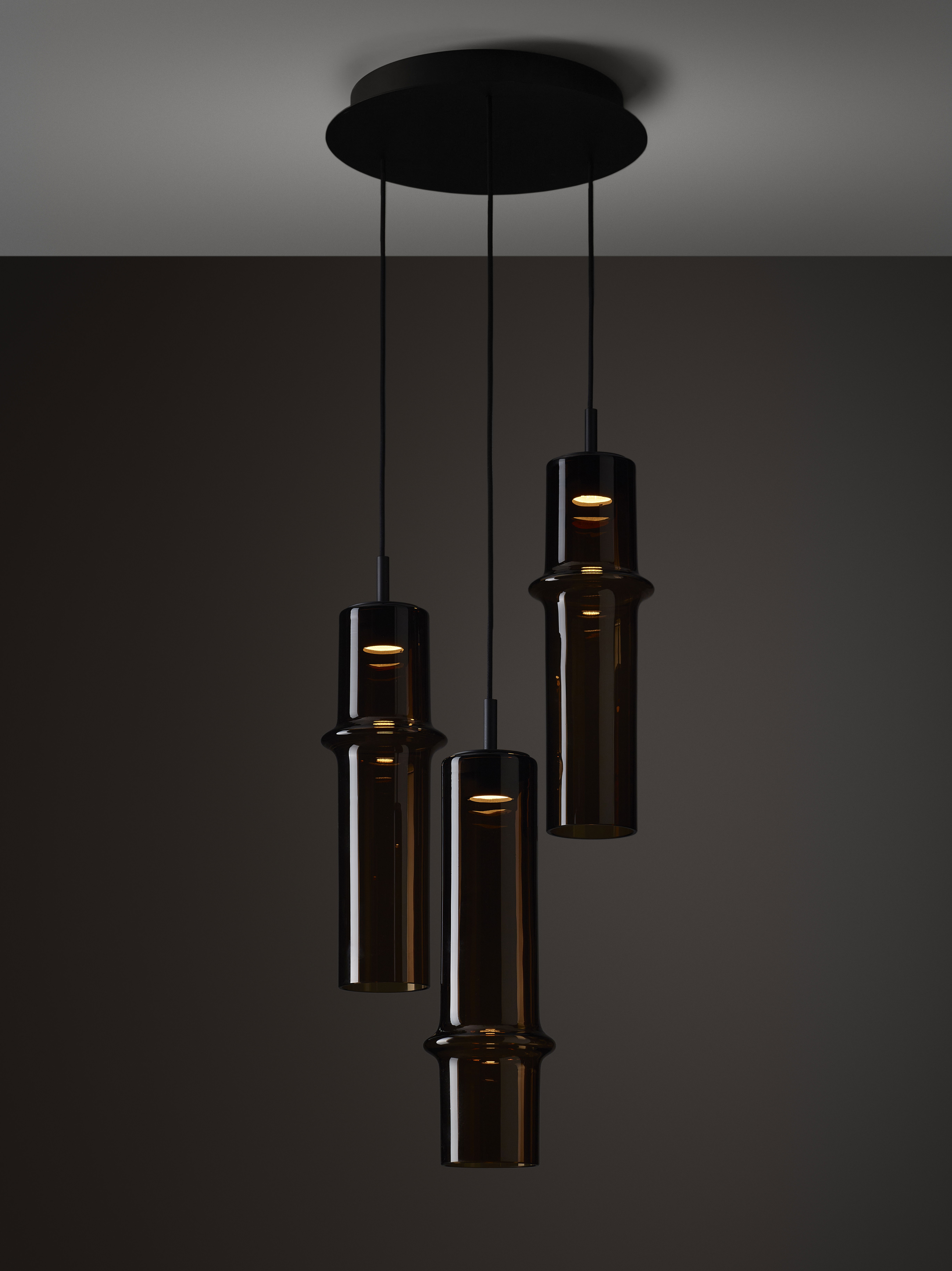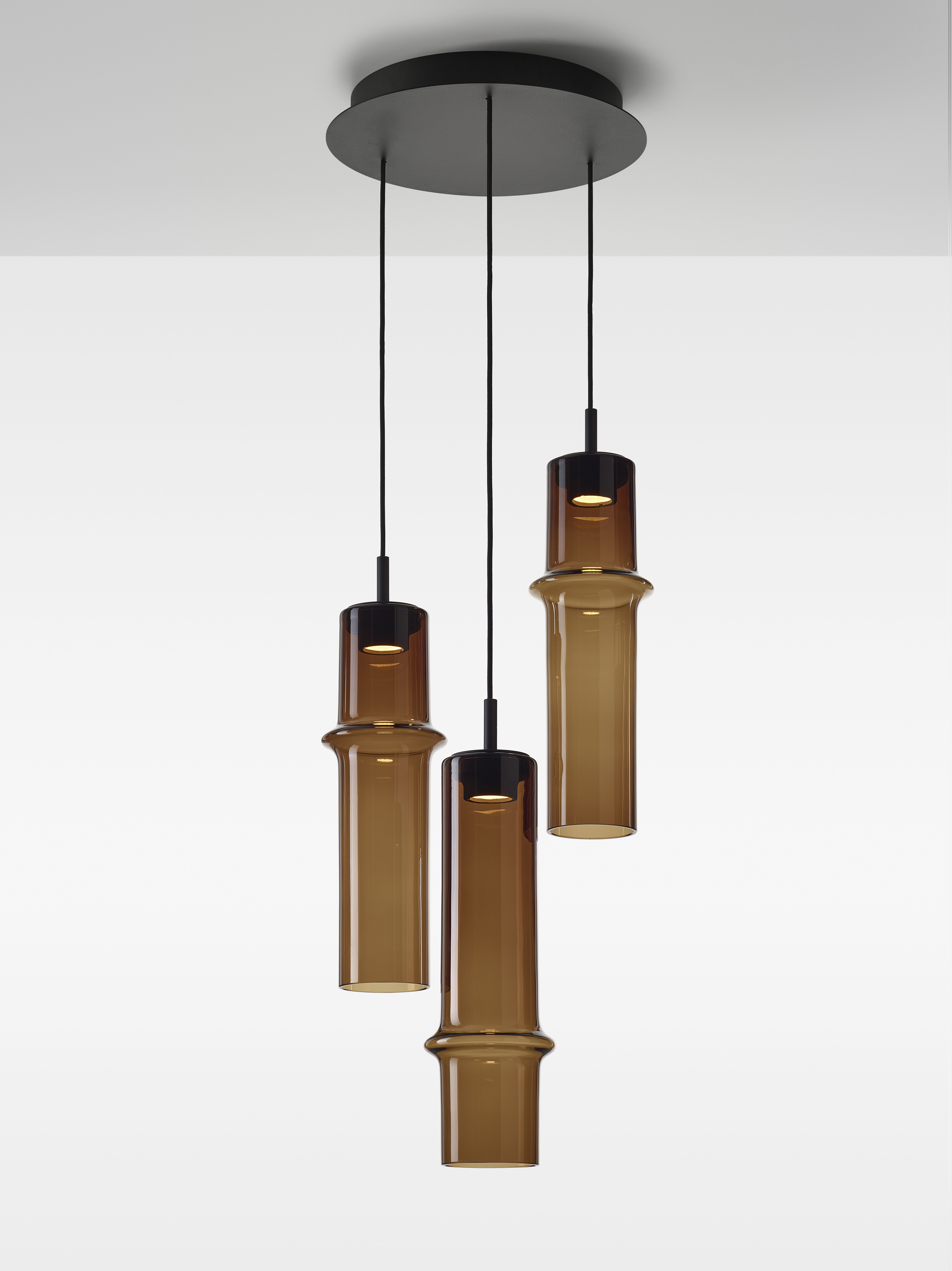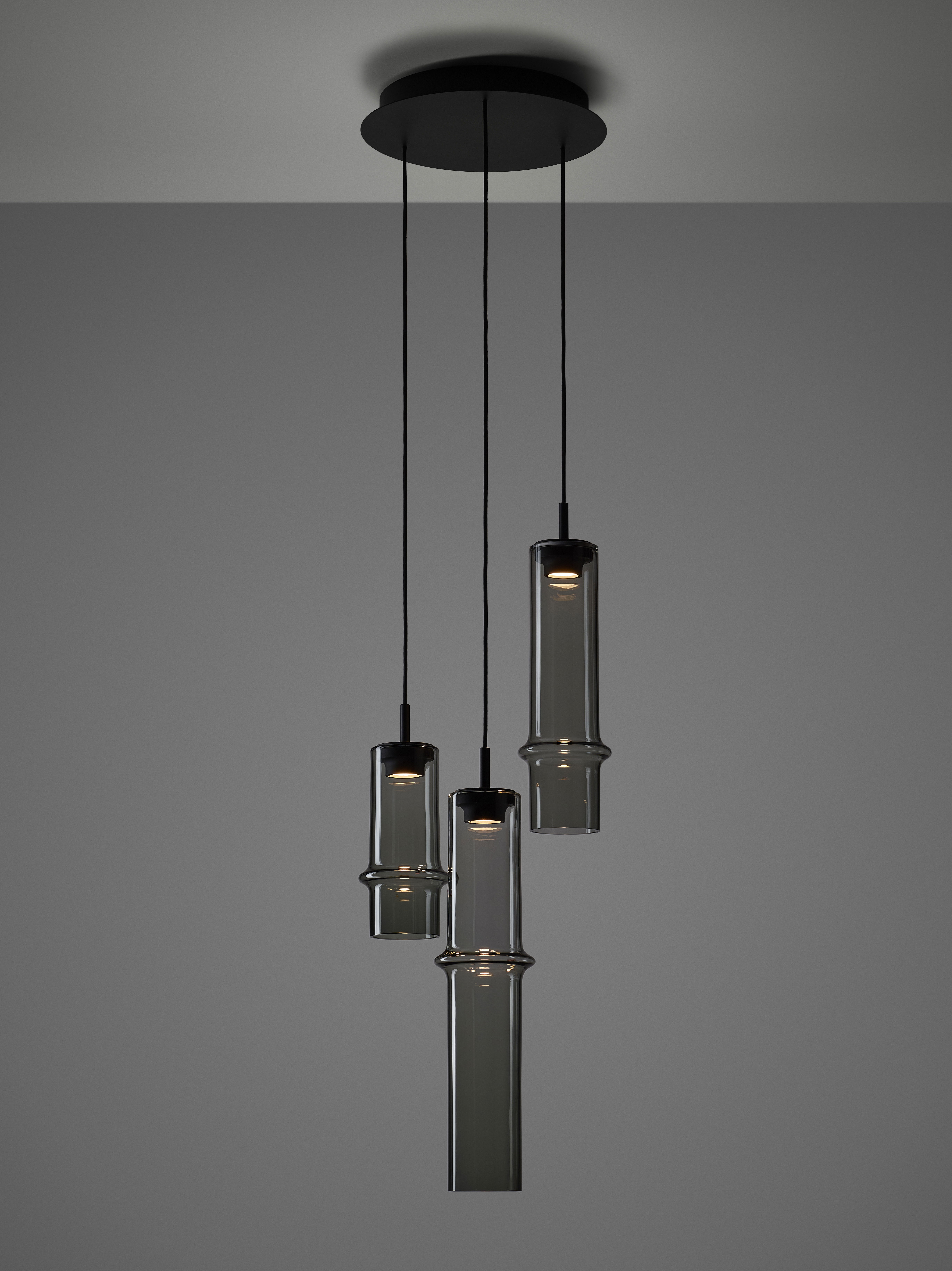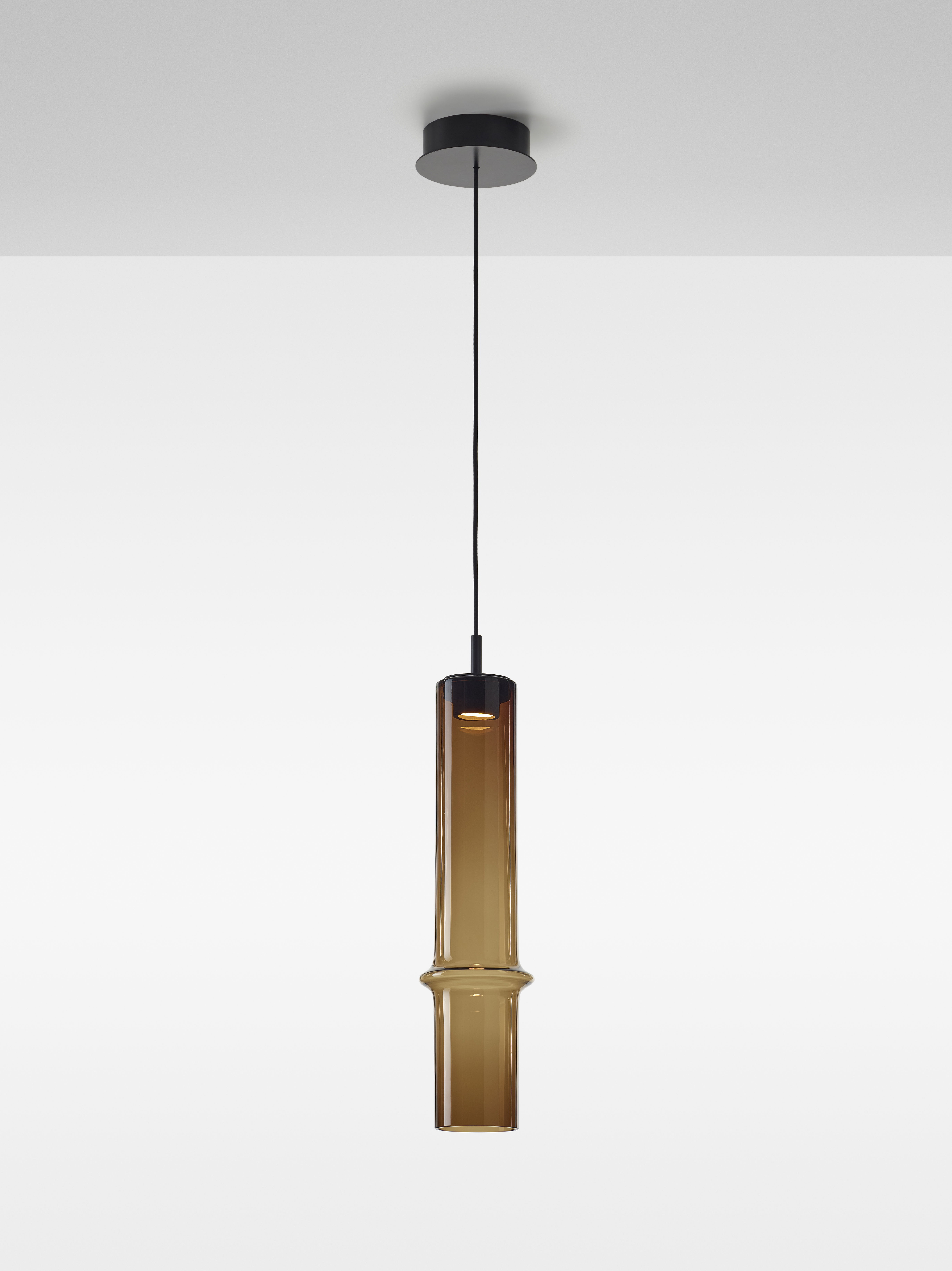 Коллекция Bamboo Forest вдохновлена вертикальными силуэтами бамбуковых зарослей. Светильники, выполненные вручную из стекла, повторяют форму стебля бамбука с характерным узловым кольцом, где материал утолщается, создавая мягкий акцент и нежные тени. Различные размеры и расположение «узлов» на стеблях делают коллекцию узнаваемой с первого взгляда, а групповые композиции наполняют интерьер атмосферой умиротворения, напоминающей прогулку по бамбуковому лесу.