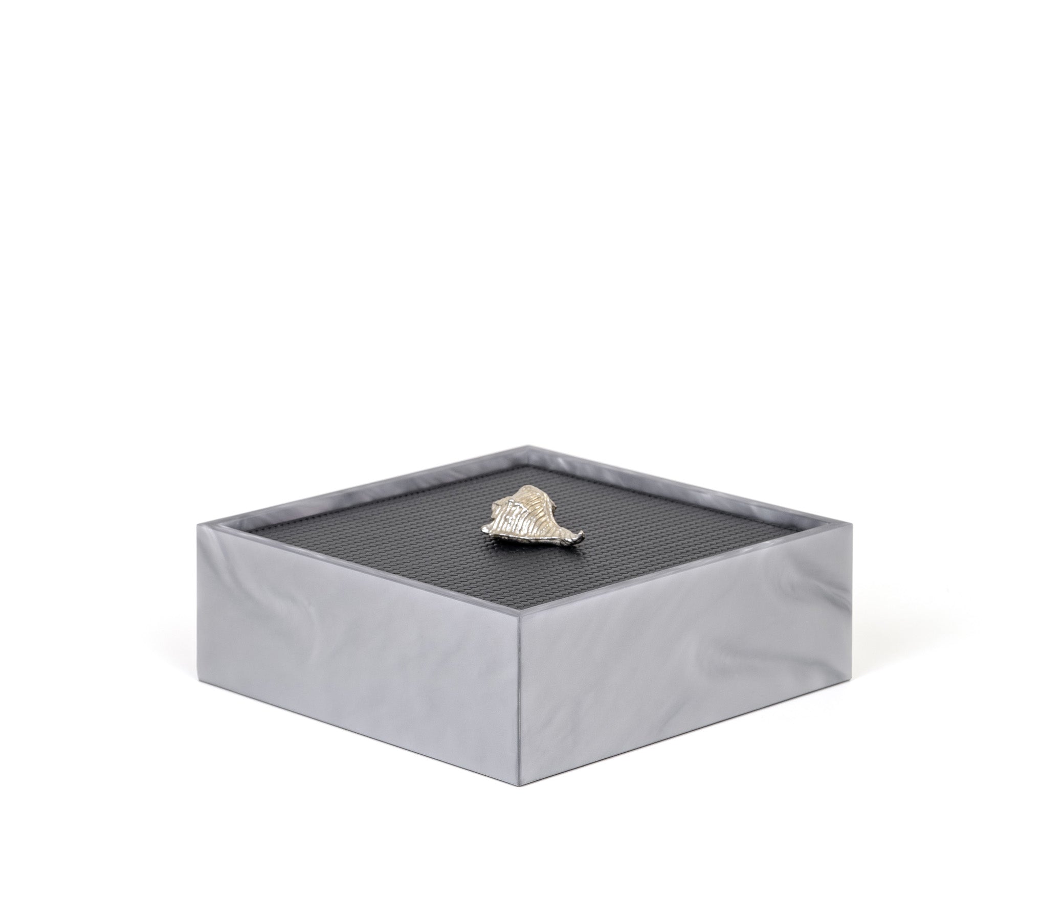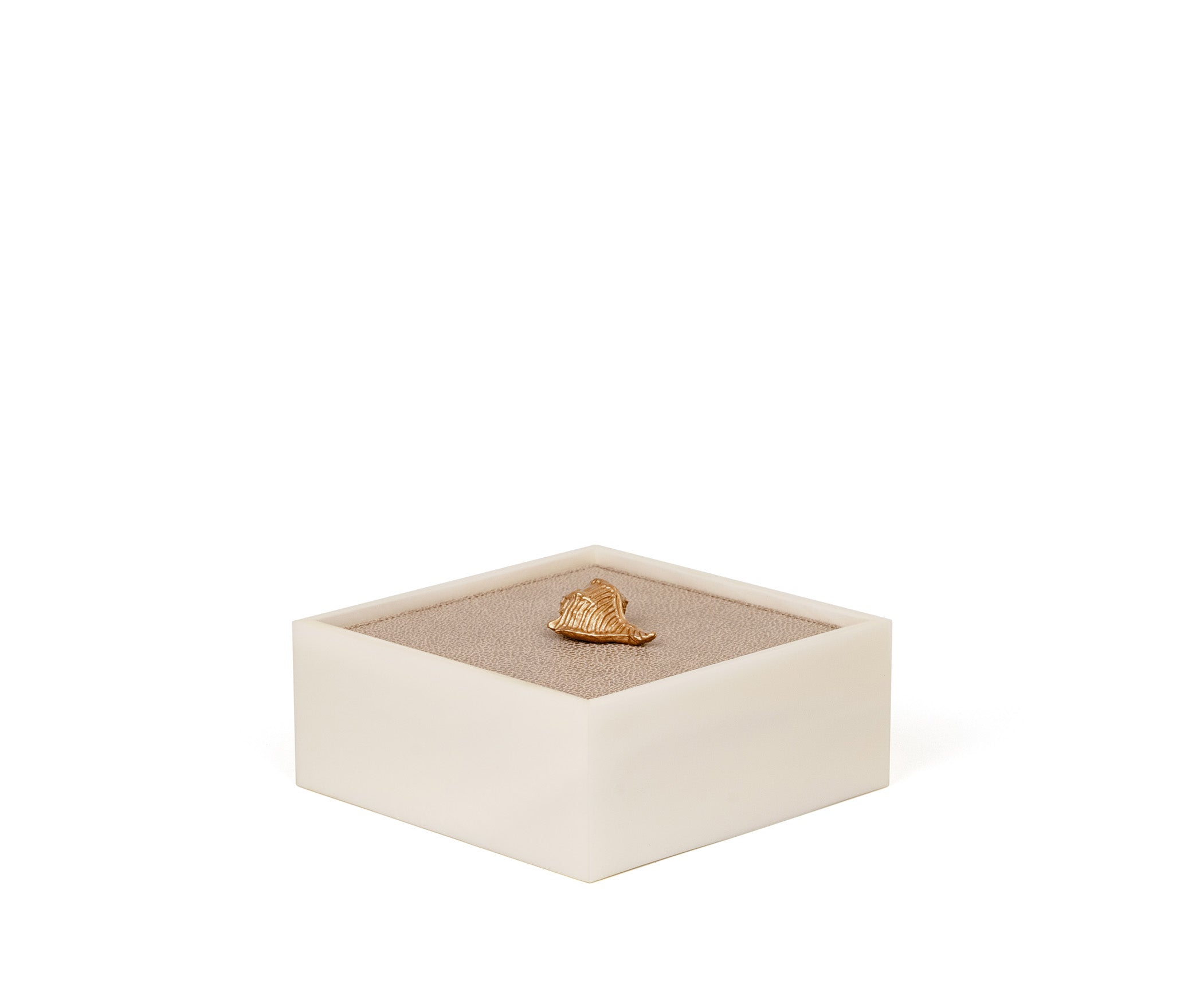 Полностью выполнена из смолы, крышка обтянута натуральной кожей и украшена эффектной вставкой с отделкой под золото или хром. Шкатулки Bea представлены в двух размерах и доступны в различных вариантах кожи и цветах. По запросу возможна индивидуальная настройка.