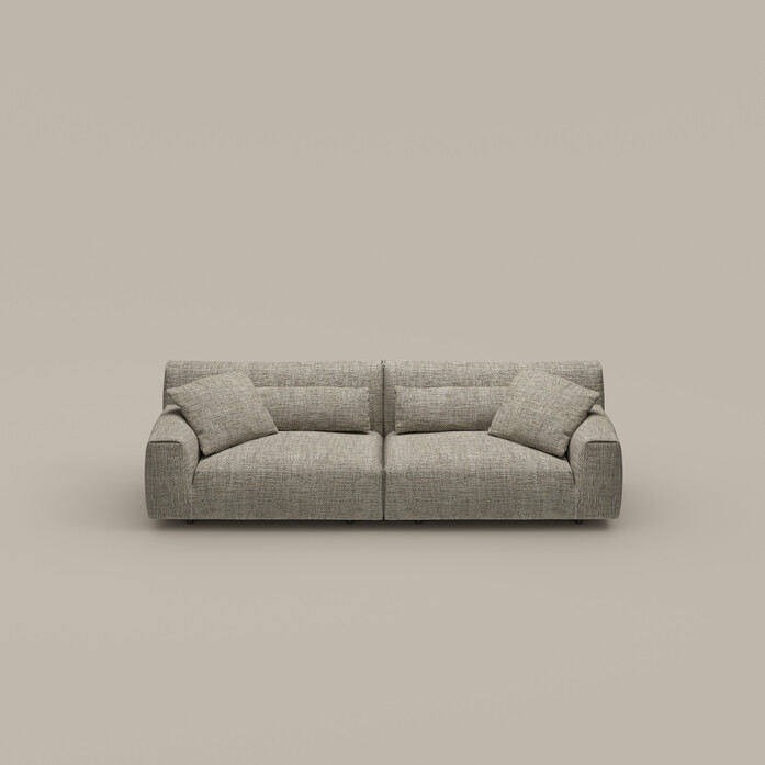 Belloalto — это новая модульная система диванов, разработанная Габриэле и Оскаром Бурати для Bonaldo. Уже само название говорит о главной особенности модели: высокая спинка, обеспечивающая отличную поддержку для плеч и головы, гарантирует исключительный комфорт и полноценный отдых. Два горизонтальных элемента выполняют одновременно эстетическую и практическую функцию: поясничная подушка визуально разделяет спинку, а широкий низкий подлокотник не только повышает удобство, но и сохраняет гармоничные пропорции дивана. Belloalto — это универсальная система, позволяющая создавать как прямолинейные, так и угловые композиции благодаря добавлению элементов с шезлонгом и торцевых модулей, которые также могут быть оснащены высокими подлокотниками вровень со спинкой.