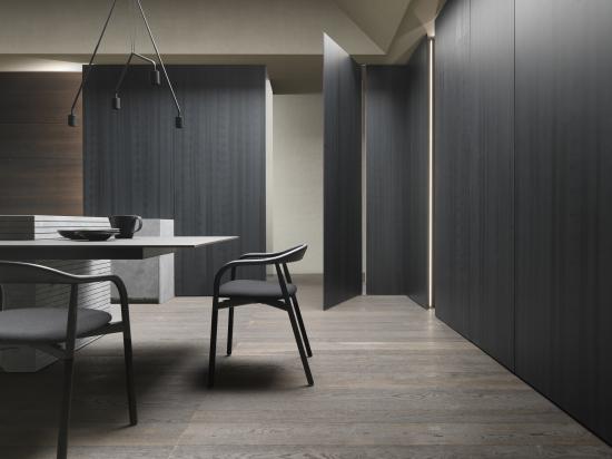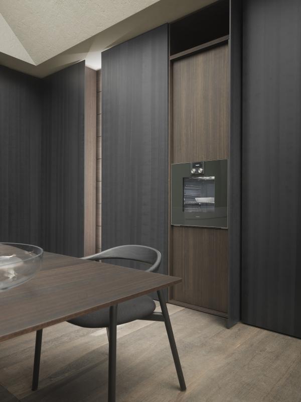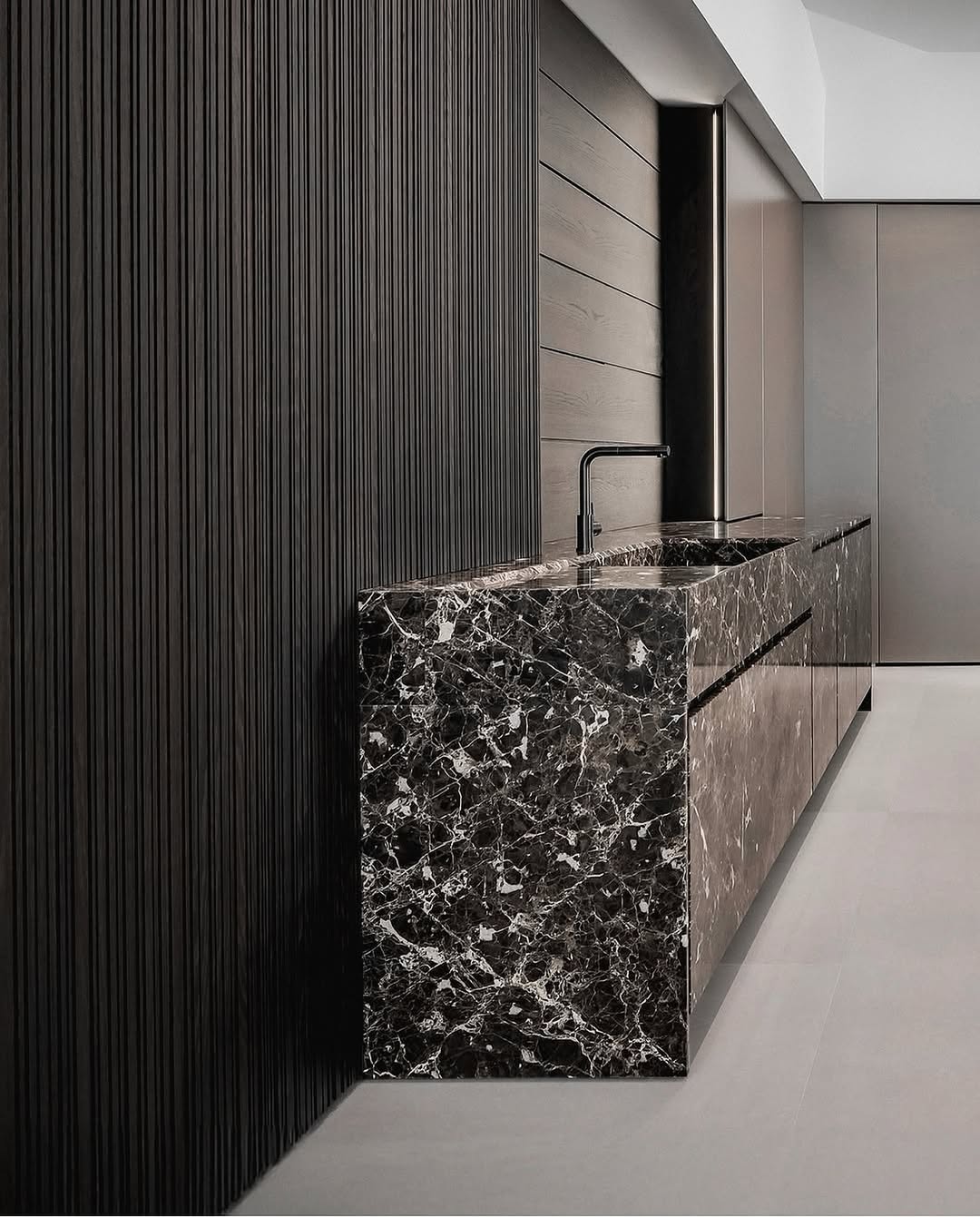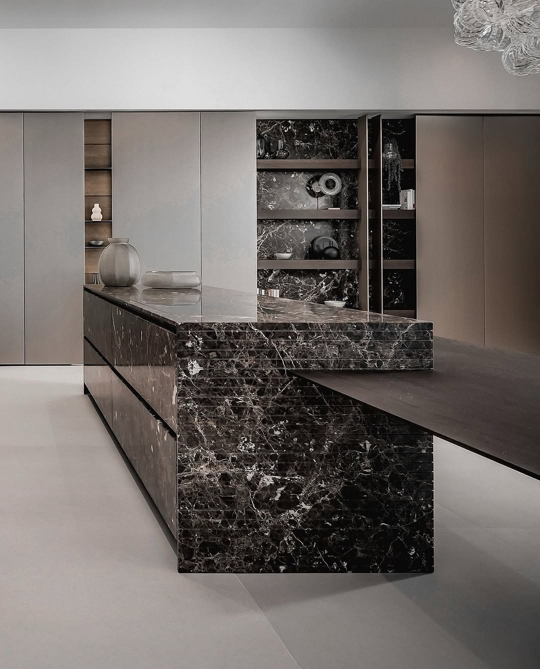 Каменная кухня воплощает совершенство коллекции Modulnova. Инновационные технологии и передовые разработки позволяют придать природному, традиционно тяжёлому камню необычайную лёгкость и гармонично интегрировать его в кухонное пространство. Такой подход не только сохраняет естественную красоту, элегантность натурального материала, но и делает его удобным для ежедневного использования. Уникальный союз благородного камня Amarula raw и изысканного шпона эвкалипта придаёт модели Blade Lab неповторимый характер, выделяя её среди других кухонных решений и подчеркивая высокое мастерство в каждой детали. Особого внимания заслуживает и инновационная поворотная дверь — фирменная разработка Modulnova. Благодаря ультратонкой встроенной панели, она открывает безграничные возможности для создания гибких и стильных интерьеров, идеально подстраиваясь под любые дизайнерские концепции.