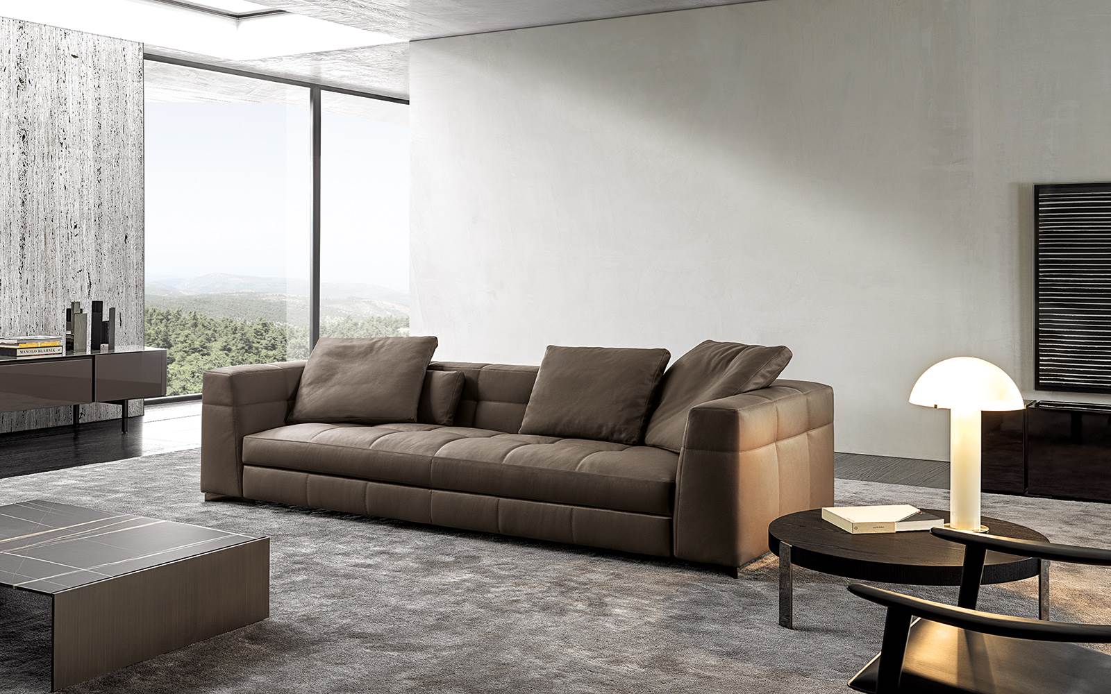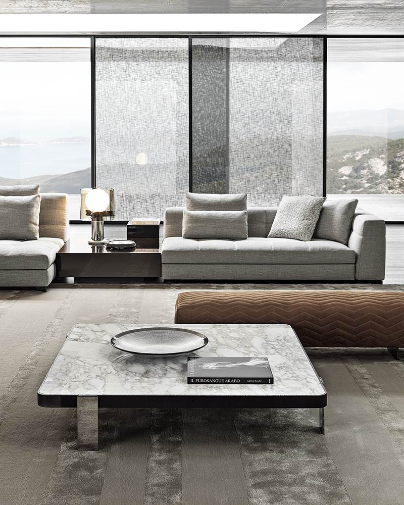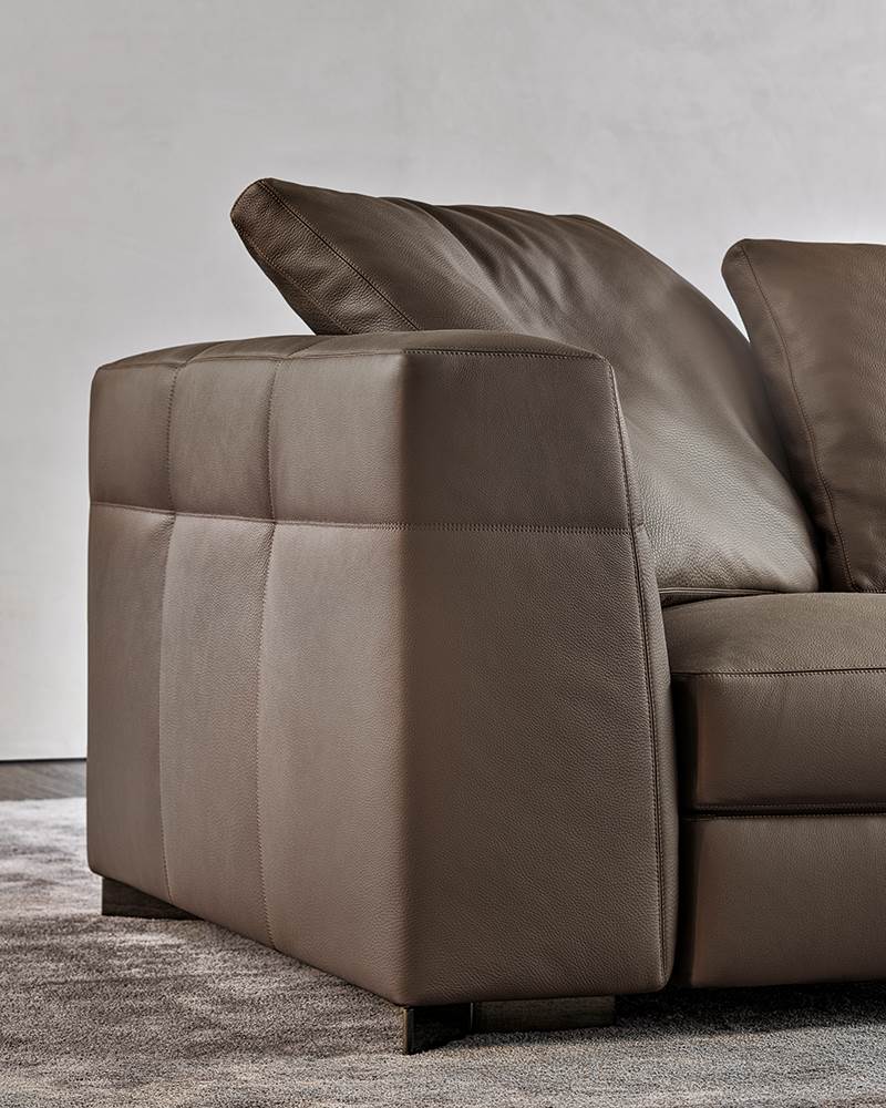 Blazer — современный диван с мягкими очертаниями, подчёркнутыми объёмными подушками и тонкими опорами. Баланс между визуальной лёгкостью и функциональностью.