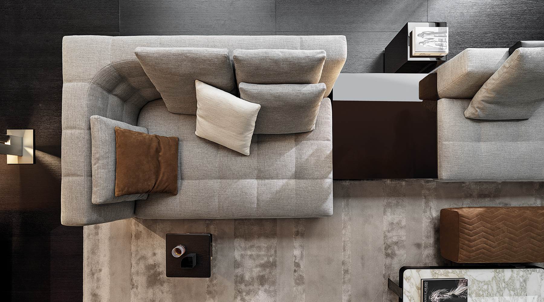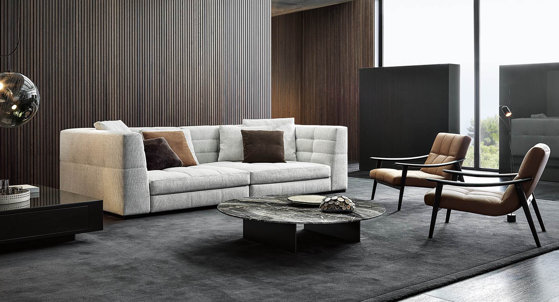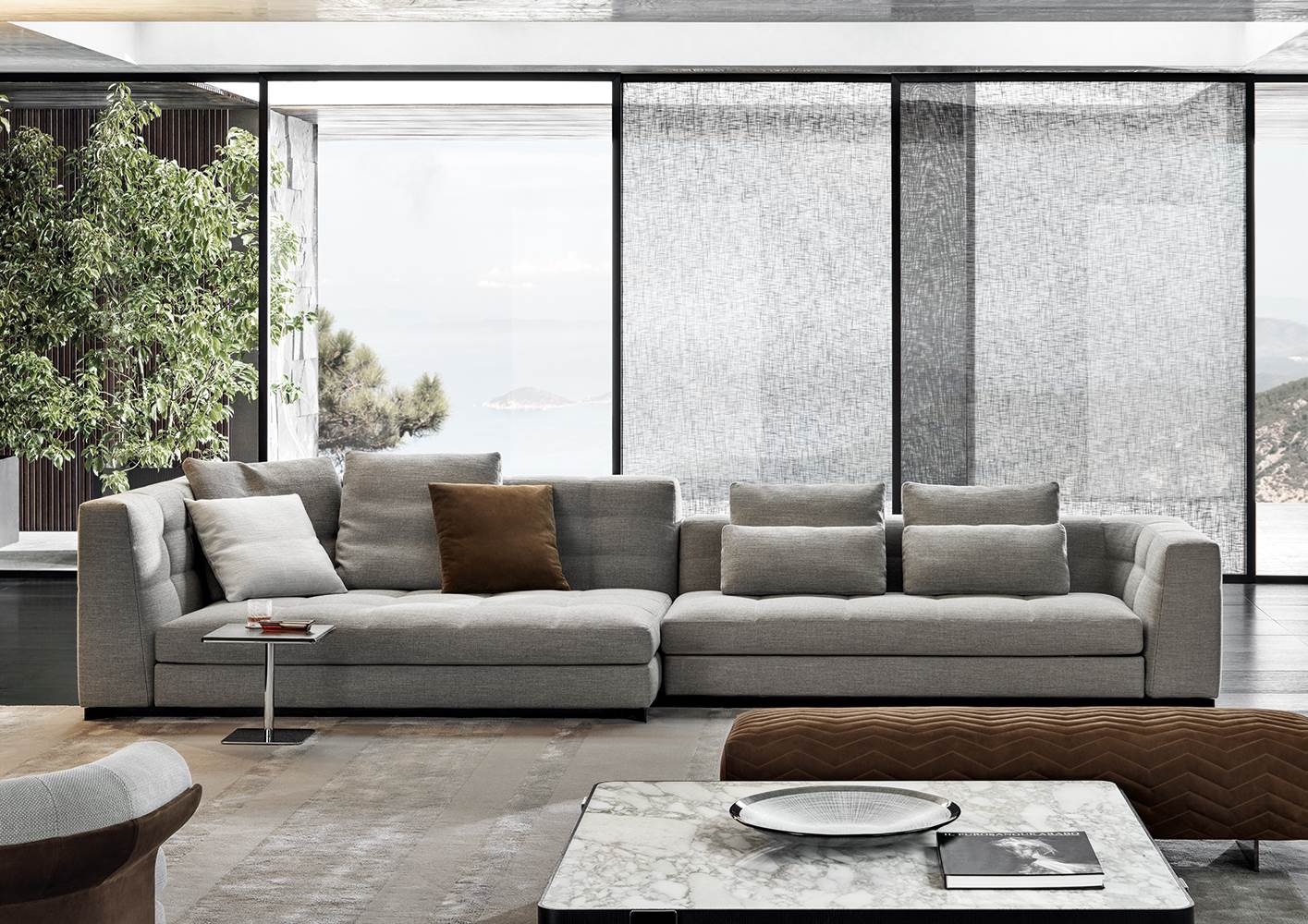 Blazer — современный диван с мягкими очертаниями, подчёркнутыми объёмными подушками и тонкими опорами. Баланс между визуальной лёгкостью и функциональностью.