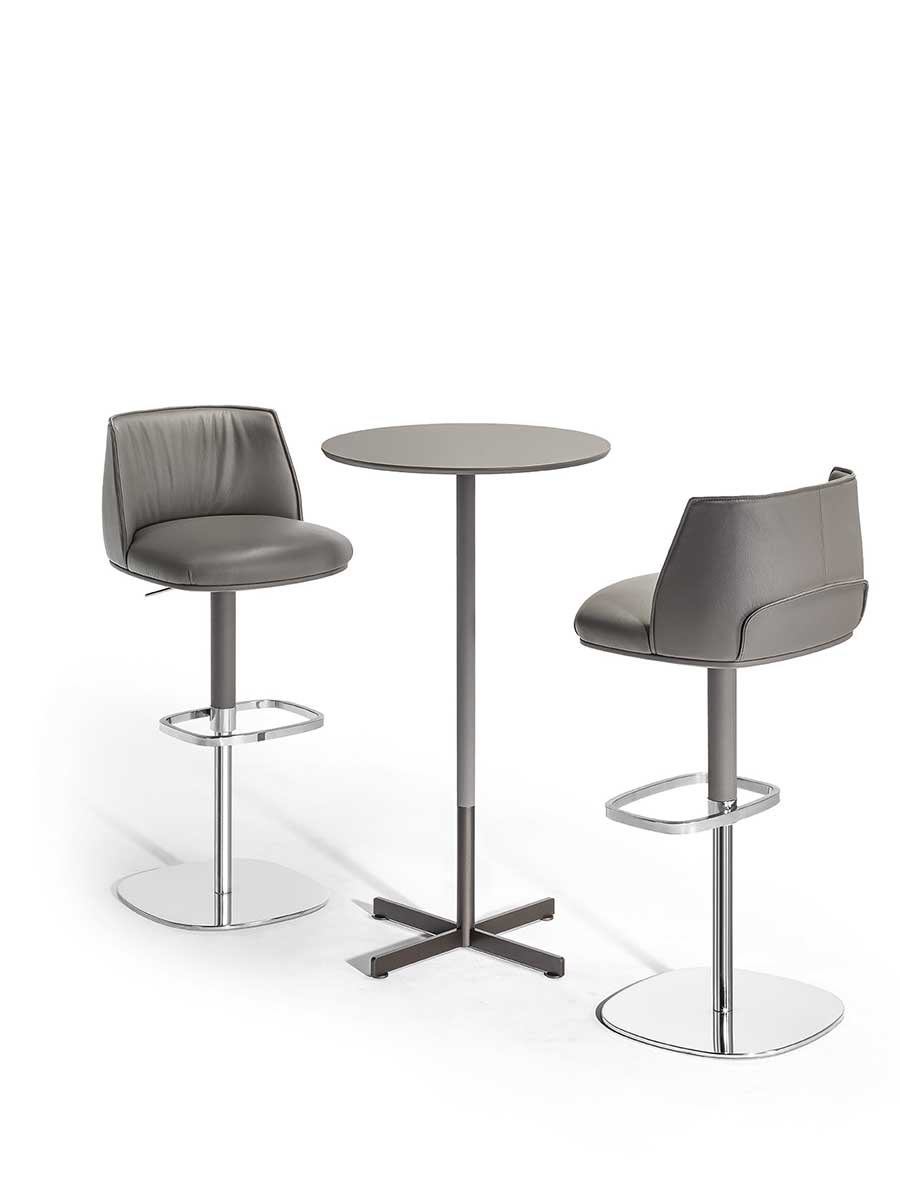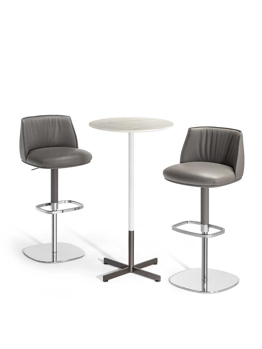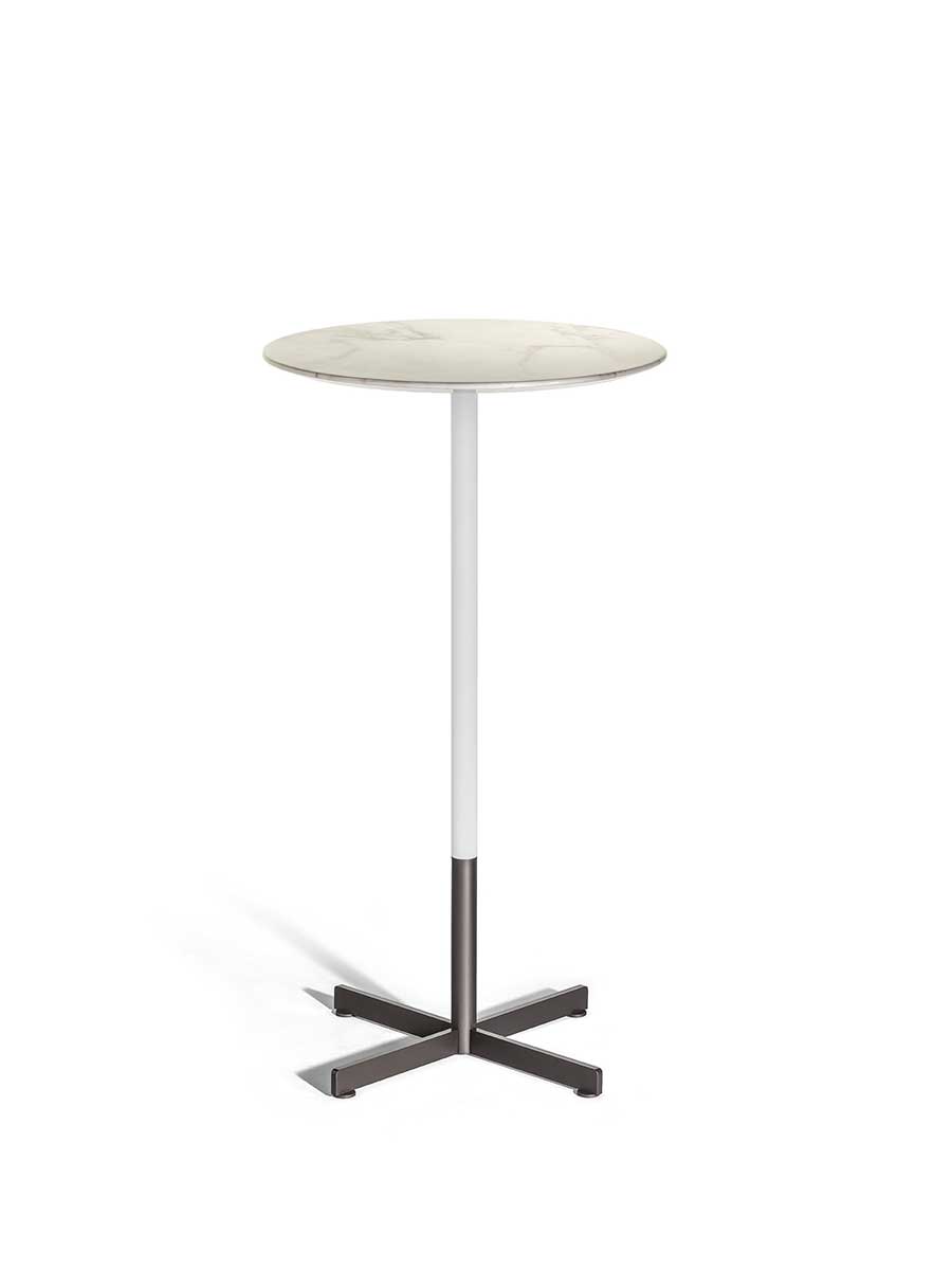 Столешница стола Bob Bistrot доступна в мраморе, дереве и Fenix NTM®. Основание и нижняя часть ножки изготовлены из вороненой стали с соответствующими металлическими регулируемыми опорами, а защитные наконечники – из пластика. Верхняя часть ножки изготовлена из стальной конструкции, на которой закреплен стальной хомут, доступный в различных вариантах отделки в зависимости от столешницы.