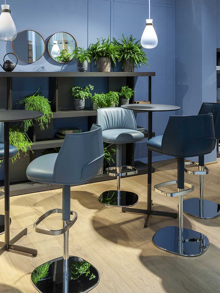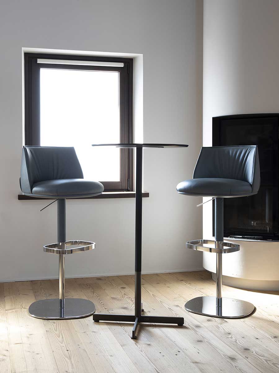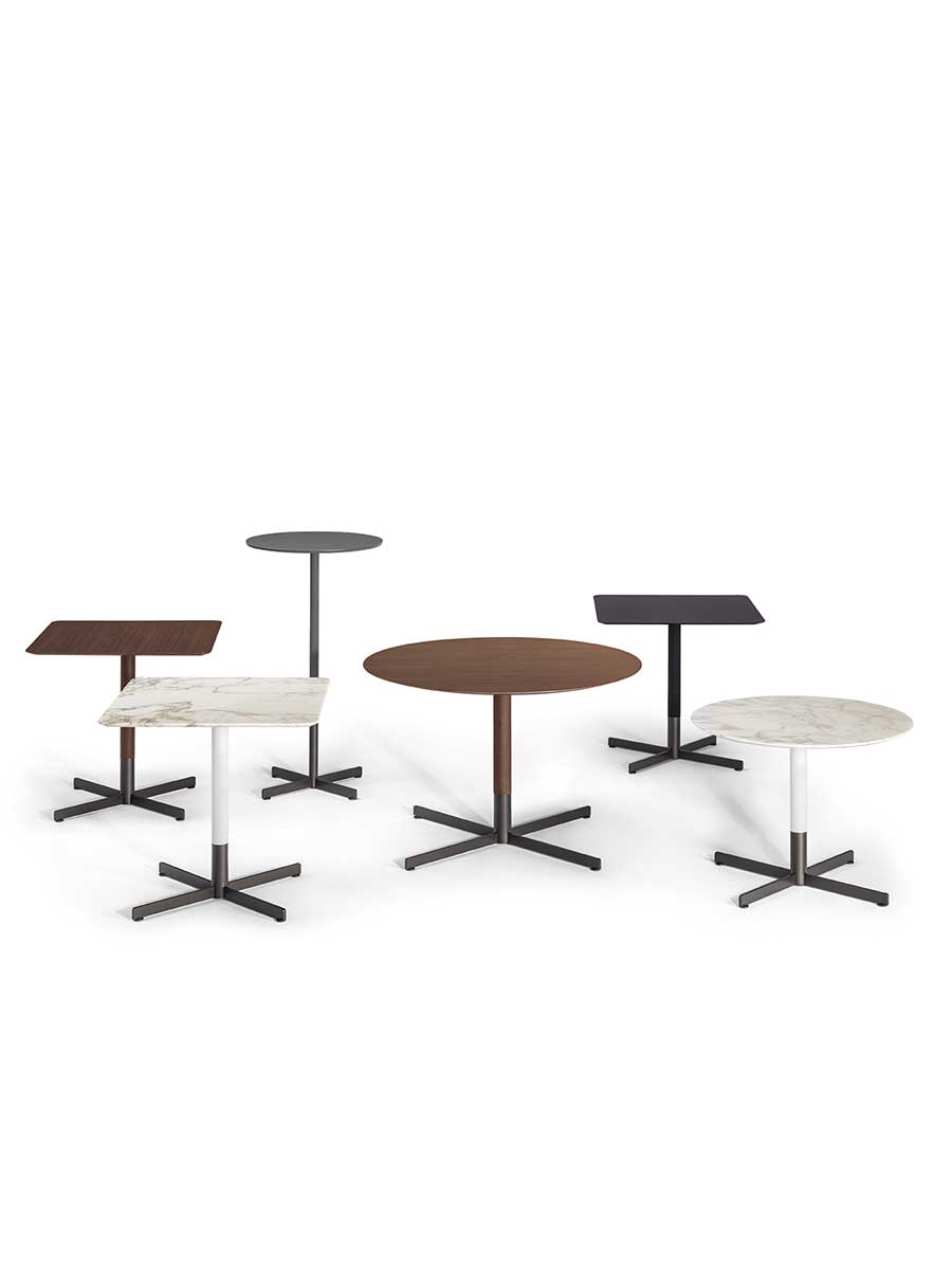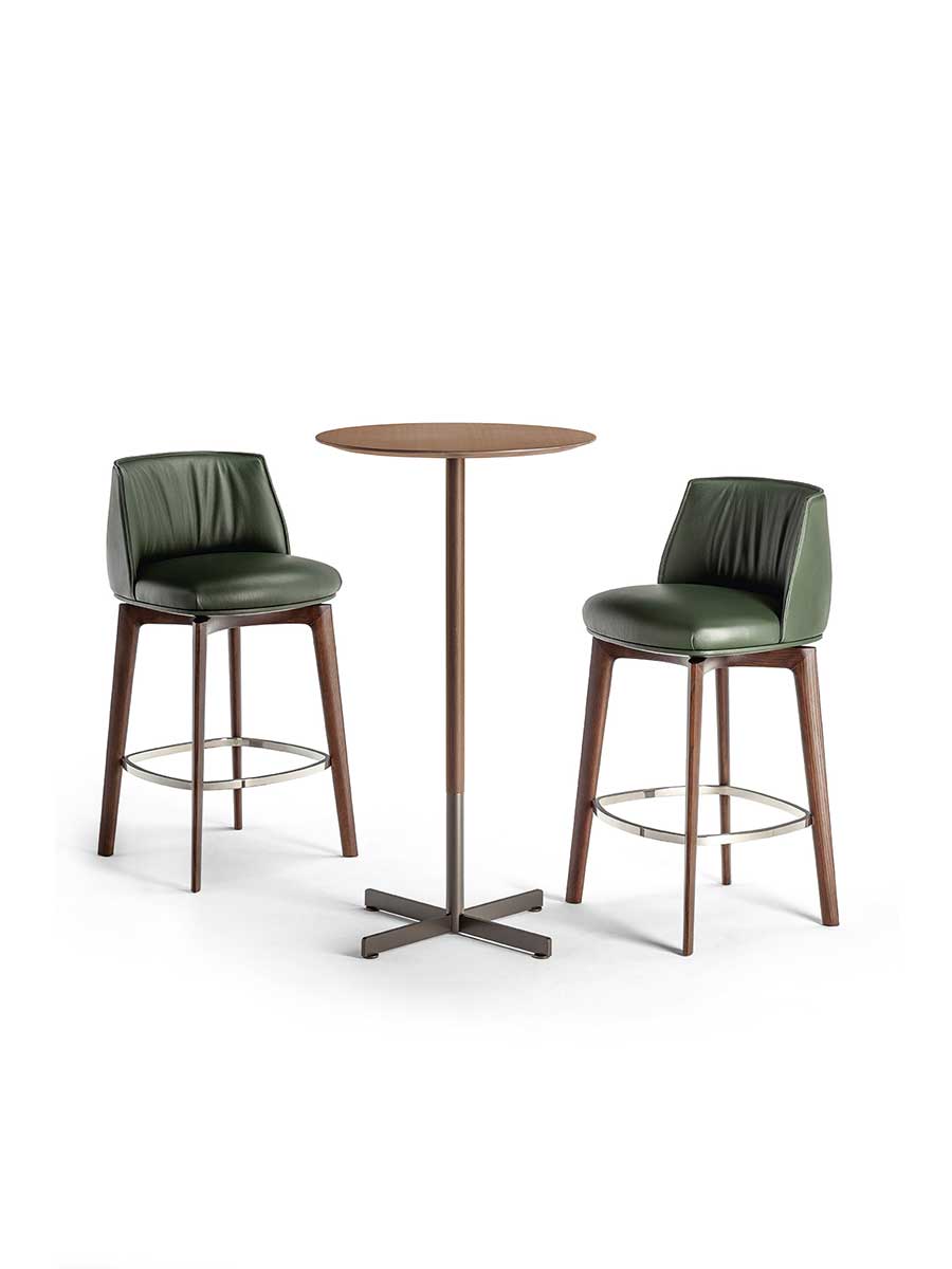 Столешница стола Bob Bistrot доступна в мраморе, дереве и Fenix NTM®. Основание и нижняя часть ножки изготовлены из вороненой стали с соответствующими металлическими регулируемыми опорами, а защитные наконечники – из пластика. Верхняя часть ножки изготовлена из стальной конструкции, на которой закреплен стальной хомут, доступный в различных вариантах отделки в зависимости от столешницы.