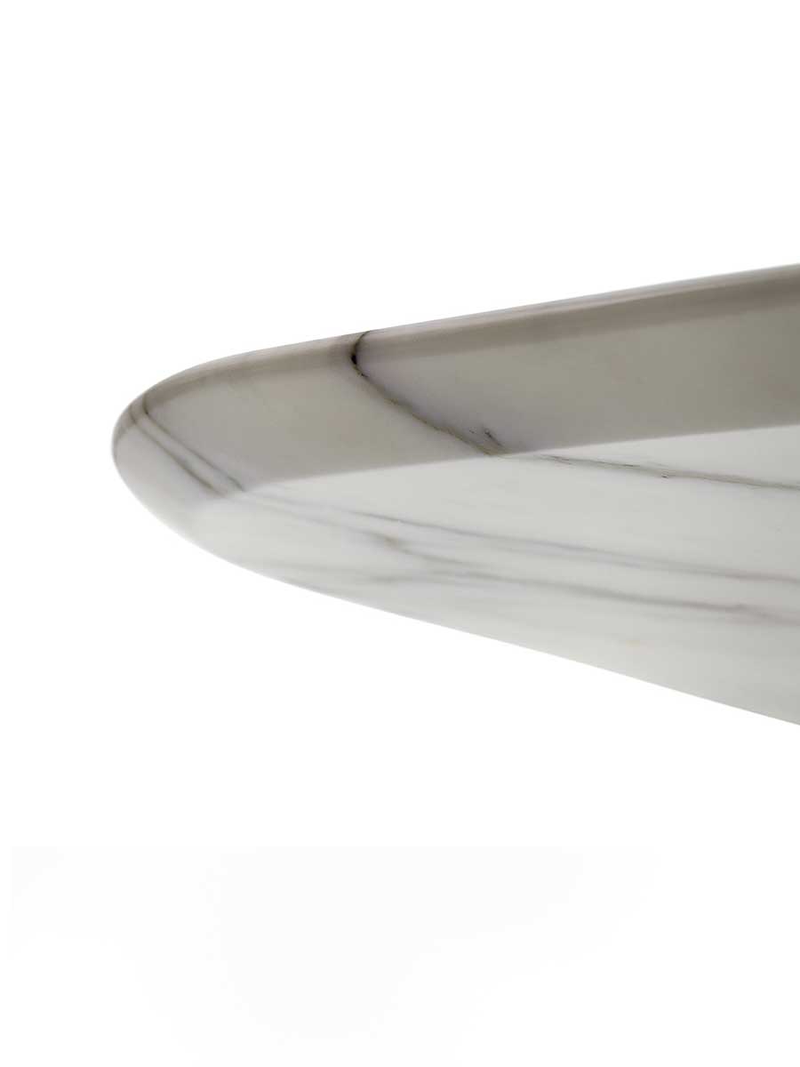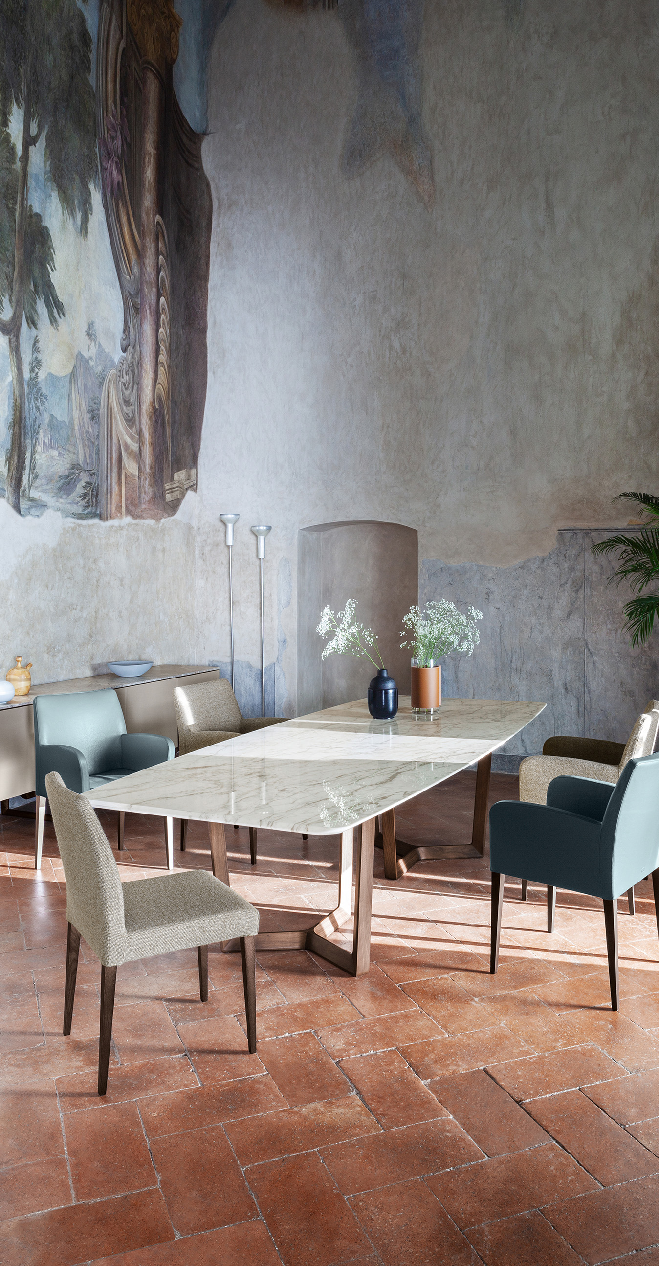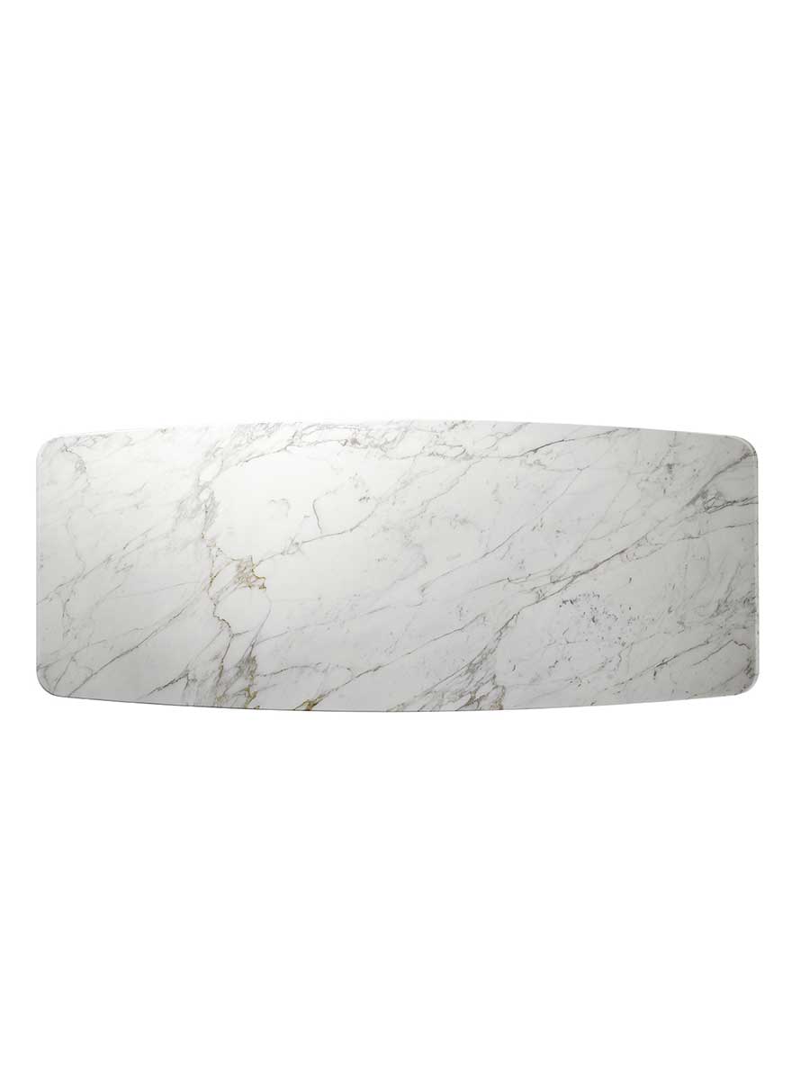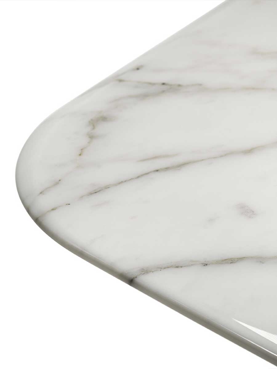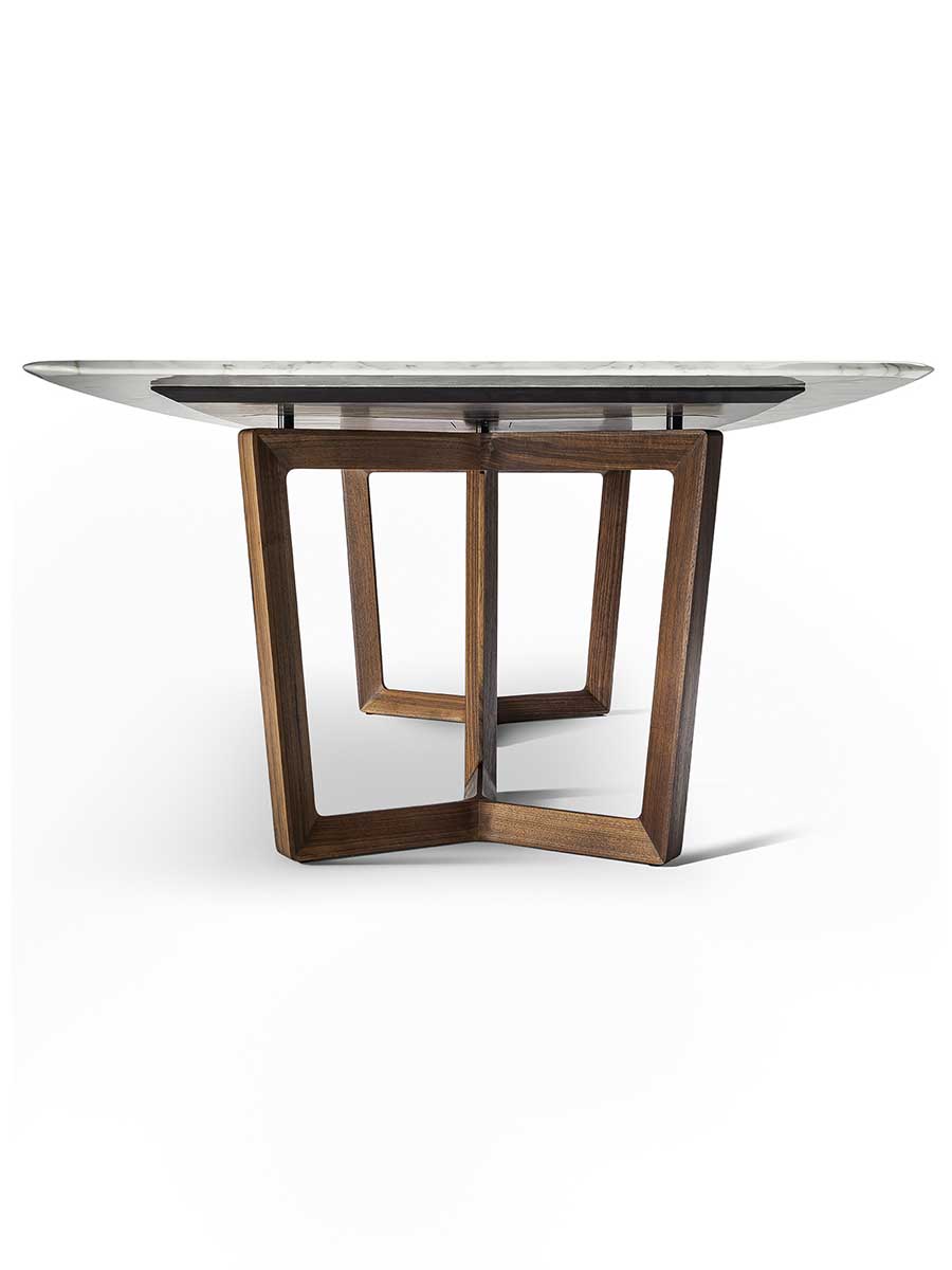 Стол Bolero Ravel имеет самонесущее основание на козлах с тремя стойками треугольного сечения. Ножки могут быть изготовлены из дерева с различными вариантами отделки. Крепёжные пластины и распорки изготовлены из стали, окрашенной в чёрный цвет. Мраморная столешница, доступная в различных вариантах глянцевой и полуглянцевой отделки, изготовлена из цельной бочкообразной плиты со скошенными краями. Глянцевая поверхность обработана полиэфирным лаком, который обеспечивает повышенную прочность и предотвращает впитывание жидкости; полуглянцевая поверхность обработана водоотталкивающим маслом для более естественного вида. Нижняя сторона мраморной столешницы усилена технической сеткой для обеспечения долговечности.