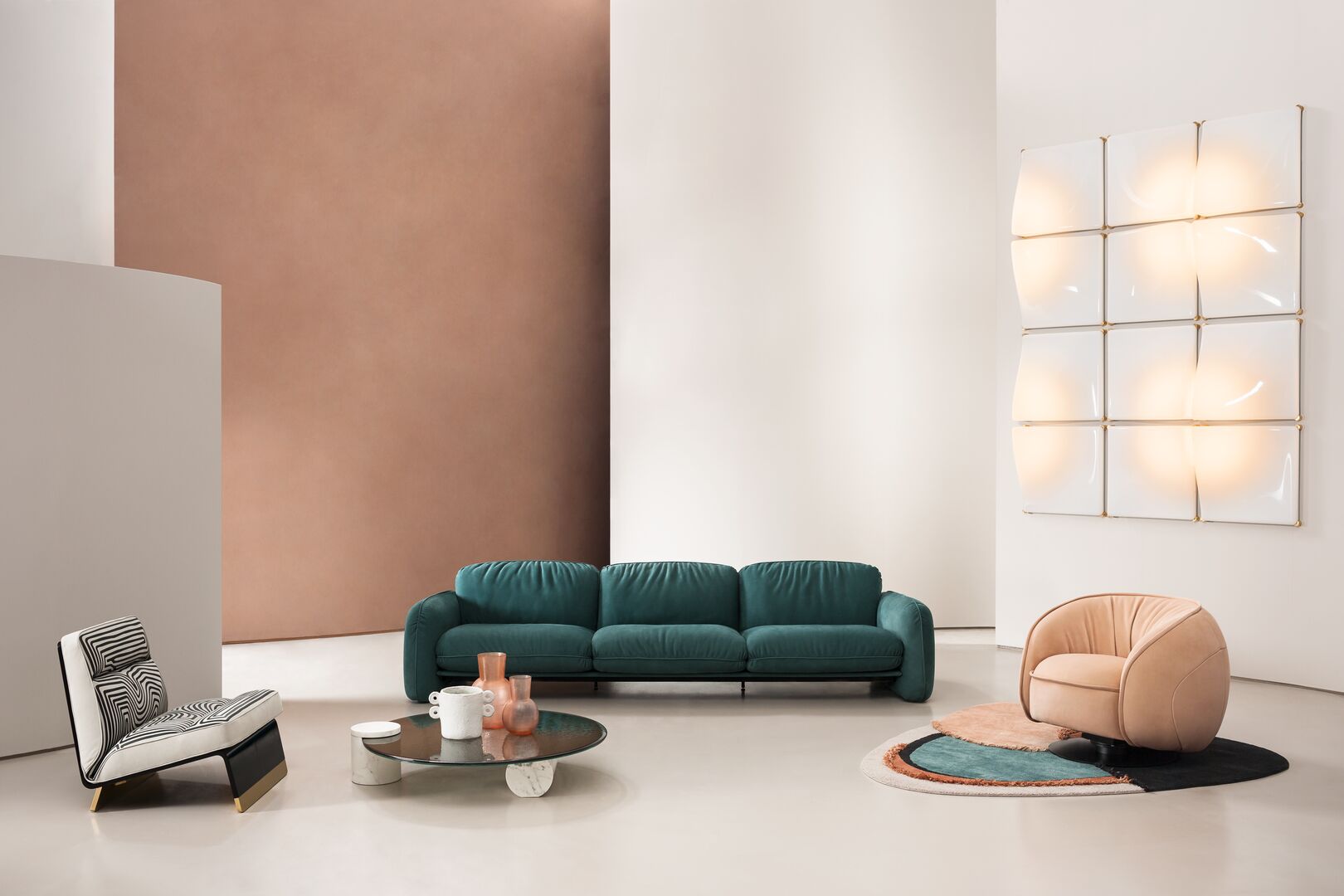 Brigitte от Draga & Aurel — это яркое переосмысление эстетики 1970-х годов в духе современного уюта и раскованной элегантности. Диван привлекает внимание своими щедрыми пропорциями и визуально мягкой формой, создавая ощущение приглушенной роскоши и абсолютного комфорта. Просторные посадочные зоны, глубокие подушки и расслабленные очертания словно приглашают погрузиться в атмосферу отдыха и неги.