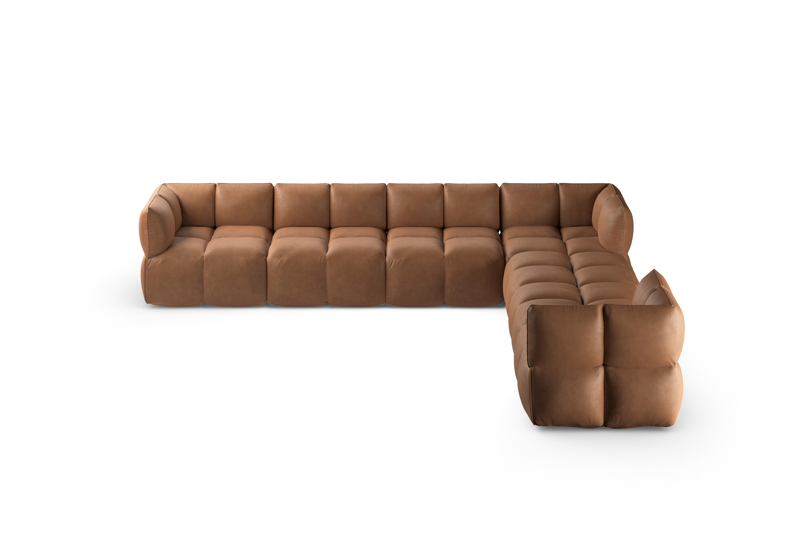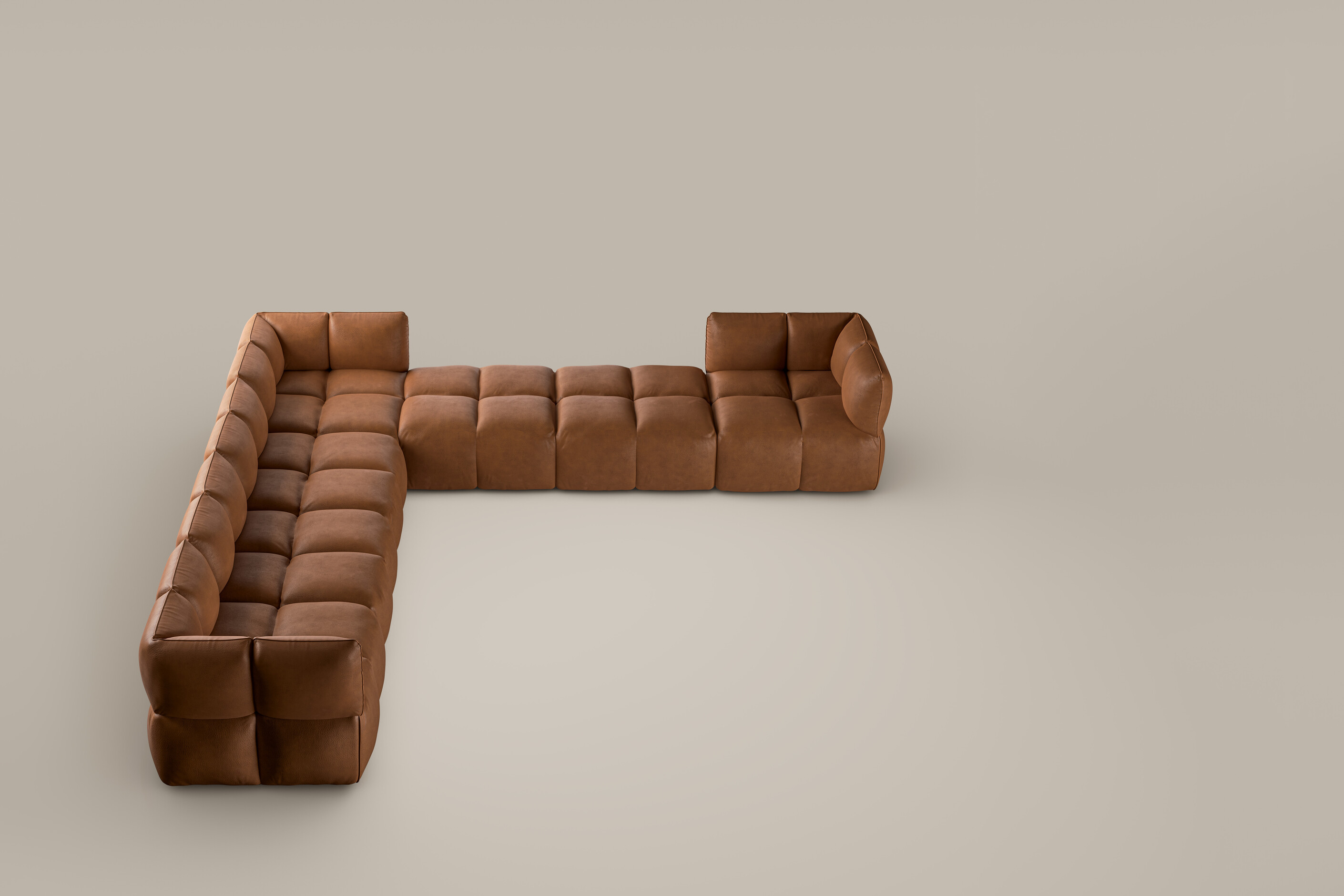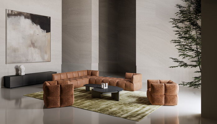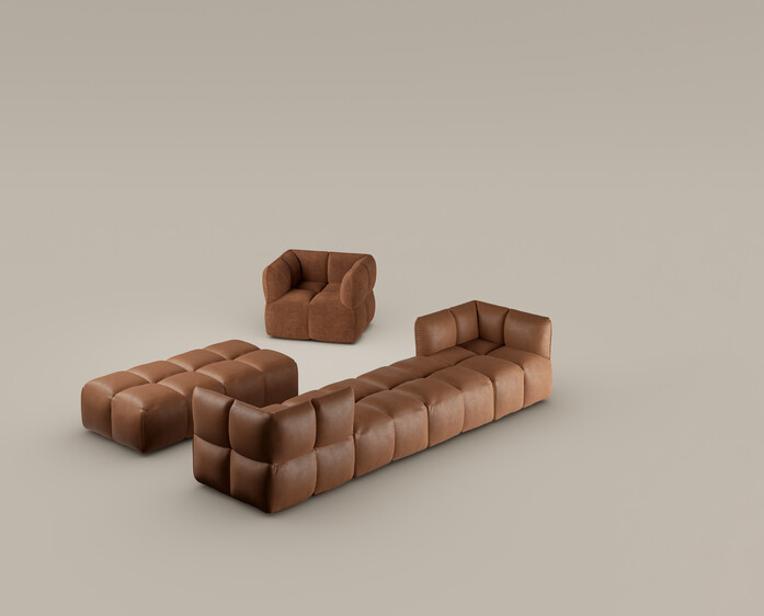 Brik — это новая коллекция диванов, созданная для Bonaldo дизайнерами Мартиной и Массимо Кастанья. Название, отсылающее к кирпичу как символу модульности, отражает саму суть дизайна этой модели. Система включает в себя центральный модуль, угловой элемент, пуф и кресло — все с мягкой, уютной эстетикой. Конструкция вдохновлена композиционными принципами 1980-х годов: модули свободно располагаются рядом друг с другом, избавляя интерьер от жёстких и формальных решений, ставших привычными в последние годы. Brik отличается гибкостью в размерах и вариантах использования — от компактных композиций для жилых интерьеров до масштабных решений для просторных помещений. В таких сценариях каждый элемент может функционировать как отдельное сиденье, одностороннее или двустороннее, формируя новое понимание комфортного и открытого общения.