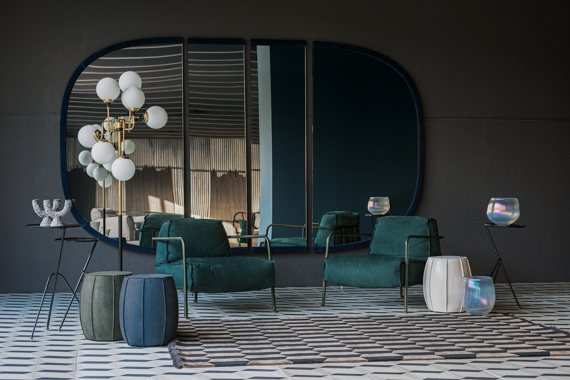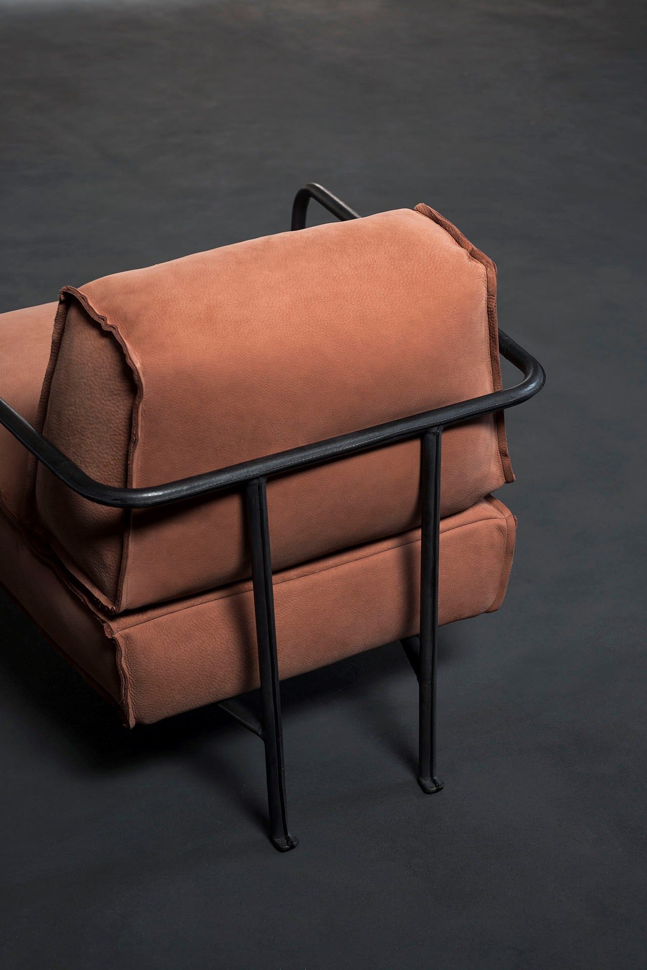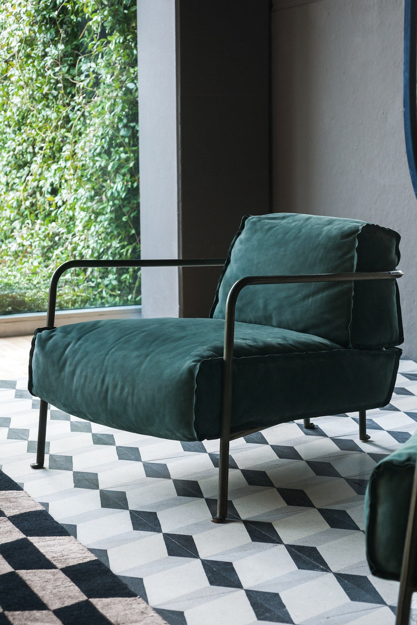 Кожаное кресло Bruxelles, разработанное Паолой Навоне. Каркас из трубчатого металла, покрытого натуральной или антрацитовой кожей. Подушки сиденья и спинки из полиуретановой пены с разной плотностью. Пружинная основа с перекрестно сплетенными резиновыми ремнями. Внутренняя структура из фанеры тополя. Кожаная обивка с острым швом. Доступно в мягких кожах, мутоны и белый монгольский мех.