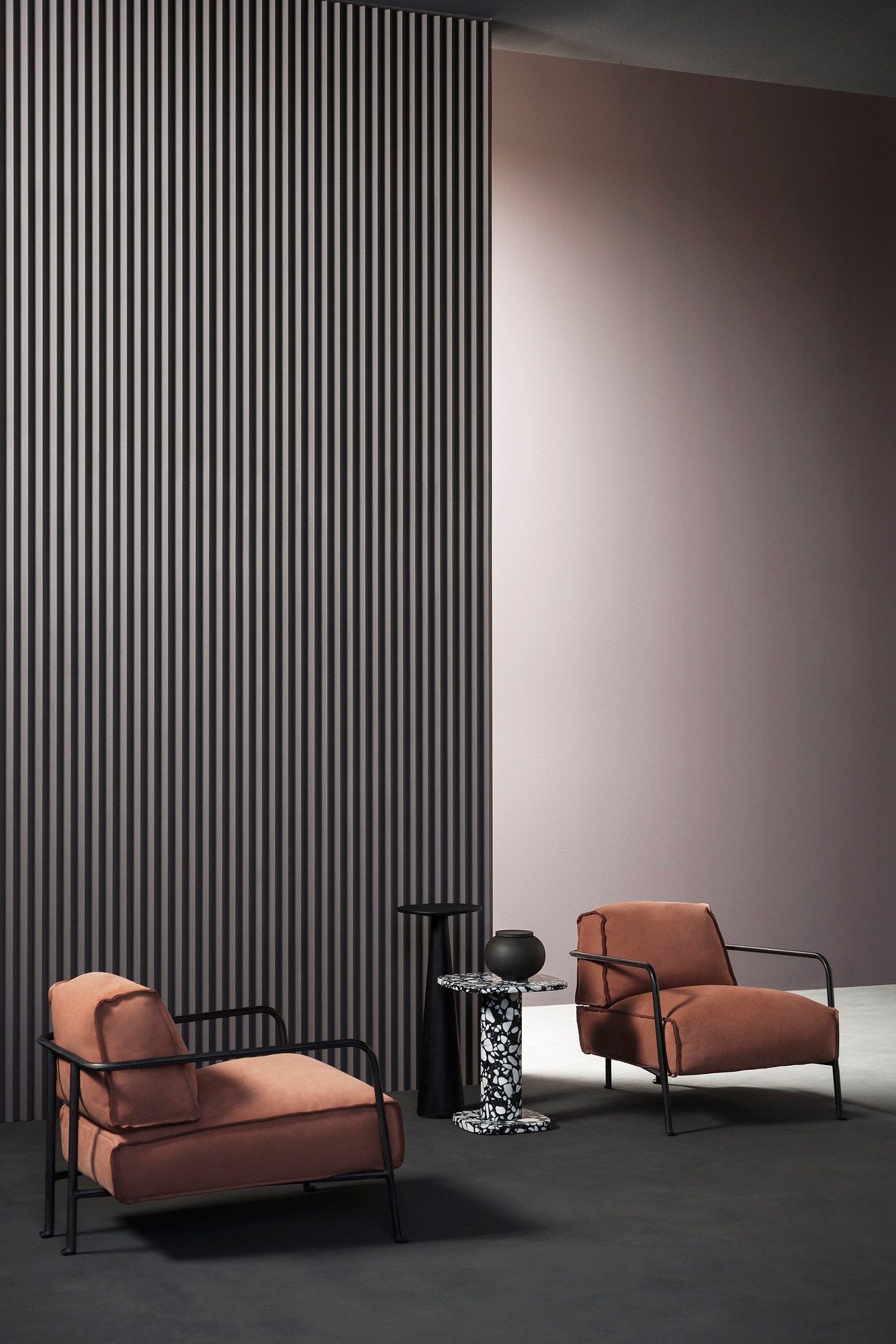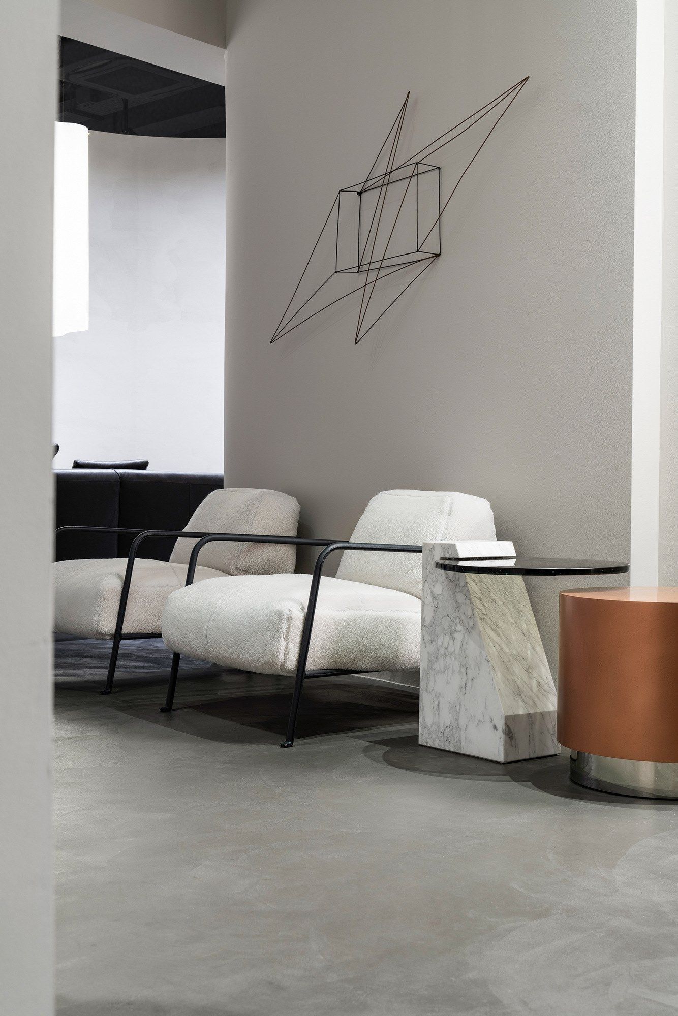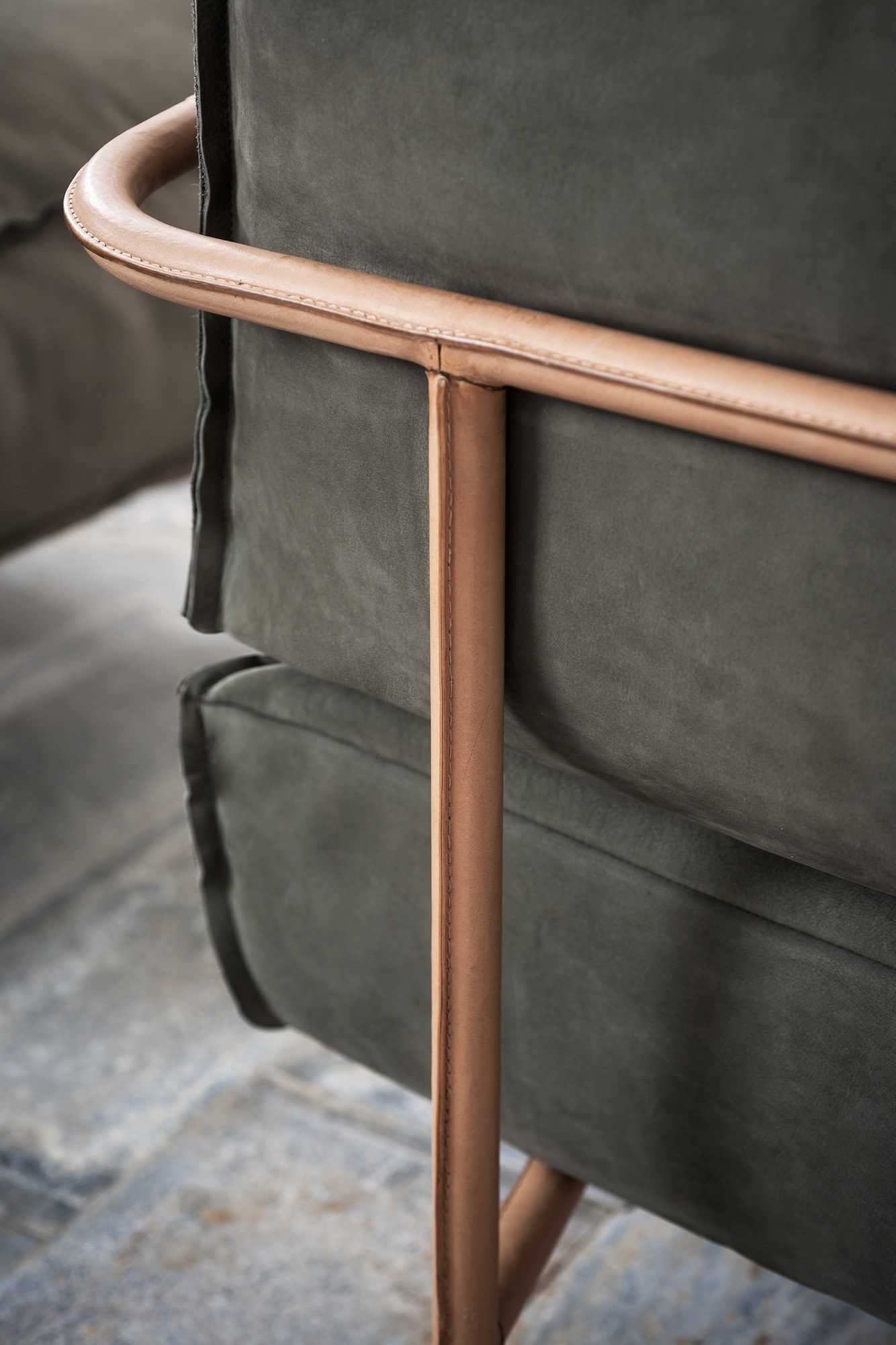 Кожаное кресло Bruxelles, разработанное Паолой Навоне. Каркас из трубчатого металла, покрытого натуральной или антрацитовой кожей. Подушки сиденья и спинки из полиуретановой пены с разной плотностью. Пружинная основа с перекрестно сплетенными резиновыми ремнями. Внутренняя структура из фанеры тополя. Кожаная обивка с острым швом. Доступно в мягких кожах, мутоны и белый монгольский мех.