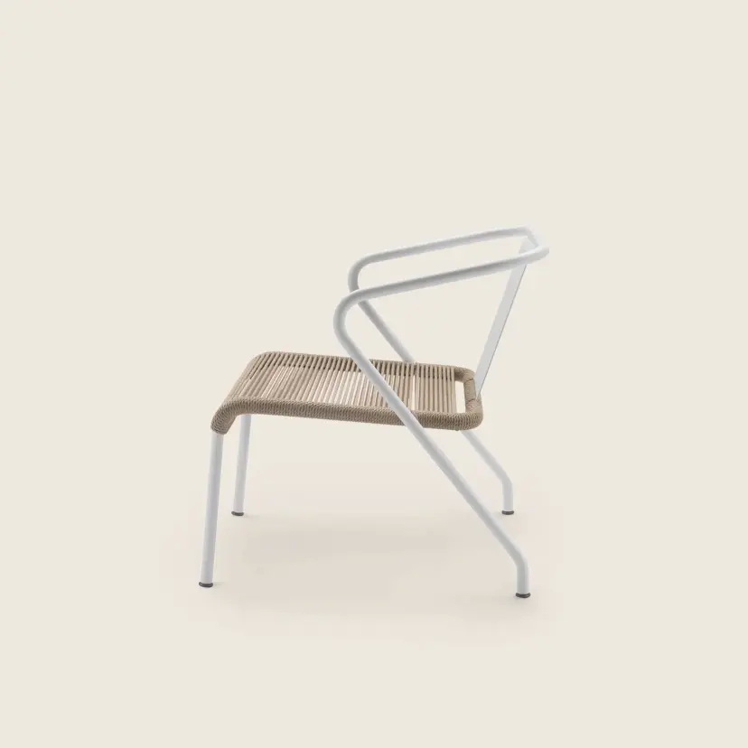 Calipso Cord — уличное кресло с широким сиденьем и низкой посадкой, в котором геометрическая строгость сочетается с визуальной лёгкостью и эргономичностью. Благодаря конструкции с эластичной шнуровкой кресло обеспечивает высокий комфорт даже без подушки, а лаконичный силуэт позволяет органично вписать его как в современную террасу, так и в садовую зону.