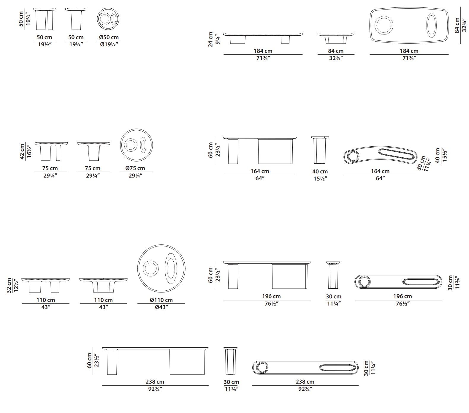 Calix — коллекция кофейных столиков, круглых и прямоугольных.