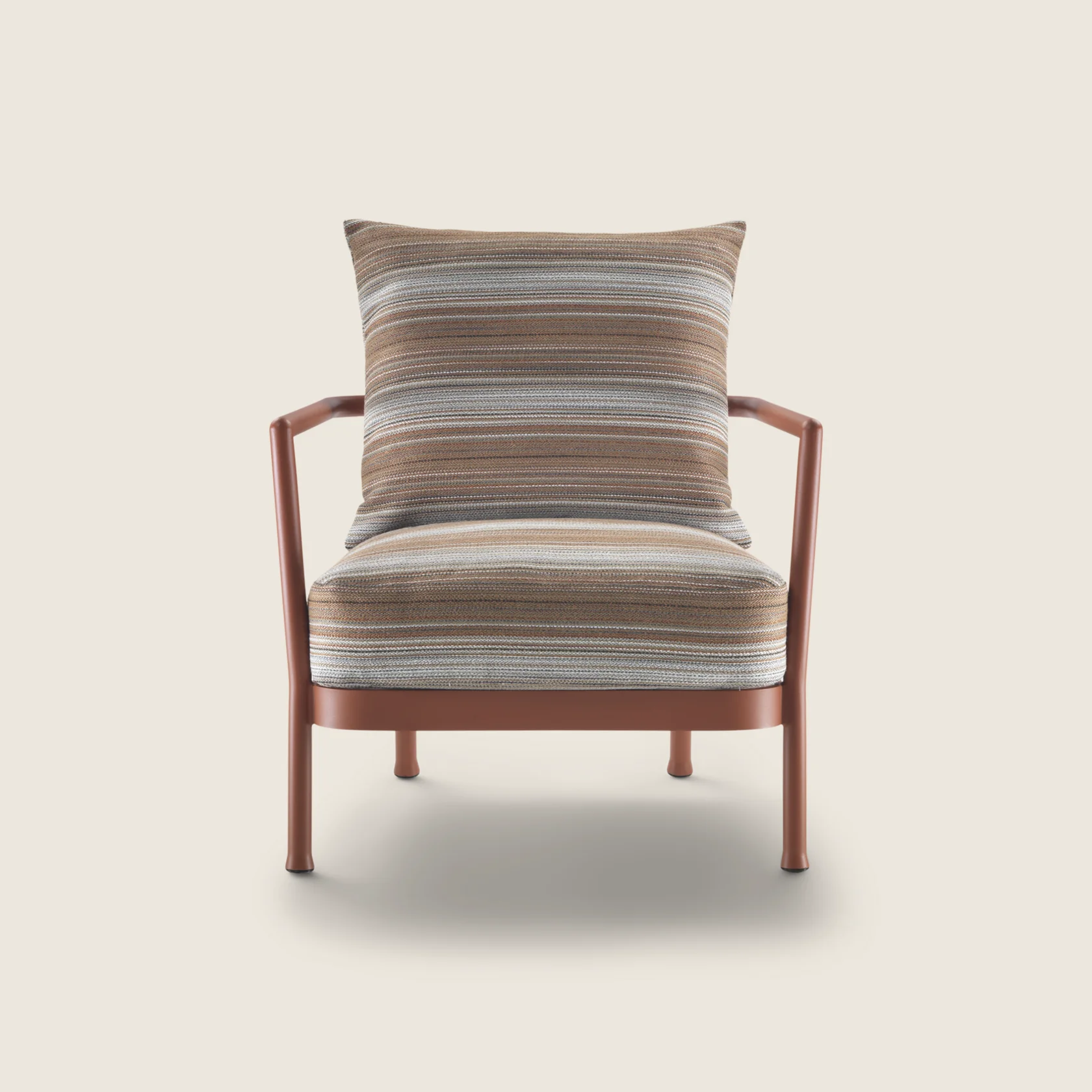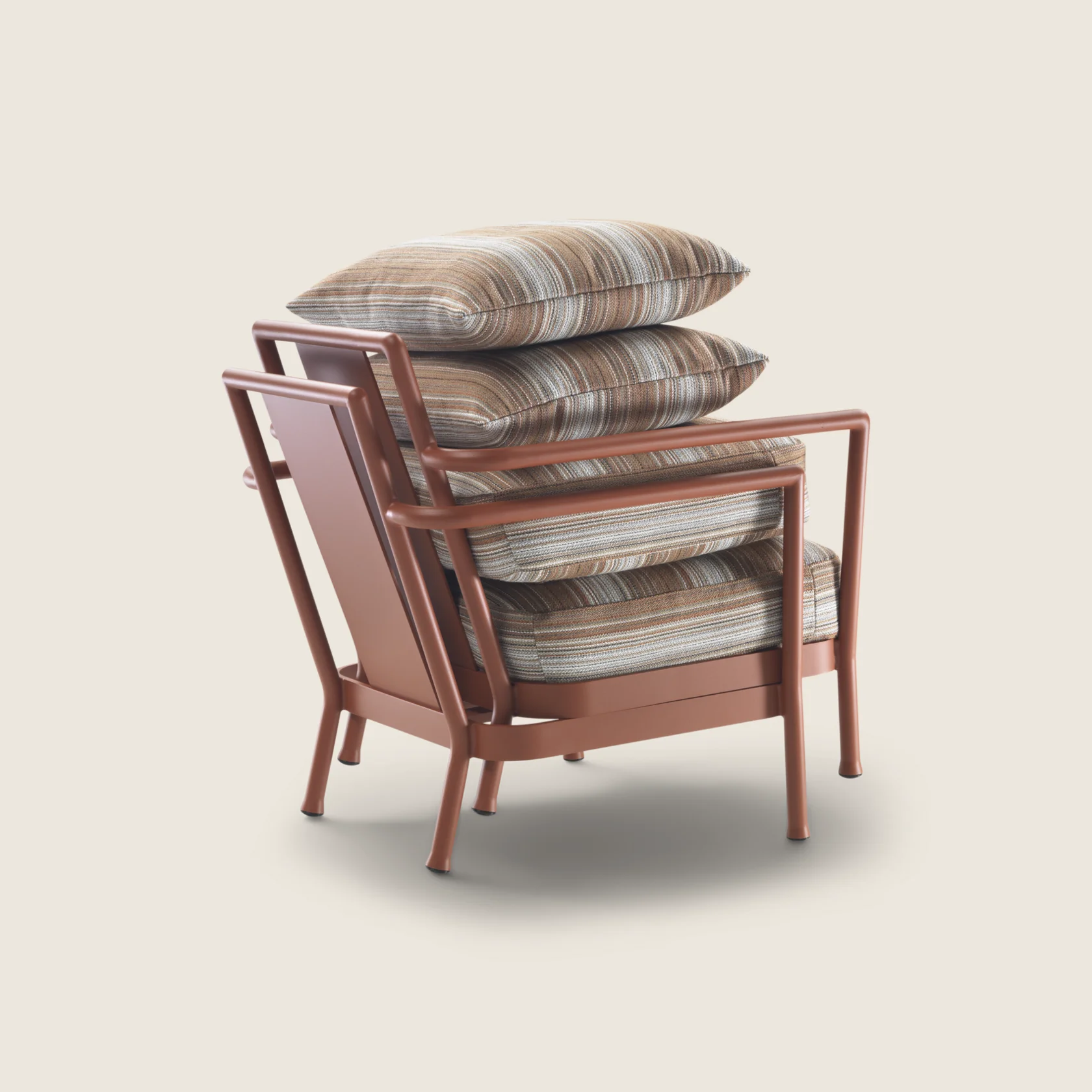 Конструкция: Каркас из алюминия с порошковым покрытием, устойчивым к атмосферным воздействиям и ультрафиолету. Спинка и сиденье выполнены из синтетического шнура, натянутого вручную — при этом сохраняется комфорт и необходимая упругость. Подушки съёмные, чехлы — влагостойкие, съёмные и моющиеся.