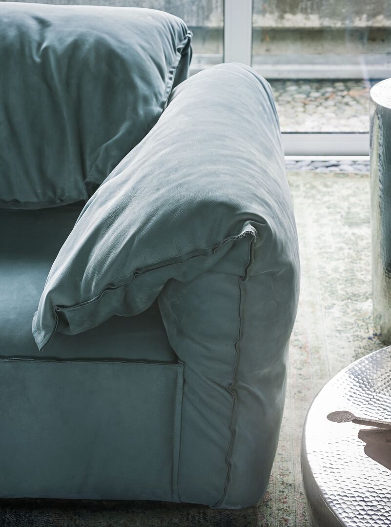 Его минималистичная геометрия обволакивается плавными линиями: спинка и подлокотники мягко складываются, создавая пышные складки, в которых хочется утонуть. Наполнение из пуха и гибкая компоновка элементов позволяют легко адаптировать посадку под любой ритм — от дневной дремоты до вечернего просмотра фильма.