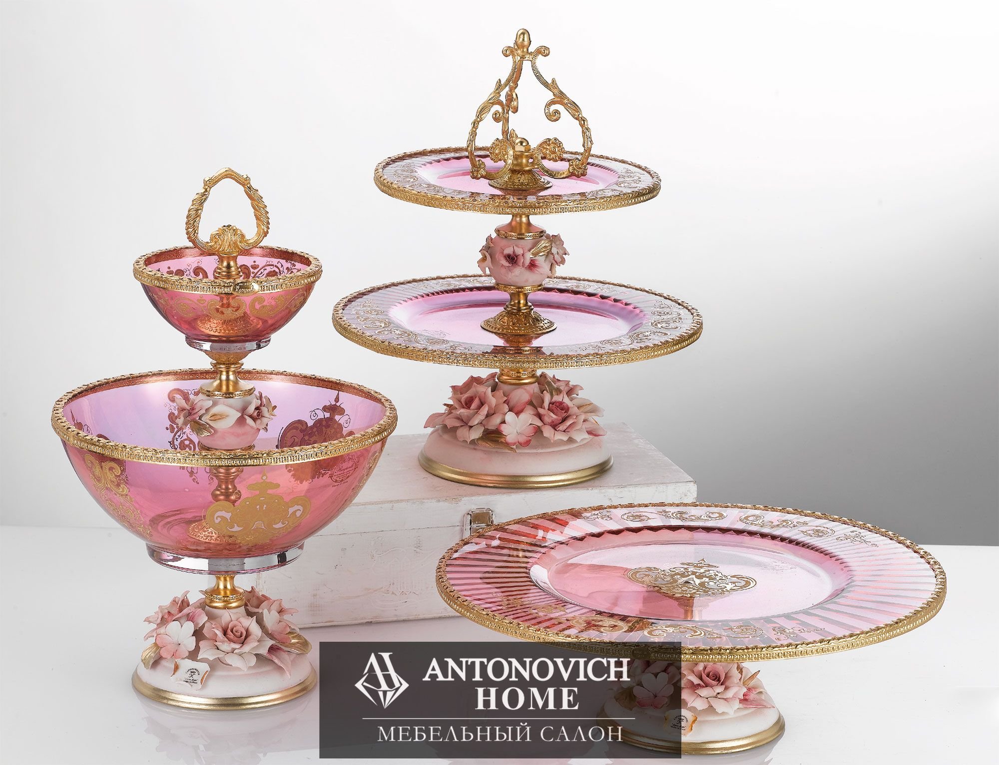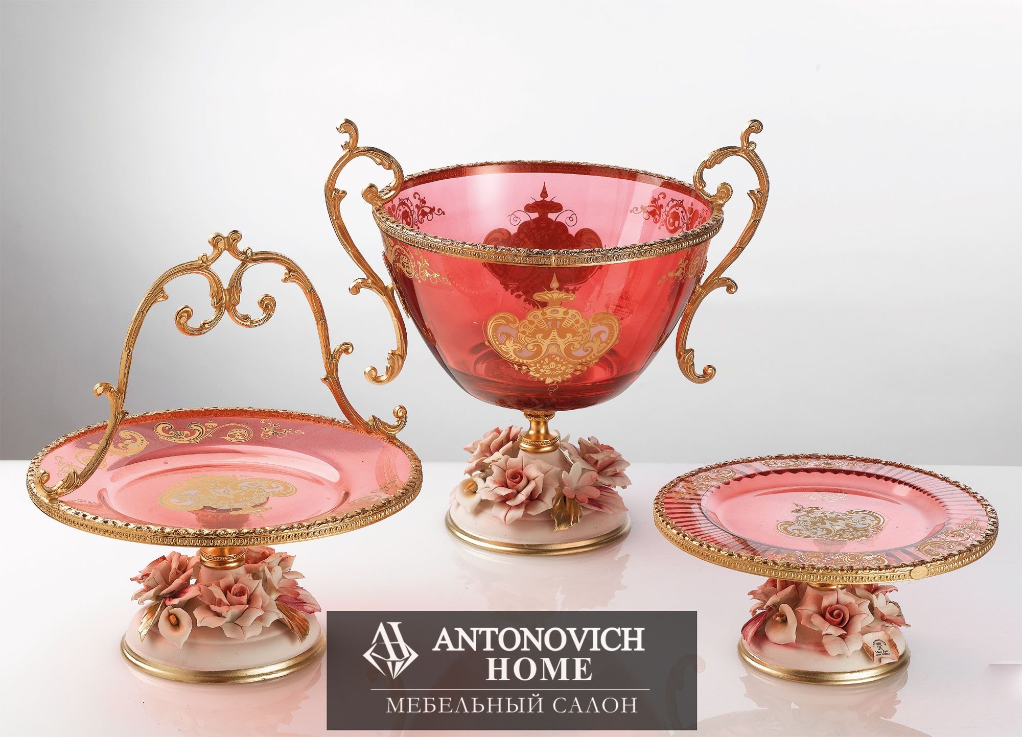 Утонченные тарелки и чашки из Итальянского стекла и Металла на керамической основе с тонким обрамлением розами. Красный и золотой: роскошная страсть!