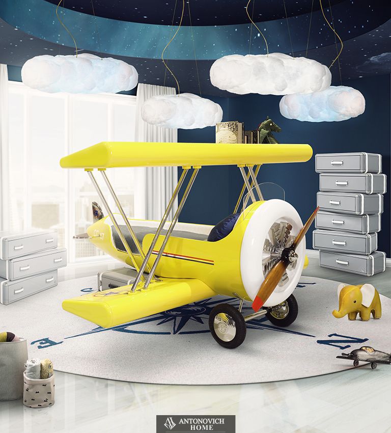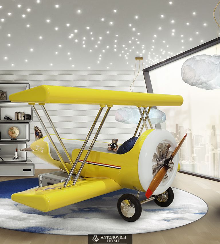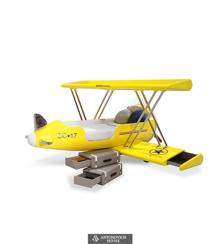Вдохновленные детским фэнтезийным миром, они легко увяжут эту детскую тематическую кровать с персонажем диснеевского фильма «Самолеты» Лидботтом, культовым самолетом-бипланом, который использовался в первые годы авиации.